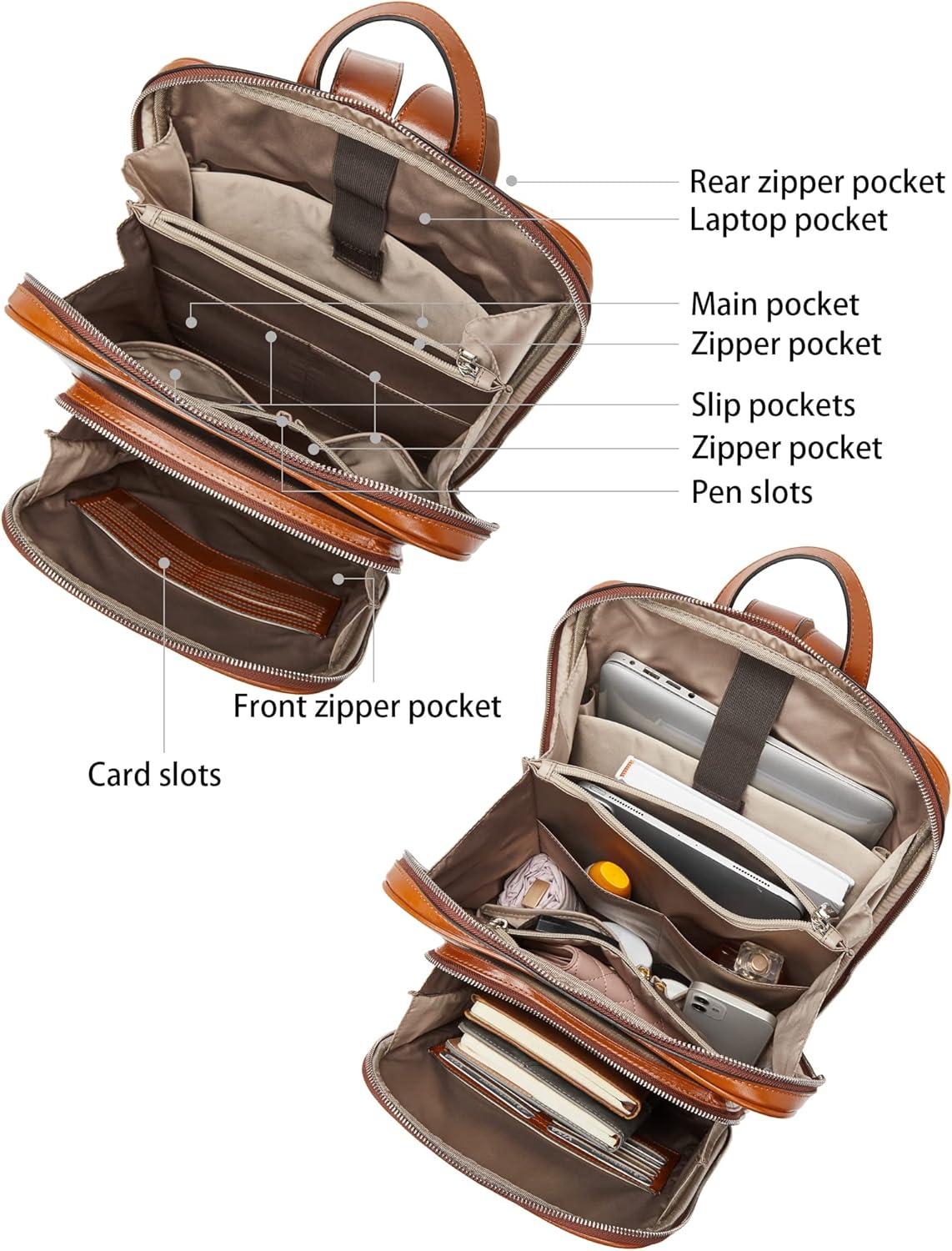 imageBOSTANTEN Leather Laptop Backpack for Women 156 inch Computer Bag Travel Work Daypack Large Size Bag1beigebrown