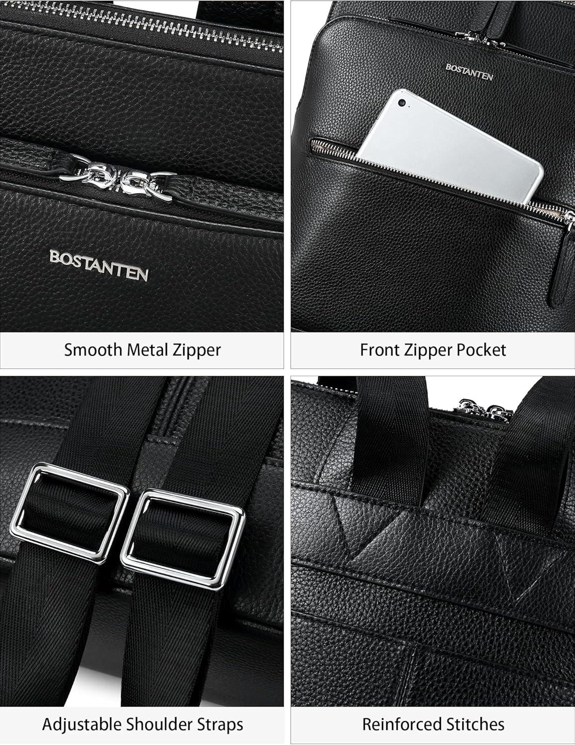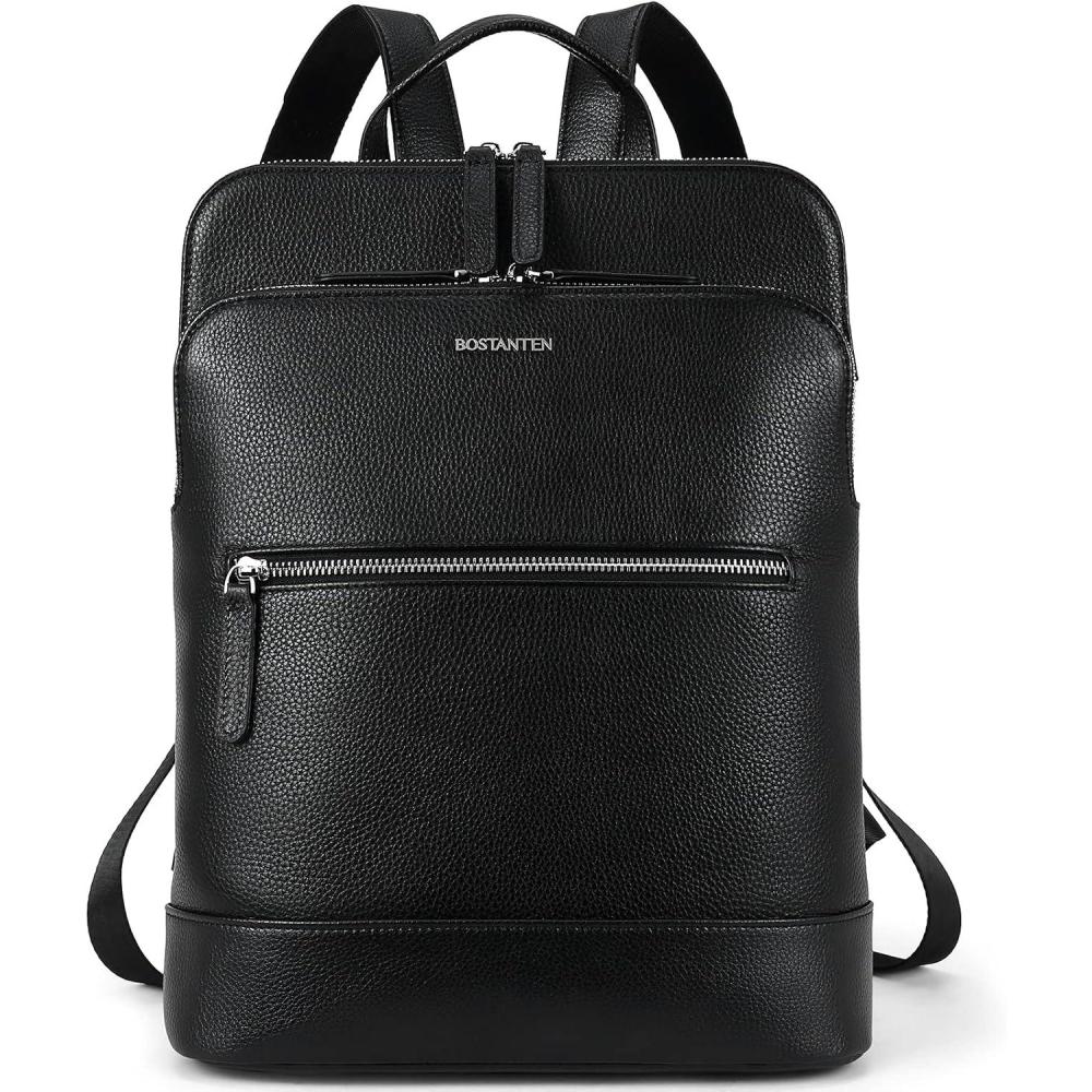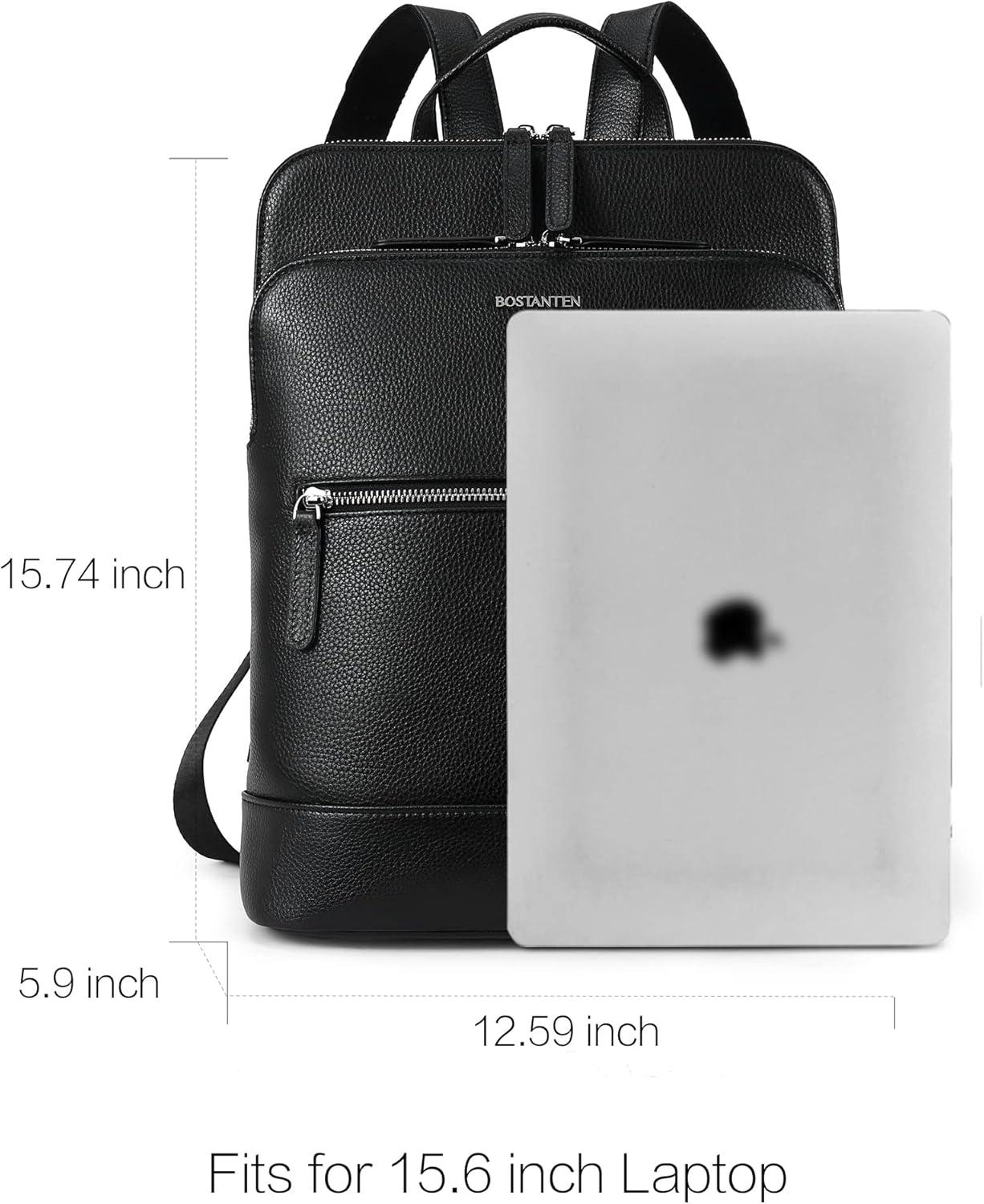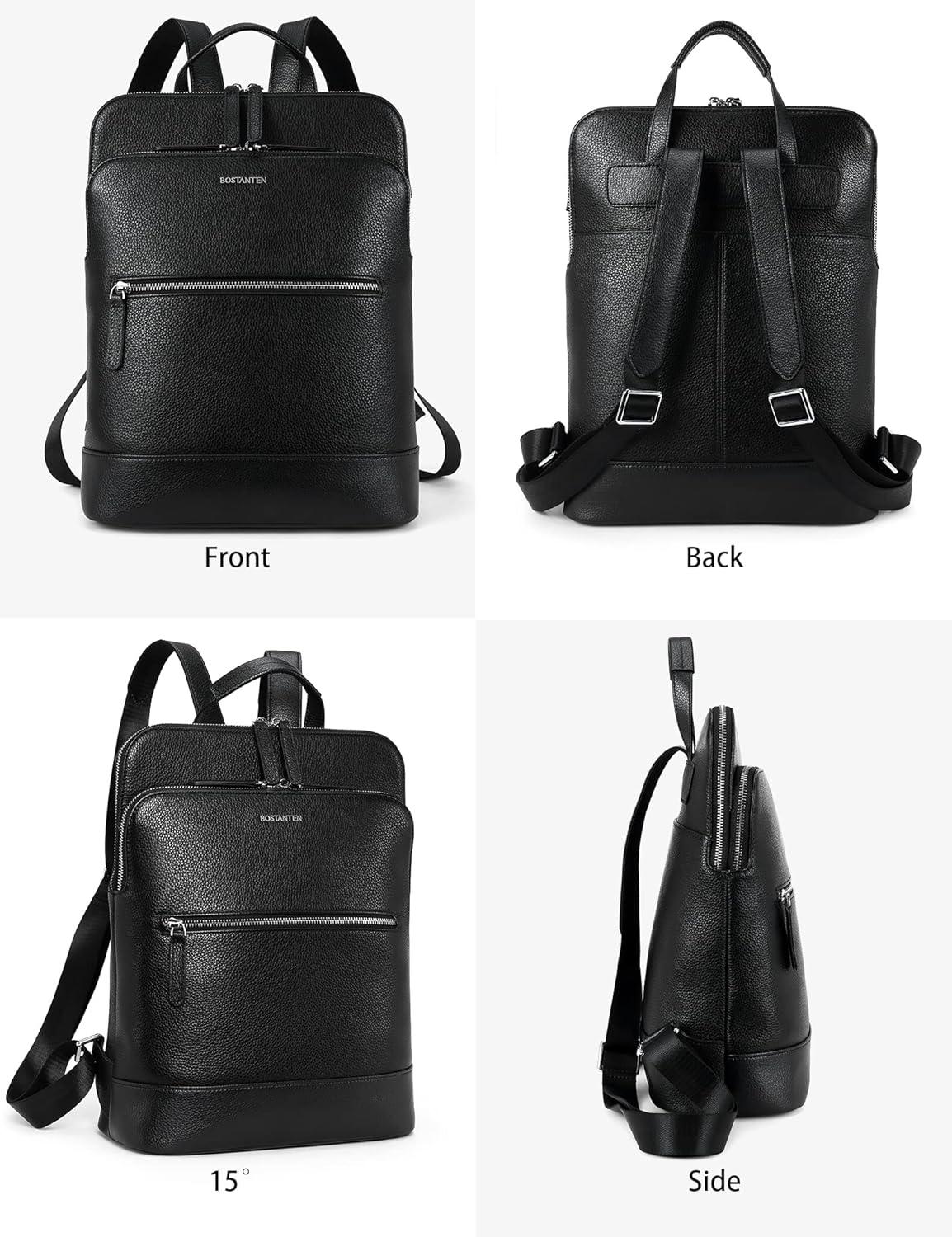 BOSTANTEN Leather Laptop Backpack for Women 15.6 inch Computer Bag Travel Work Daypack Large Size Bag(3-black)