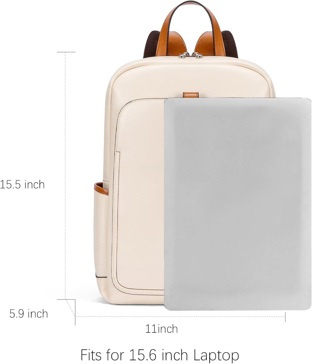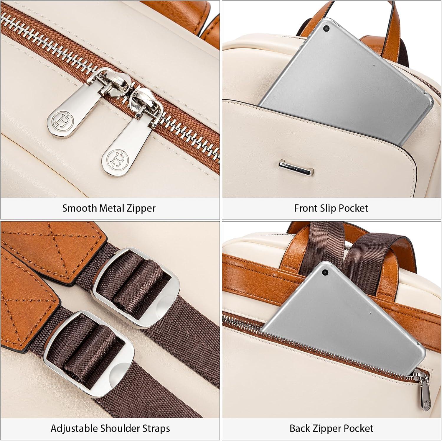 BOSTANTEN Leather Laptop Backpack for Women,15.6 inch Computer Backpack Purse College Daypack Work Travel Bag Black-brown(Beige)