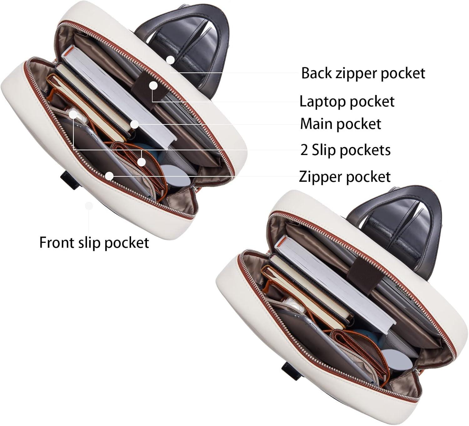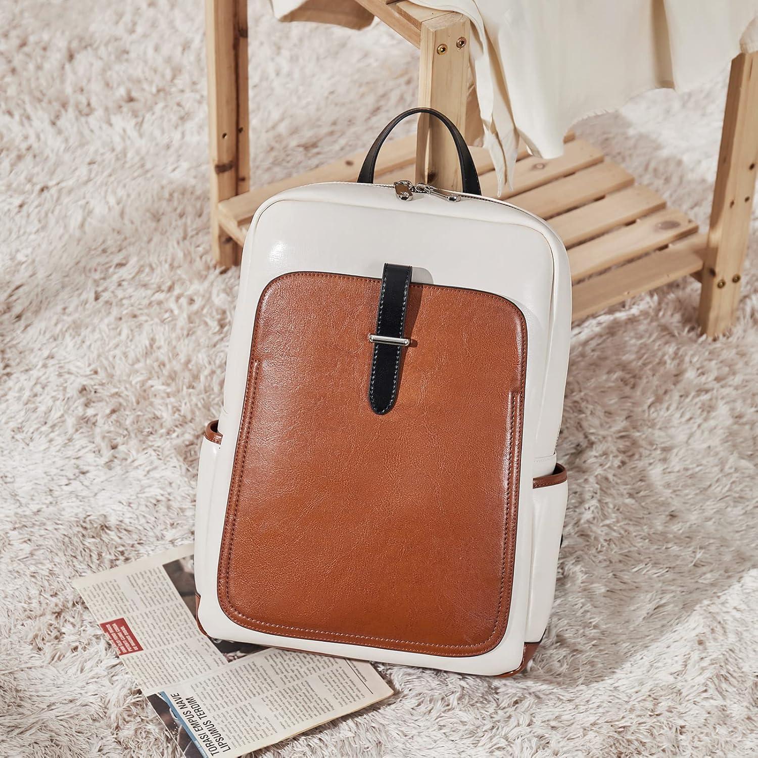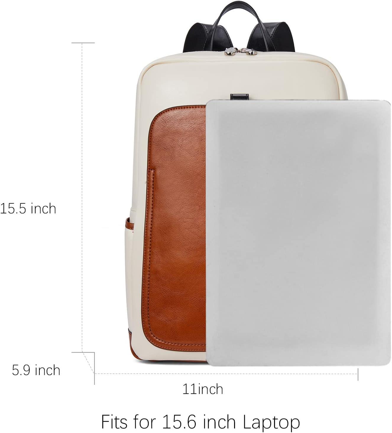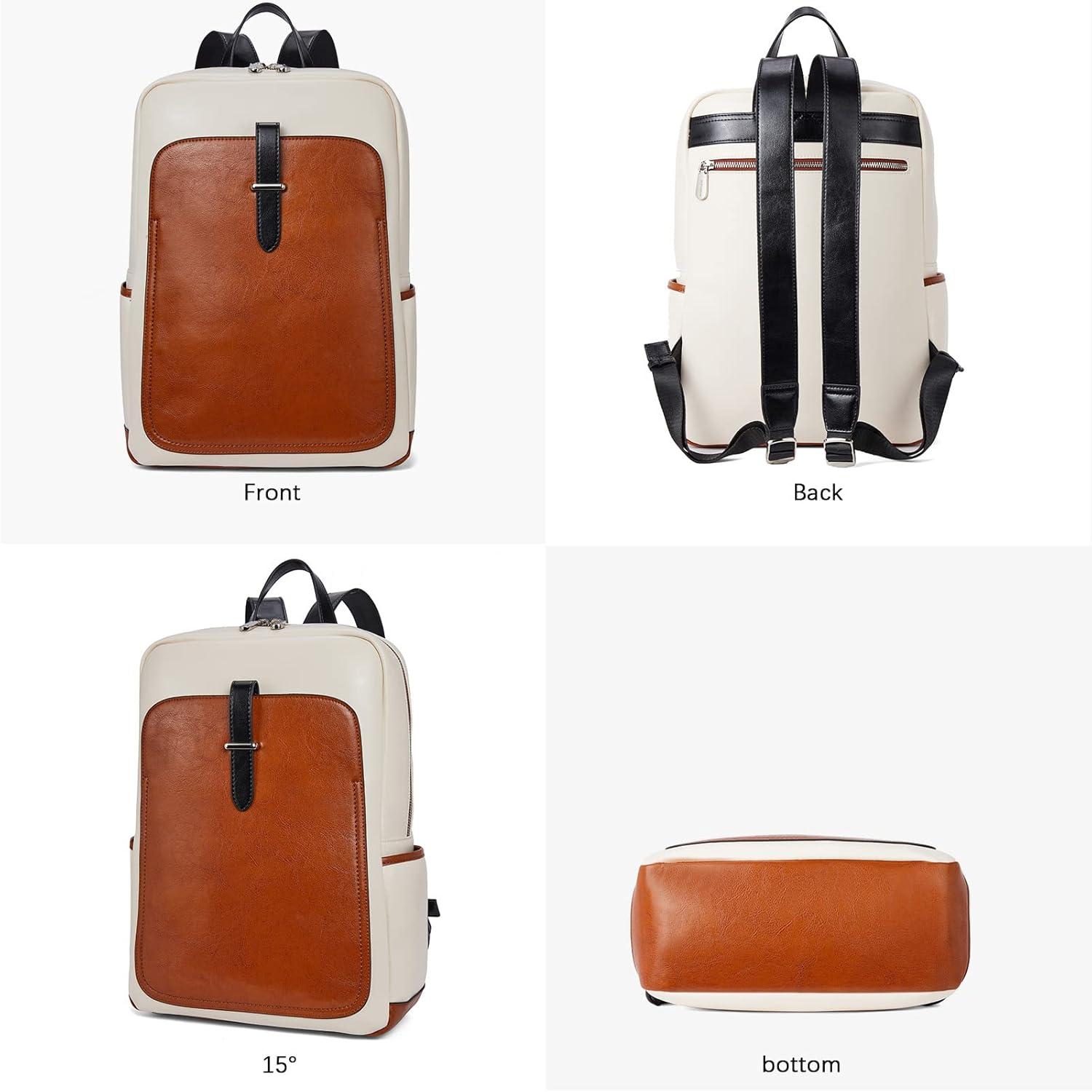 imageBOSTANTEN Leather Laptop Backpack for Women156 inch Computer Backpack Purse College Daypack Work Travel Bag BlackbrownBmbeigeyellow