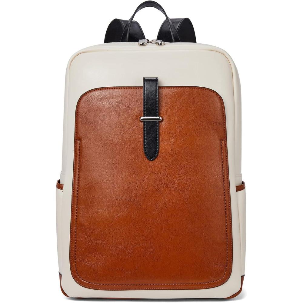 BOSTANTEN Leather Laptop Backpack for Women,15.6 inch Computer Backpack Purse College Daypack Work Travel Bag Black-brown(Bm-beige-yellow)
