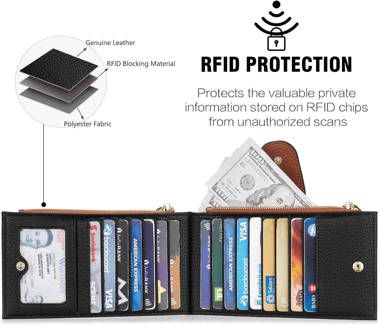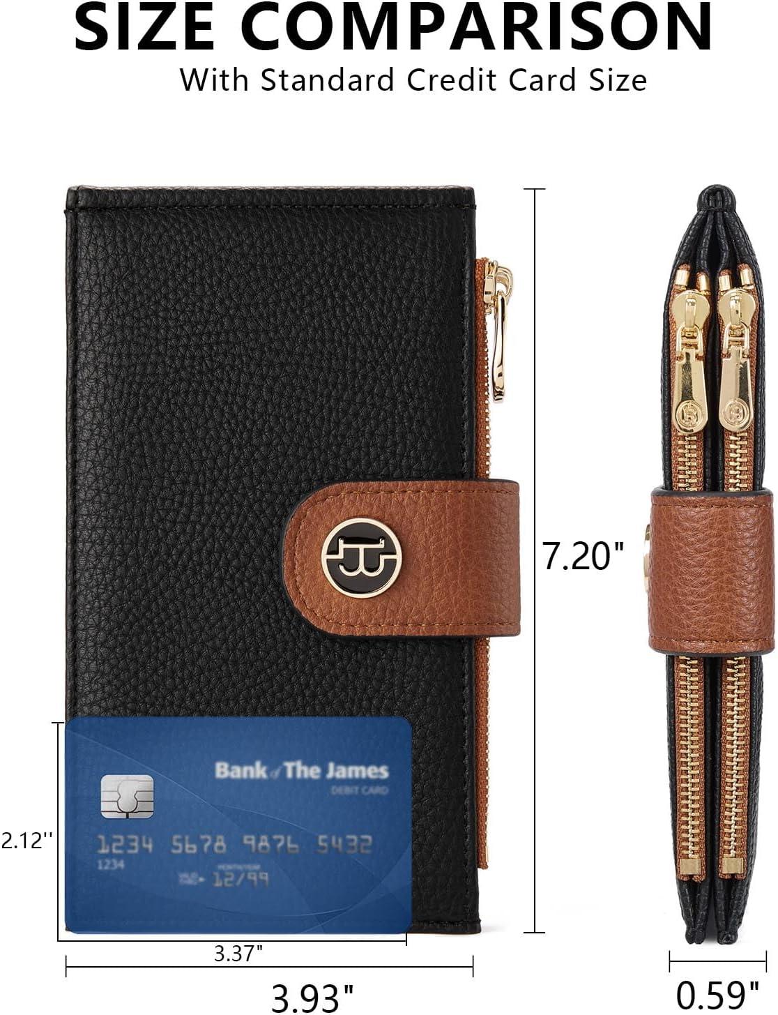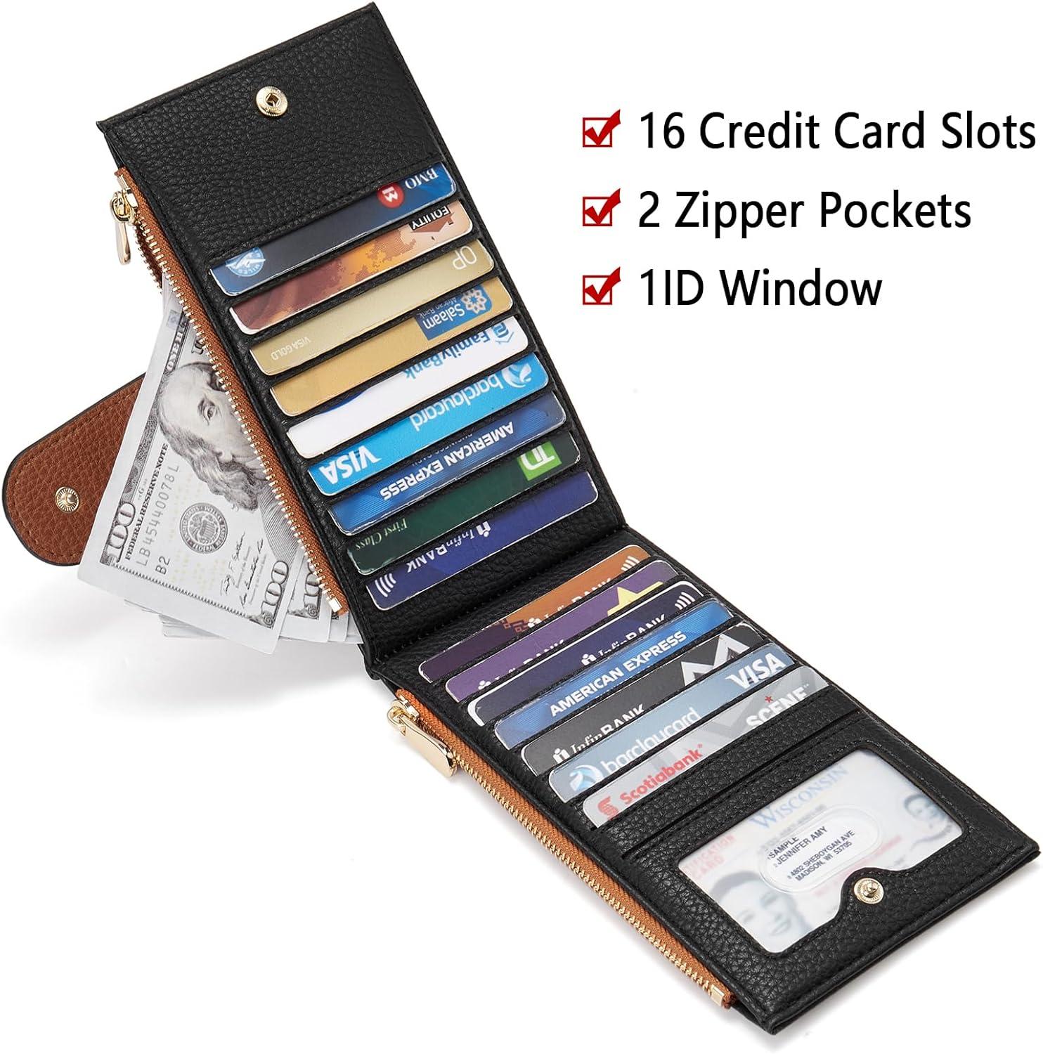 BOSTANTEN Leather Wallets for Women Large RFID Blocking Slim Bifold Purse Card Holder with Zipper Pocket(1-Black+Brown)