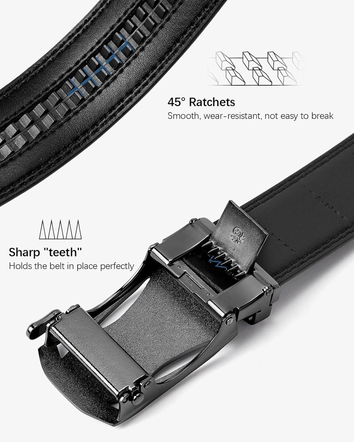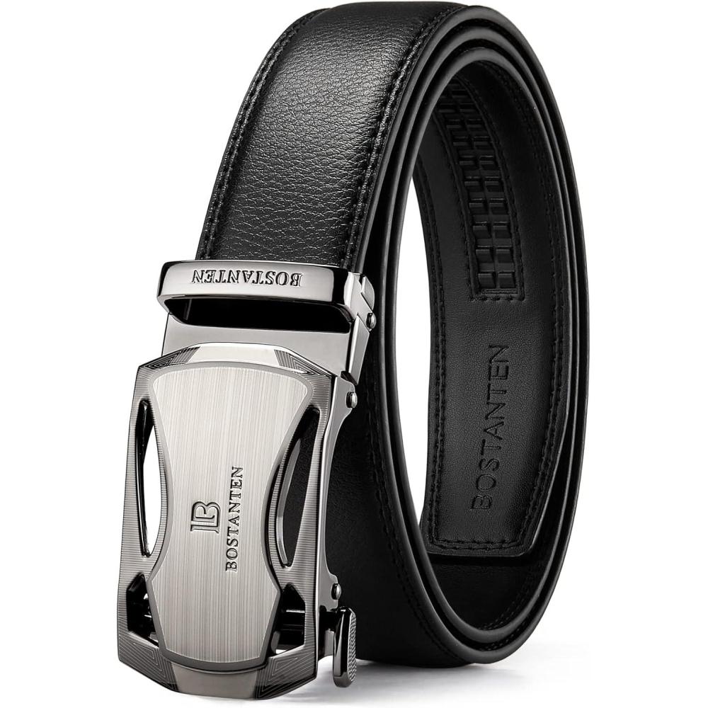 imageBOSTANTEN Mens Belt Leather Ratchet Belt For Men Dress and Casual with Adjustable Buckle Trim to Fit002black