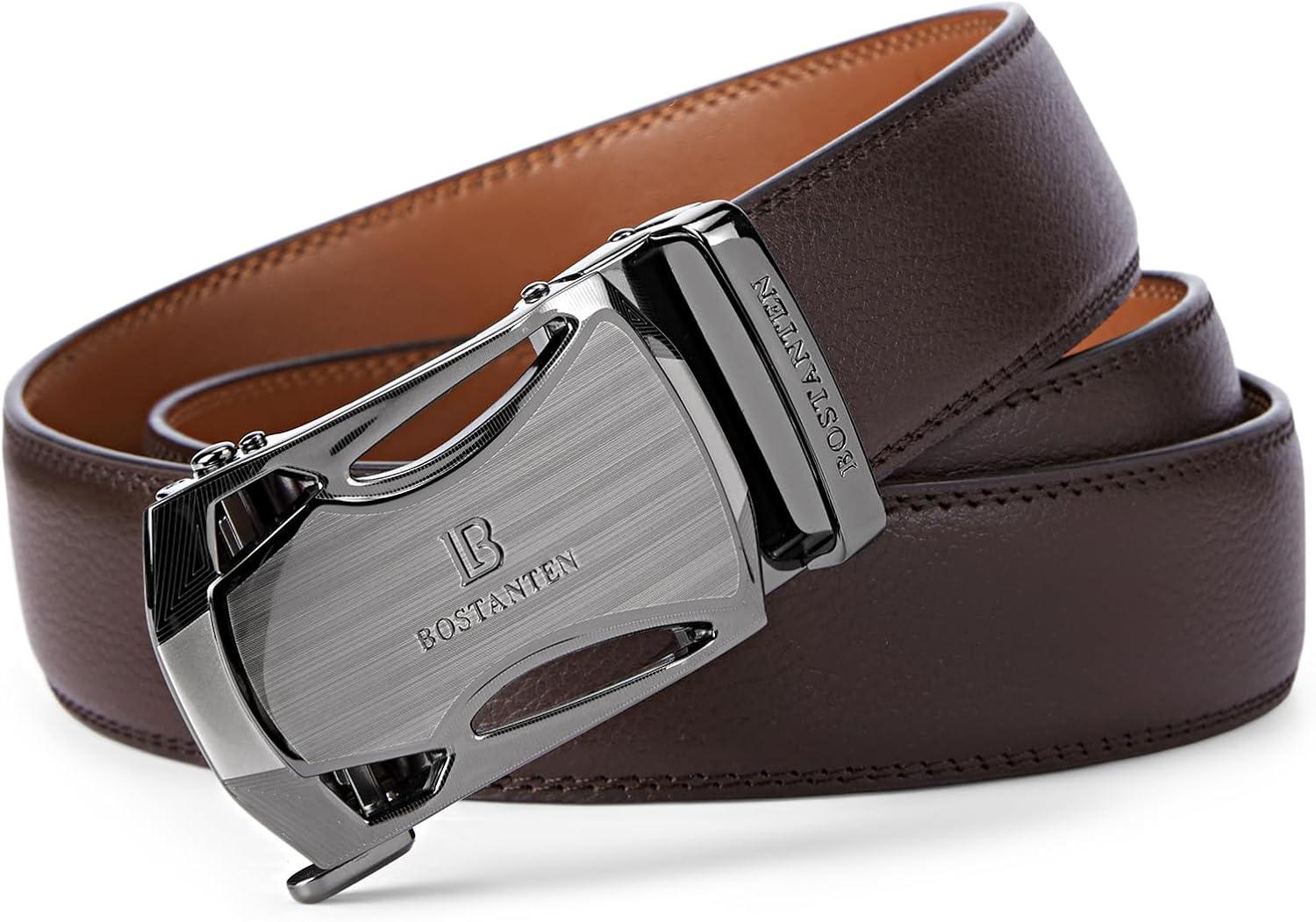 BOSTANTEN Mens Belt Leather Ratchet Belt For Men Dress and Casual with Adjustable Buckle, Trim to Fit(001-coffee)