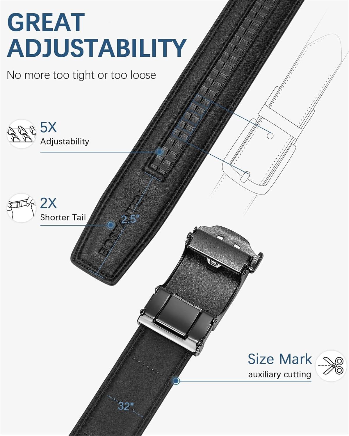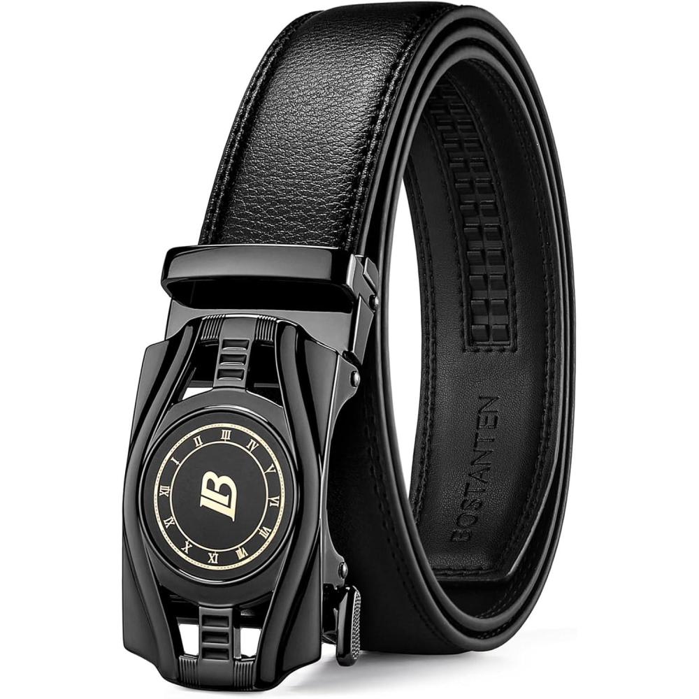 imageBOSTANTEN Mens Belt Leather Ratchet Belt For Men Dress and Casual with Adjustable Buckle Trim to Fit003black