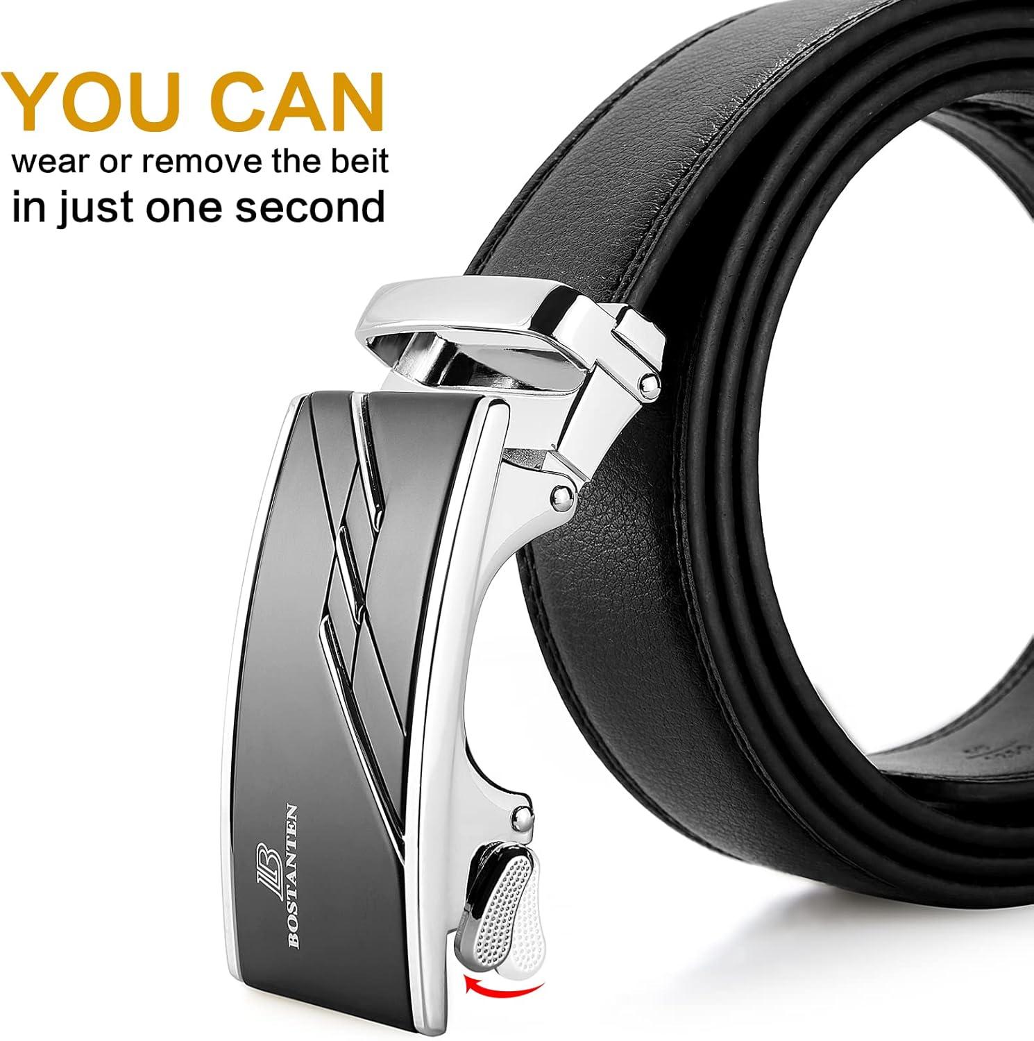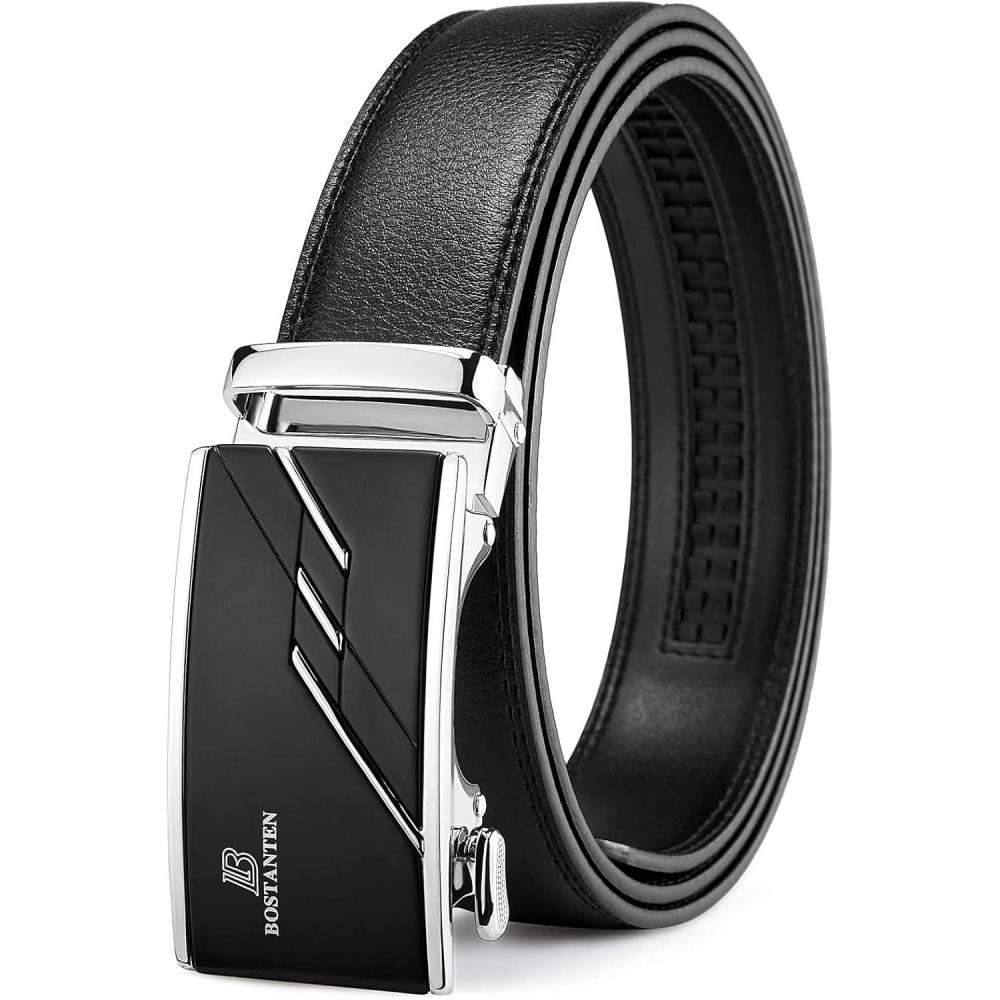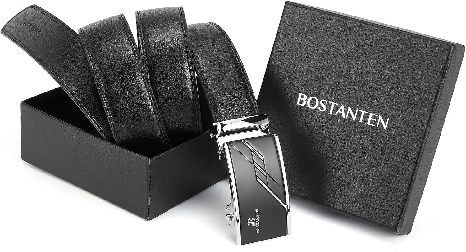 imageBOSTANTEN Mens Belt Leather Ratchet Belt For Men Dress and Casual with Adjustable Buckle Trim to Fit004black