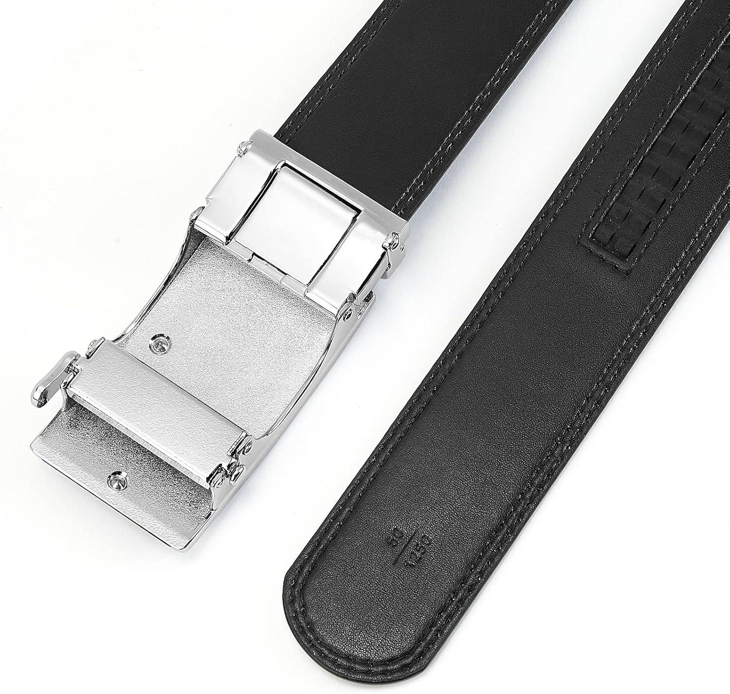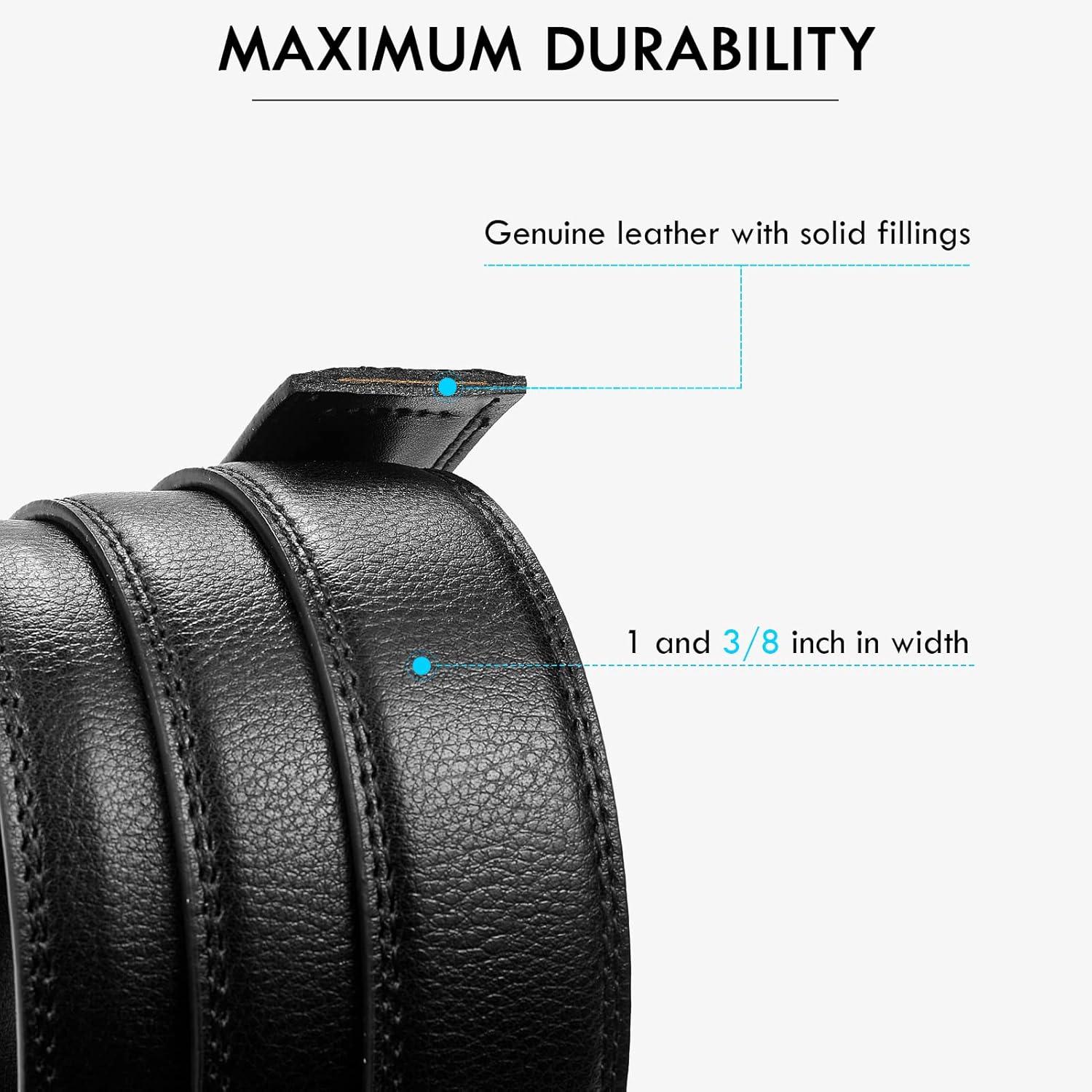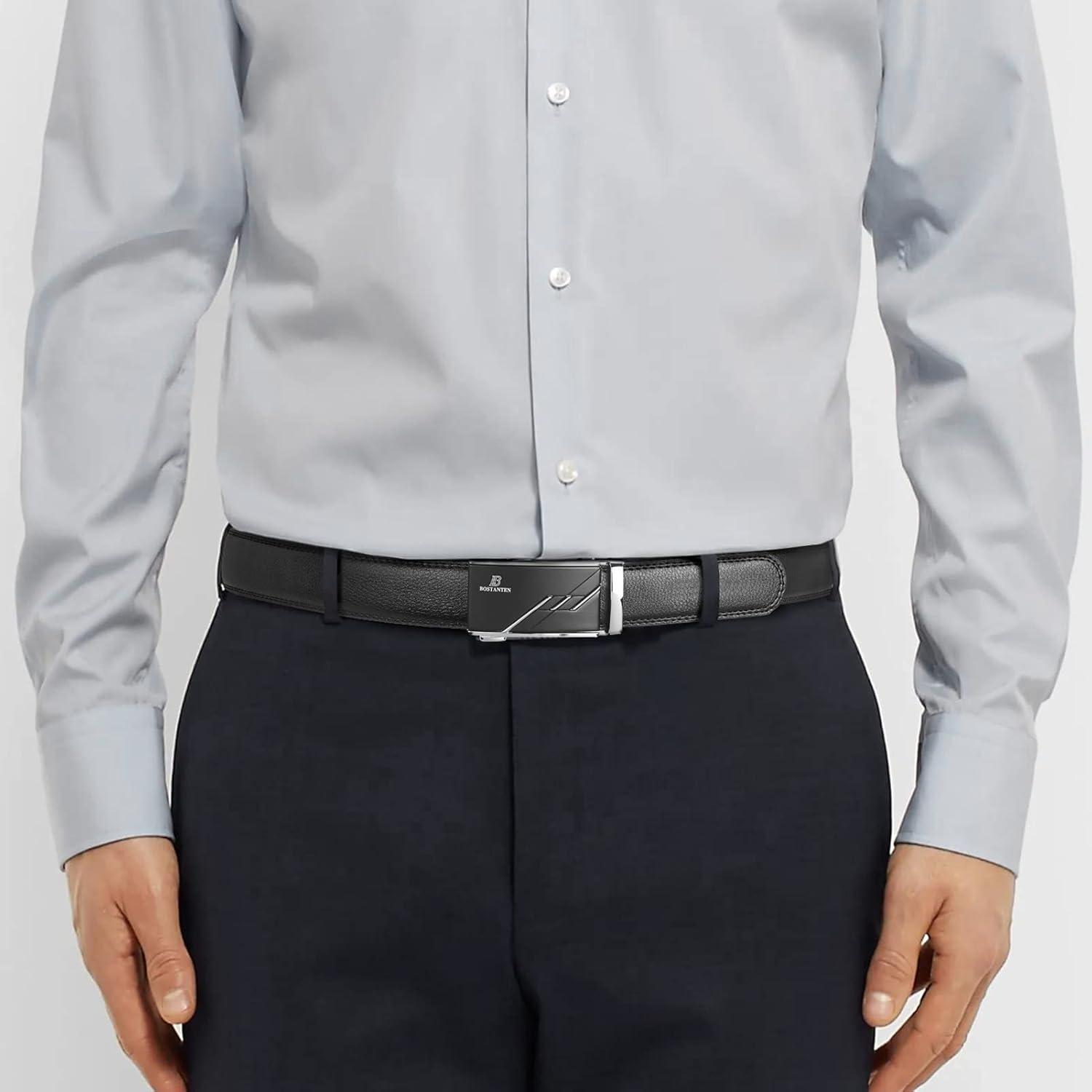 imageBOSTANTEN Mens Belt Leather Ratchet Belt For Men Dress and Casual with Adjustable Buckle Trim to Fit004black