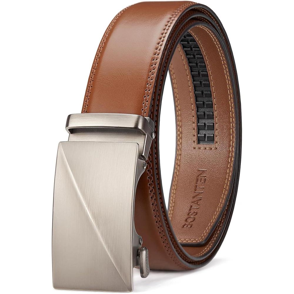 imageBOSTANTEN Mens Belt Leather Ratchet Belt For Men Dress and Casual with Adjustable Buckle Trim to Fit011 All Brown