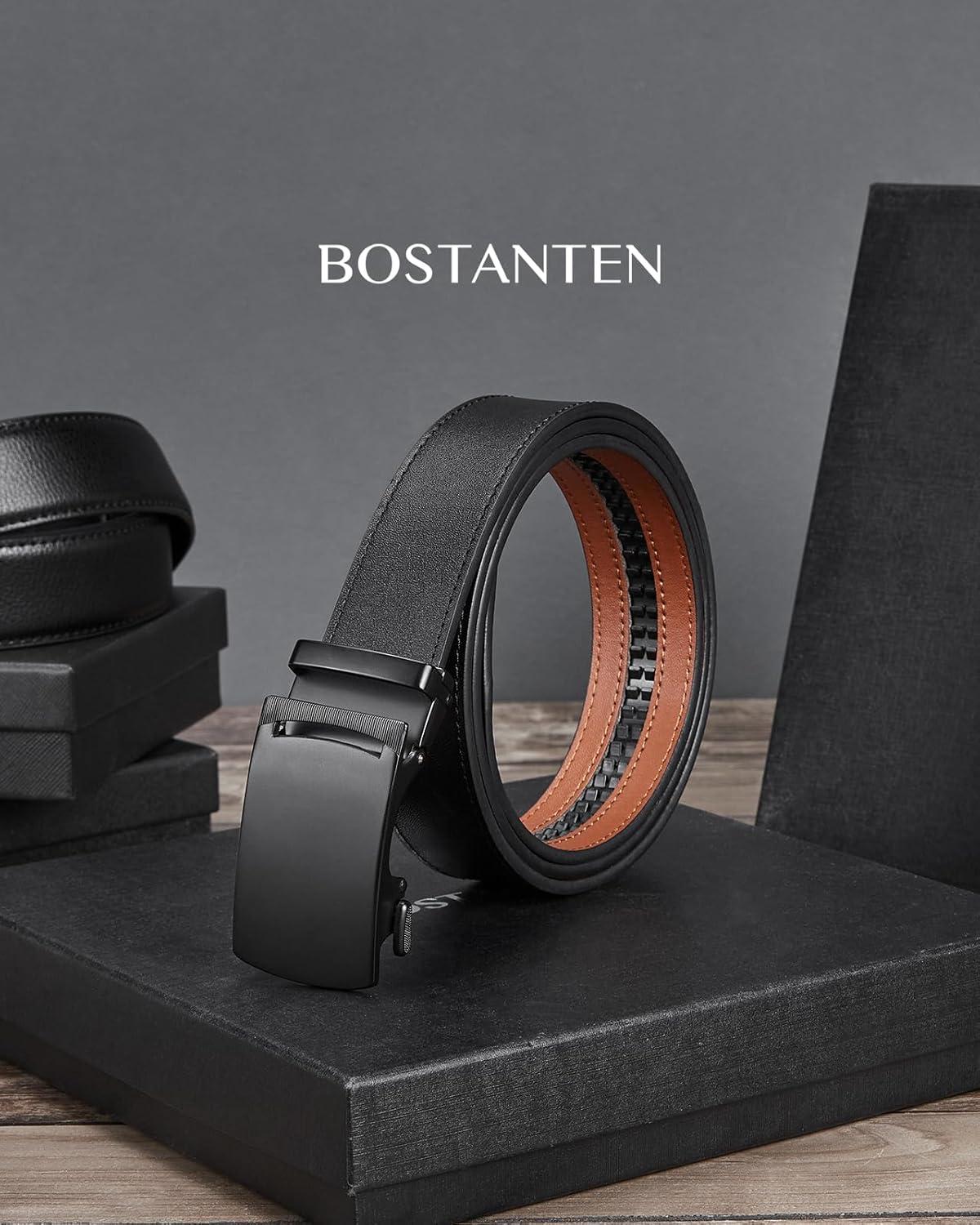 imageBOSTANTEN Mens Belt Leather Ratchet Belt For Men Dress and Casual with Adjustable Buckle Trim to Fit001 Black