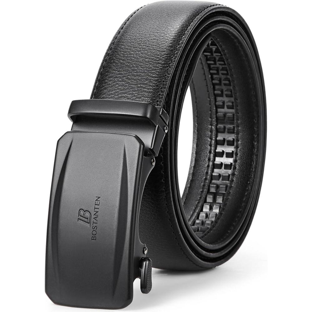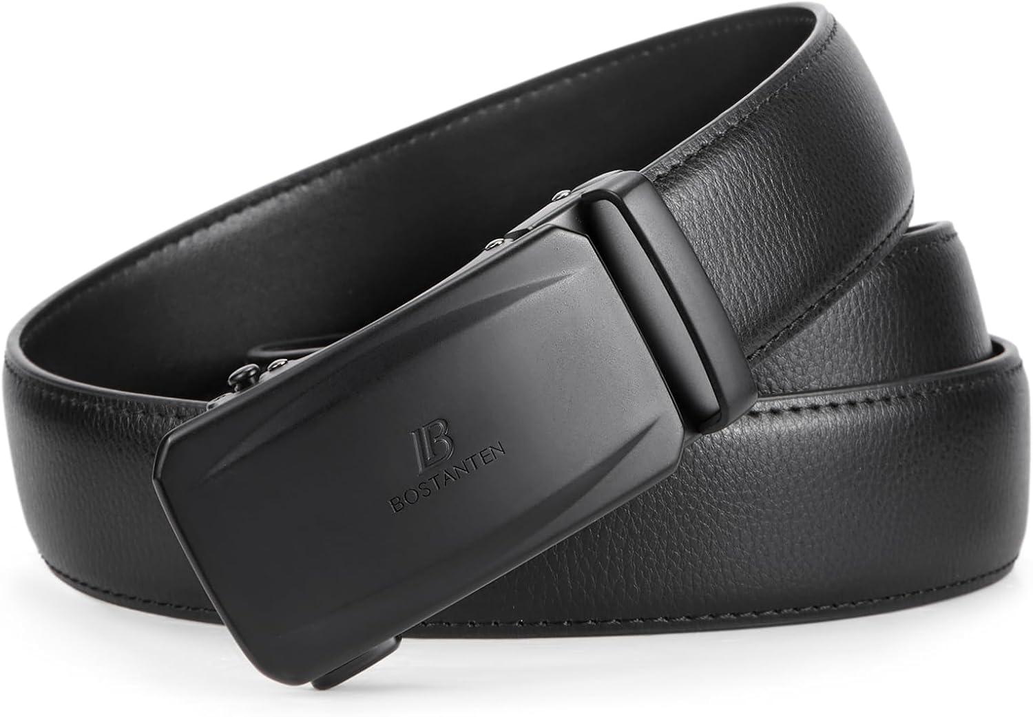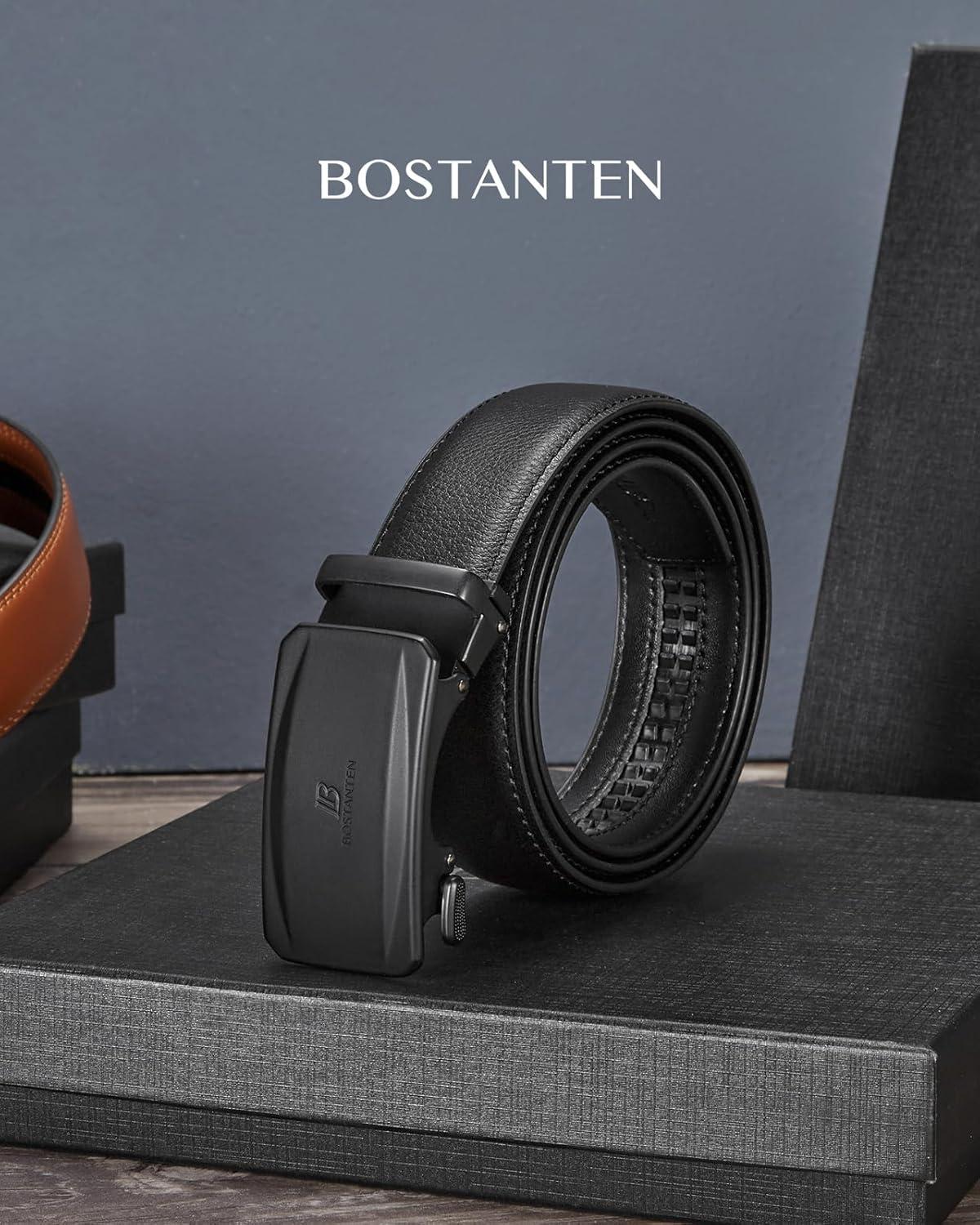 BOSTANTEN Mens Belt Leather Ratchet Belt For Men Dress and Casual with Adjustable Buckle, Trim to Fit(019 – Bostanten & Black)