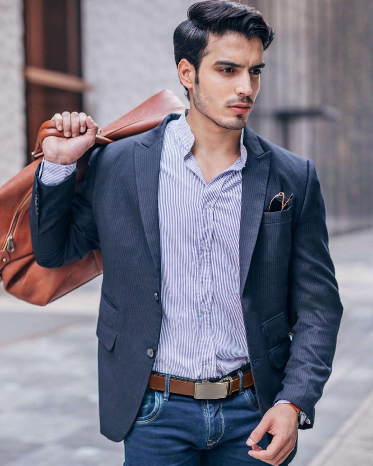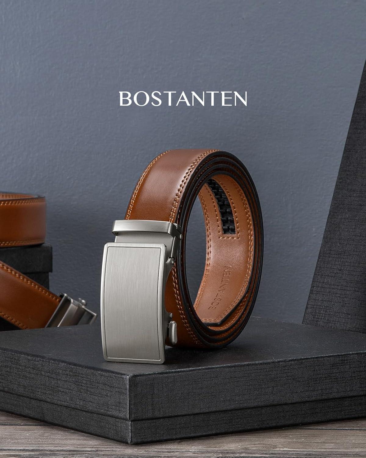 BOSTANTEN Mens Belt Leather Ratchet Belt For Men Dress and Casual with Adjustable Buckle, Trim to Fit(020 – Dark Brown)