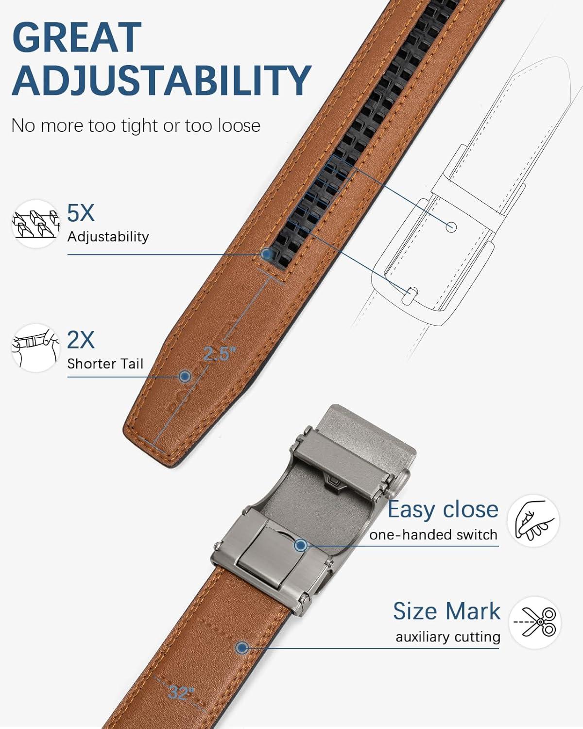 imageBOSTANTEN Mens Belt Leather Ratchet Belt For Men Dress and Casual with Adjustable Buckle Trim to Fit020  Dark Brown