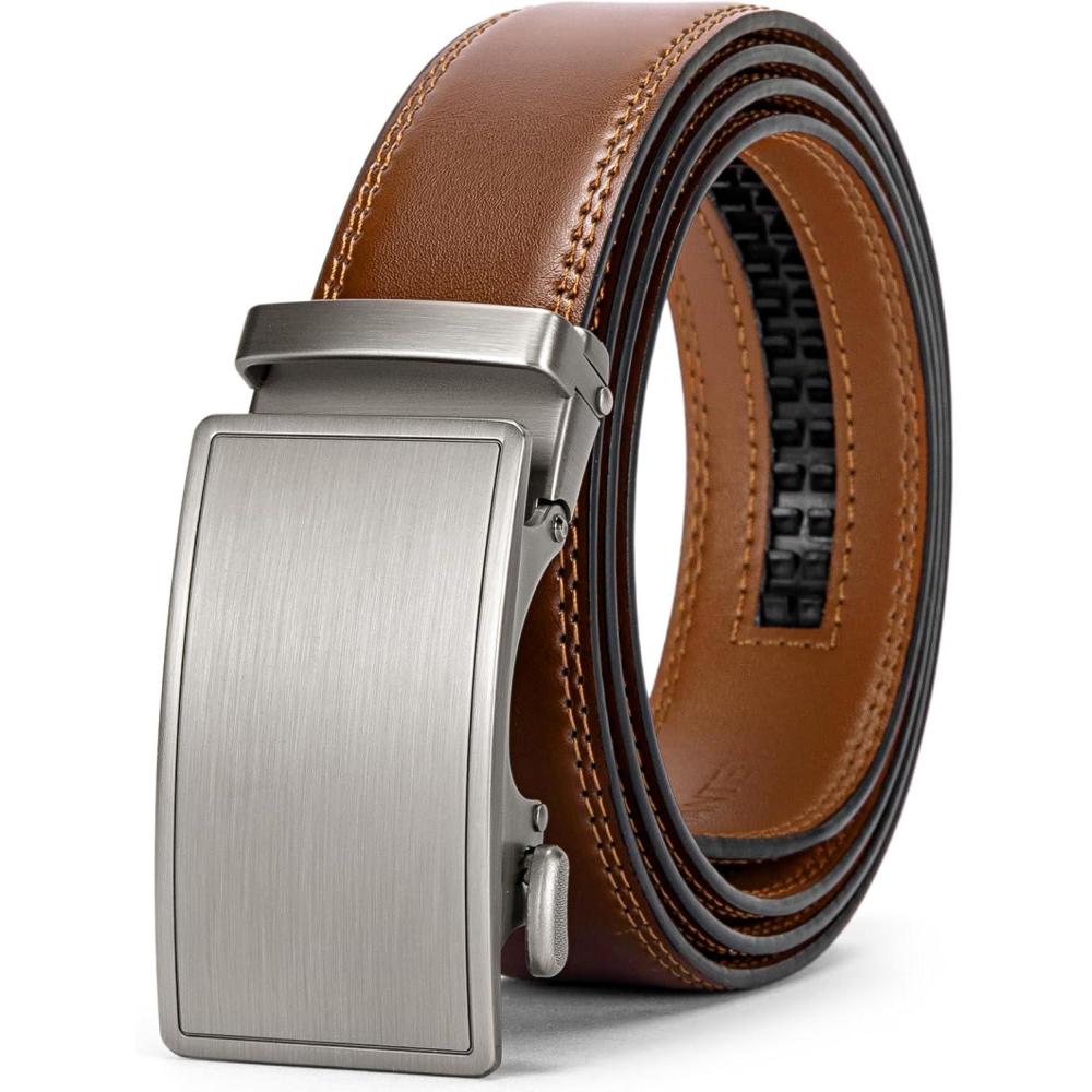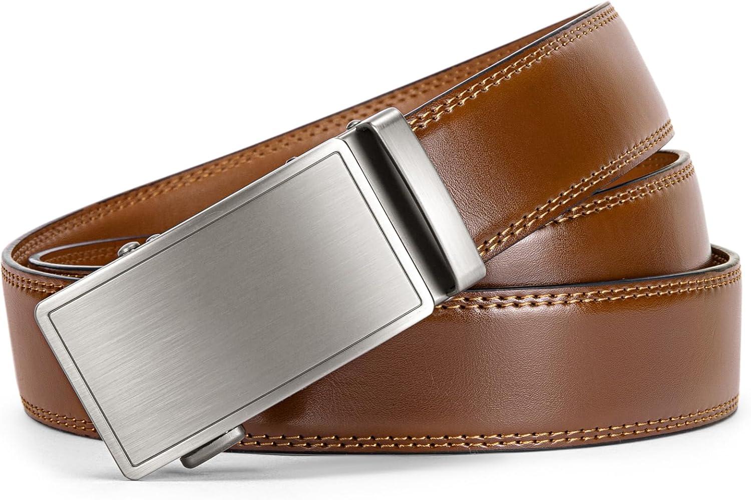 imageBOSTANTEN Mens Belt Leather Ratchet Belt For Men Dress and Casual with Adjustable Buckle Trim to Fit021  Light Brown