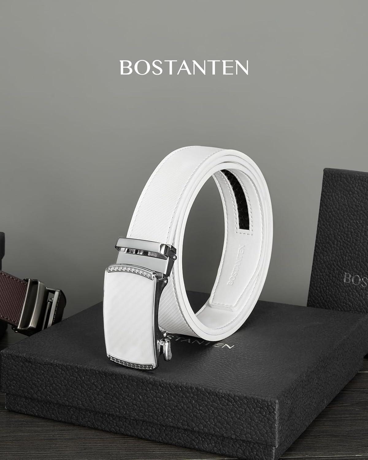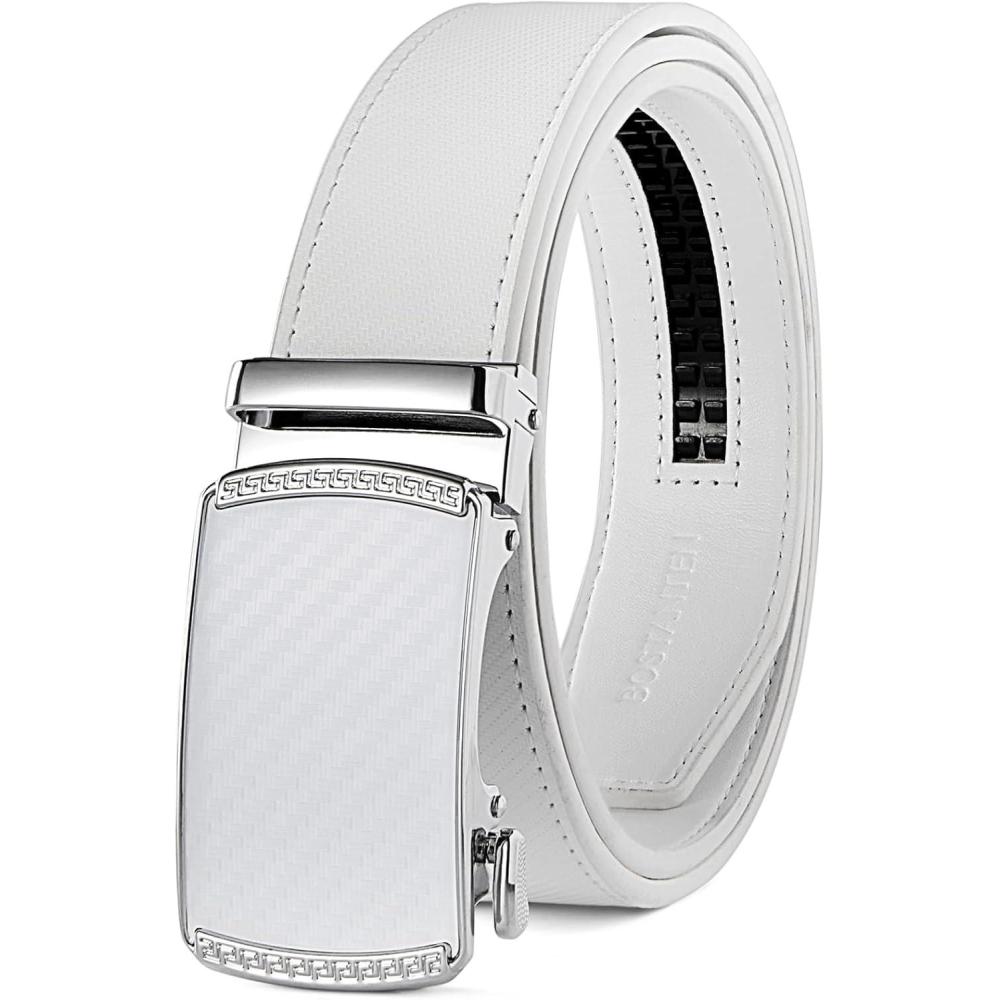 imageBOSTANTEN Mens Belt Leather Ratchet Belt For Men Dress and Casual with Adjustable Buckle Trim to Fit020  White