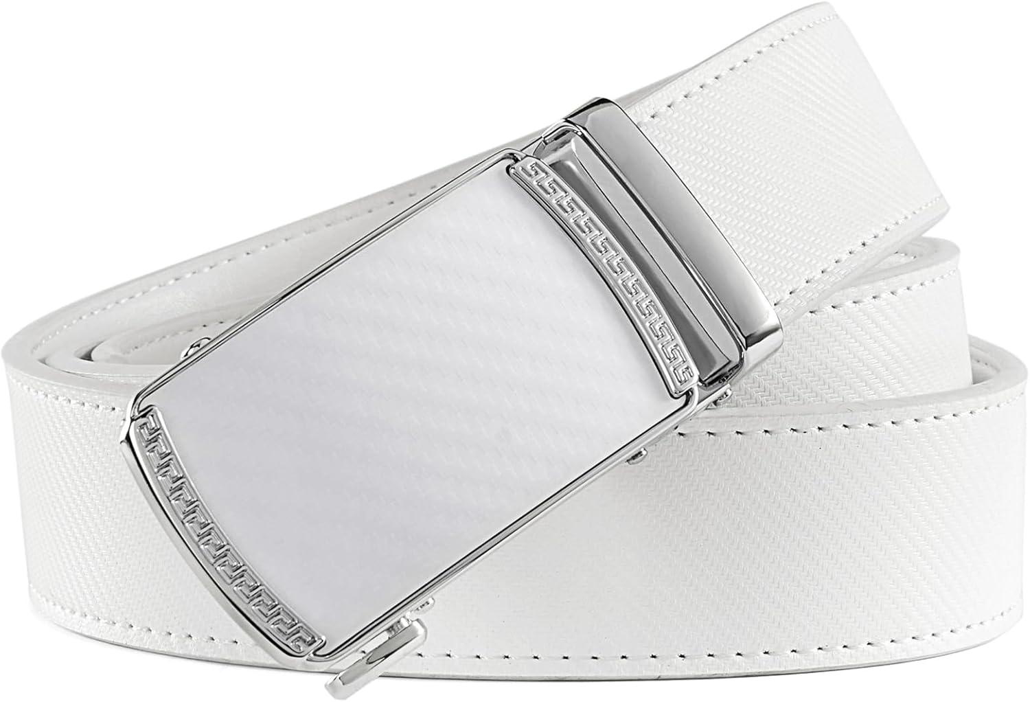 BOSTANTEN Mens Belt Leather Ratchet Belt For Men Dress and Casual with Adjustable Buckle, Trim to Fit(020 – White)