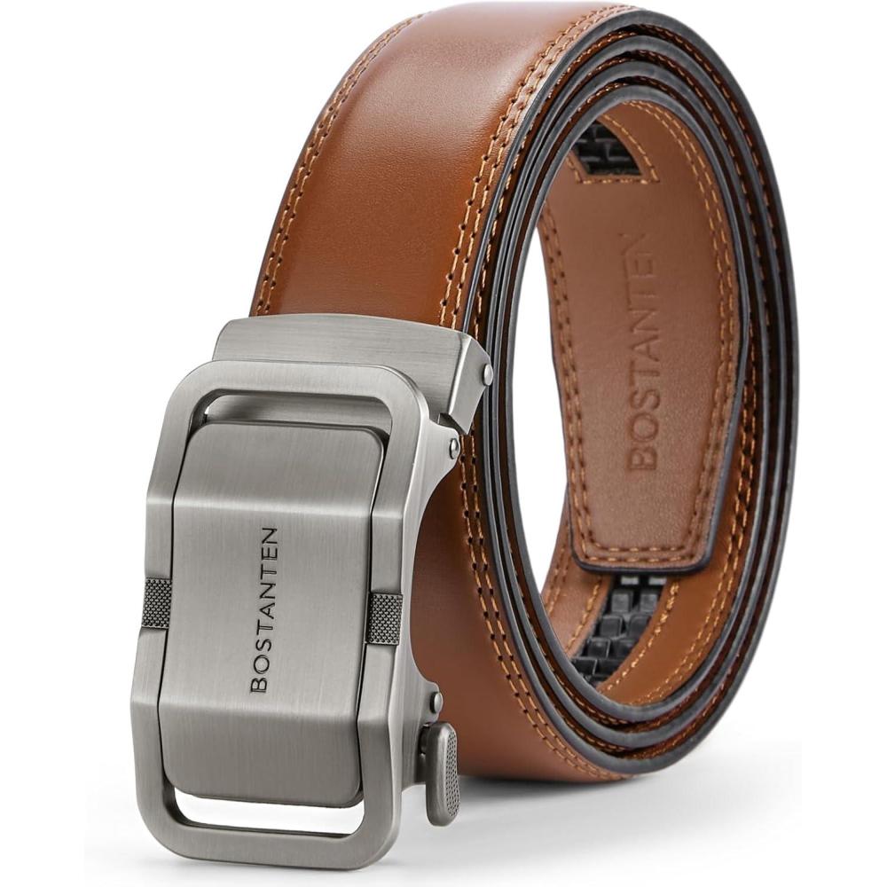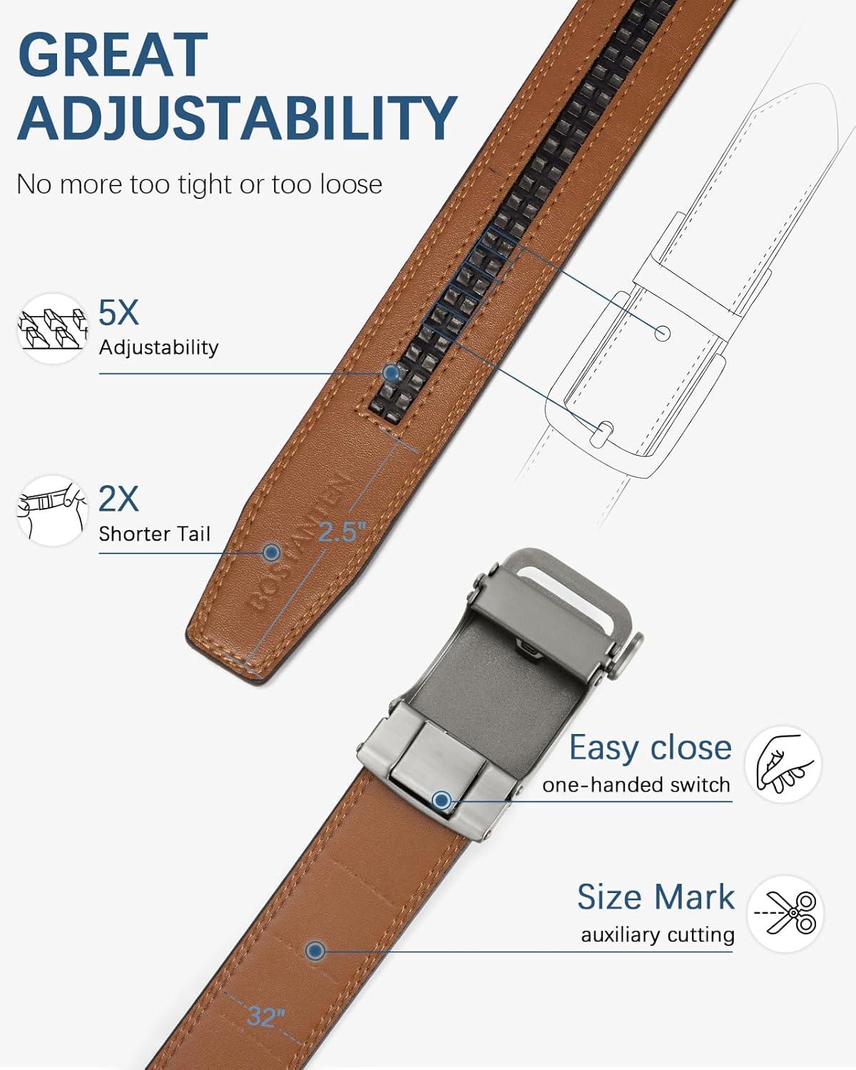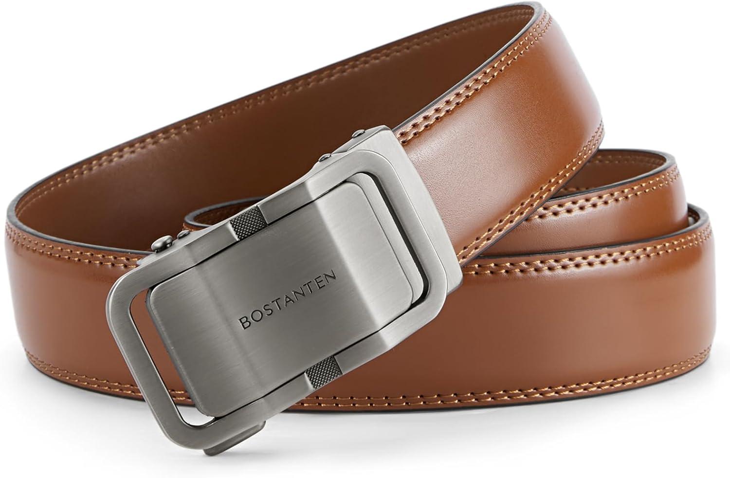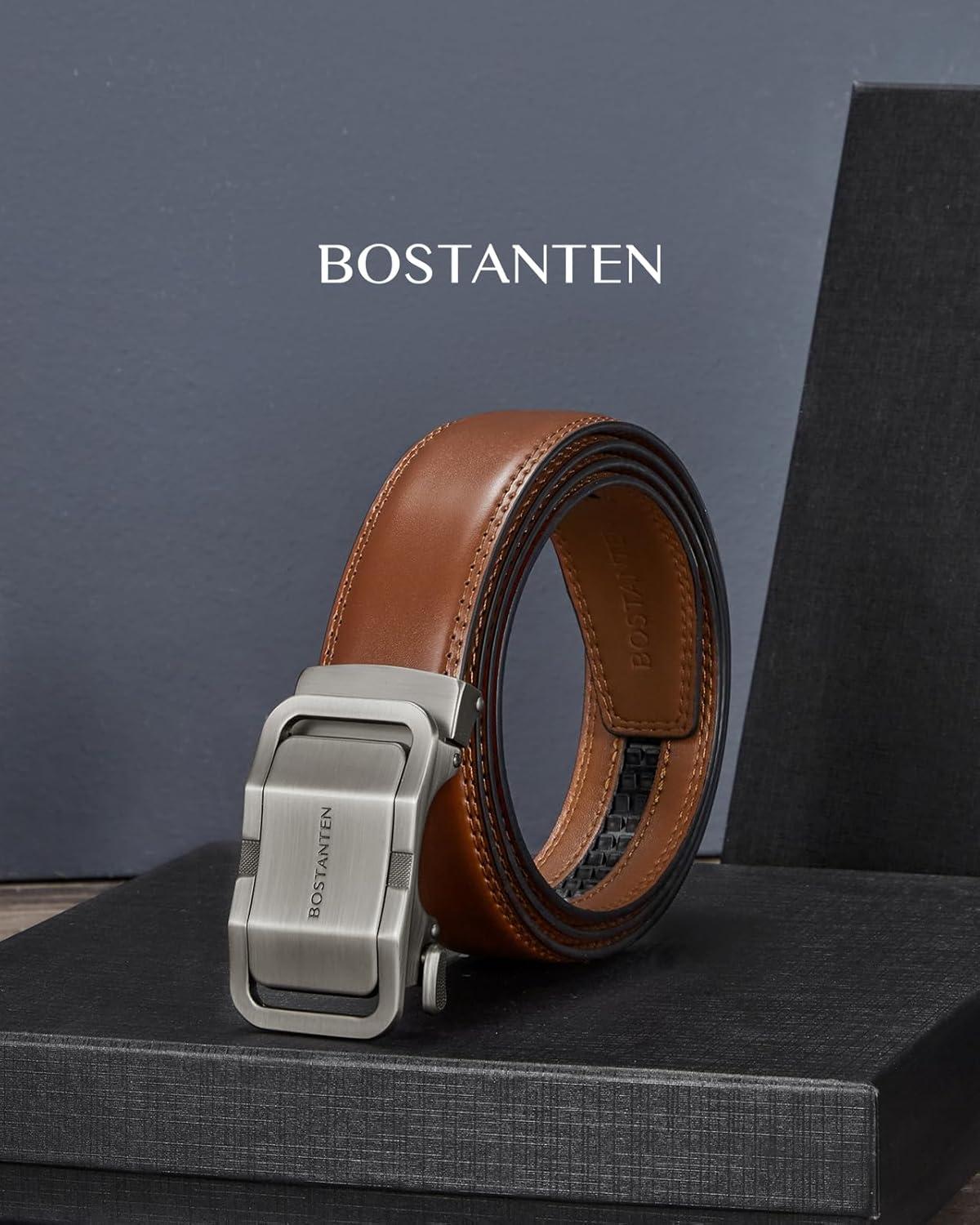 BOSTANTEN Mens Belt Leather Ratchet Belt For Men Dress and Casual with Adjustable Buckle, Trim to Fit(024 – Bostanten&dark Brown)