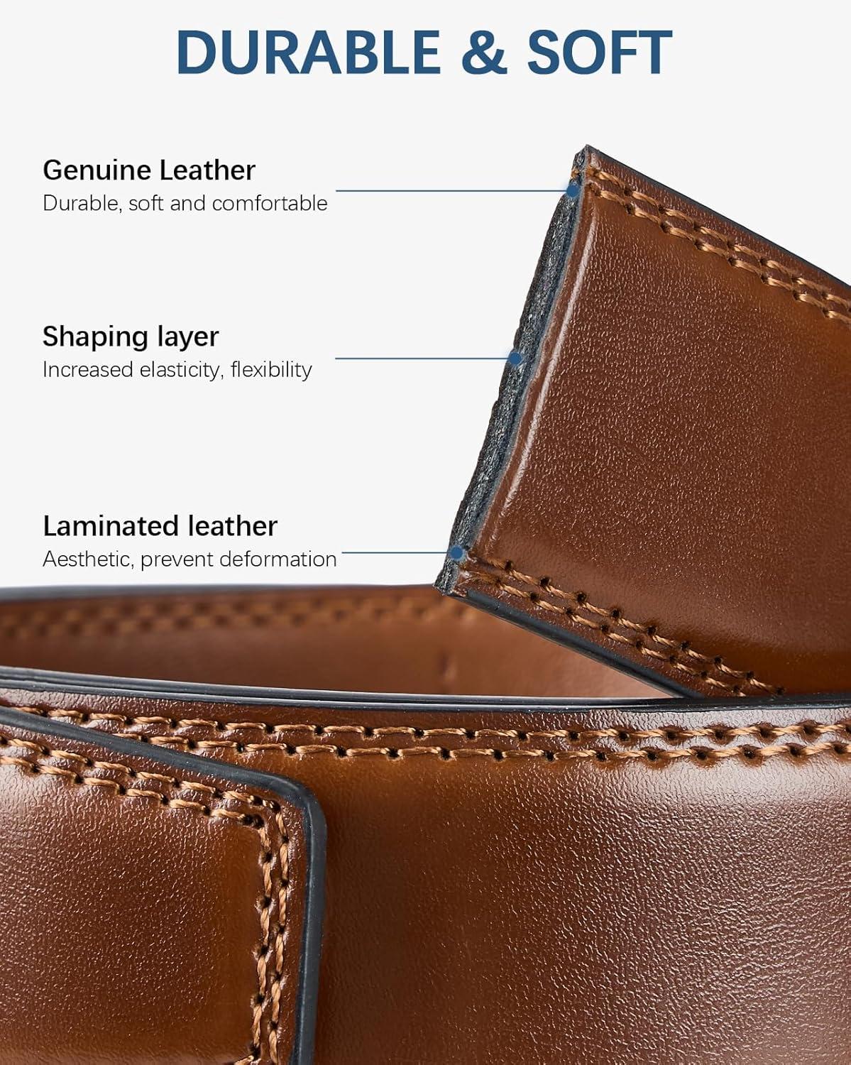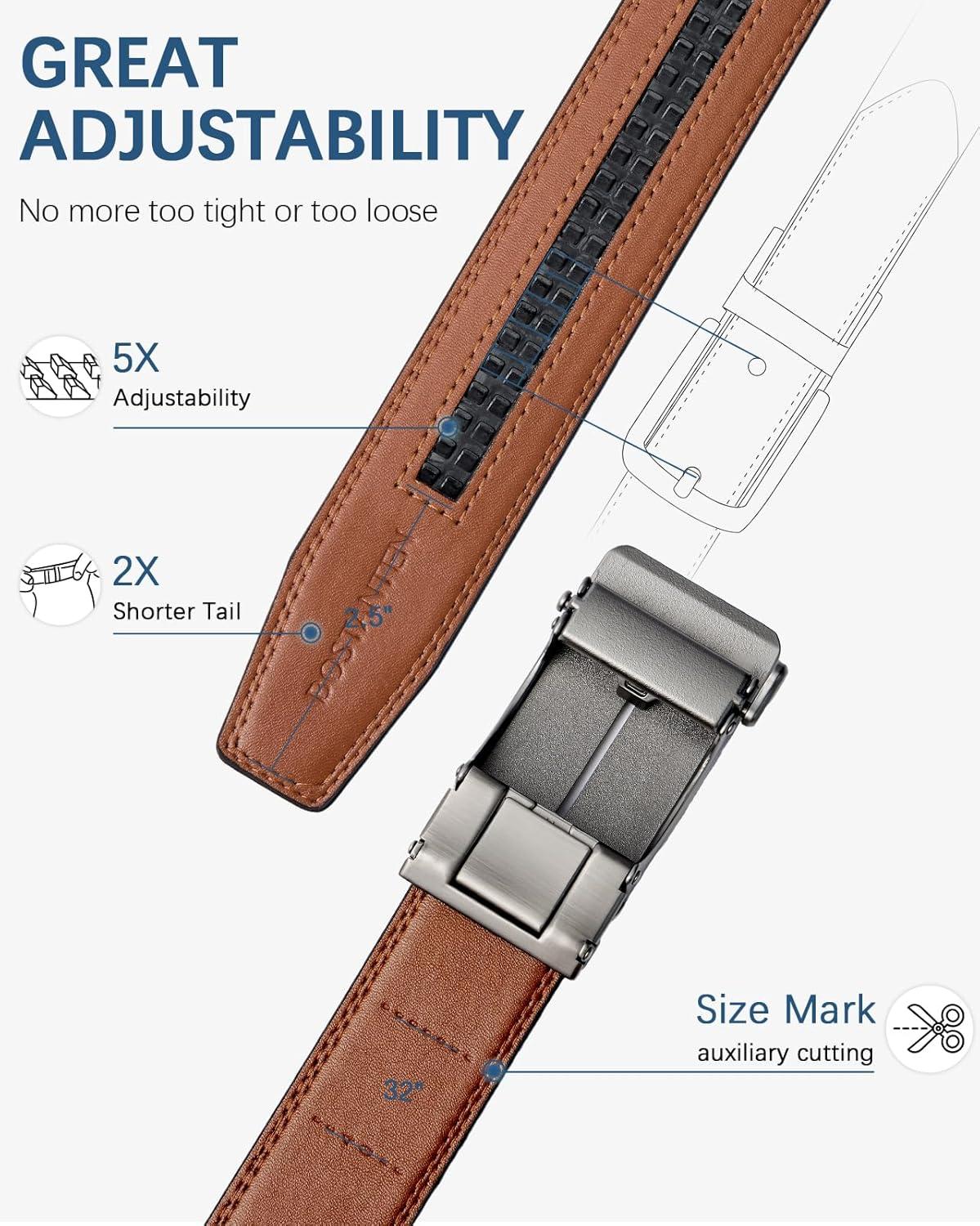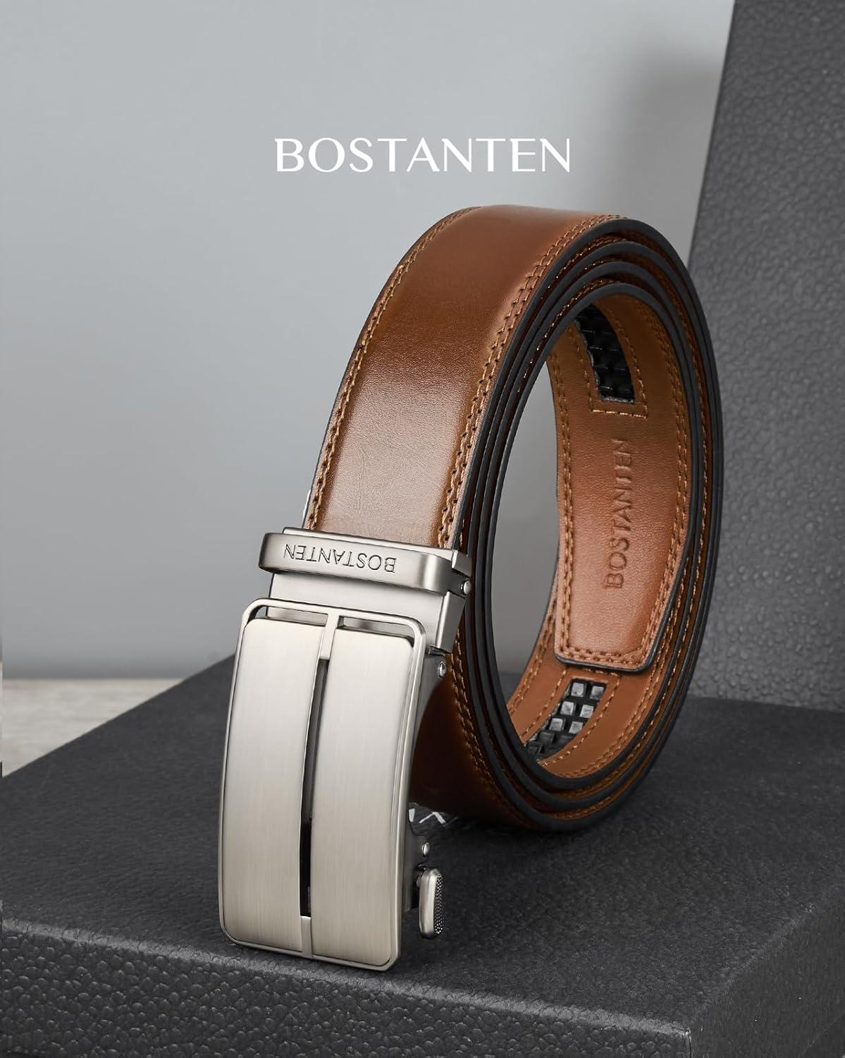 BOSTANTEN Mens Belt Leather Ratchet Belt For Men Dress and Casual with Adjustable Buckle, Trim to Fit(024 – Bostanten&dark Brown)