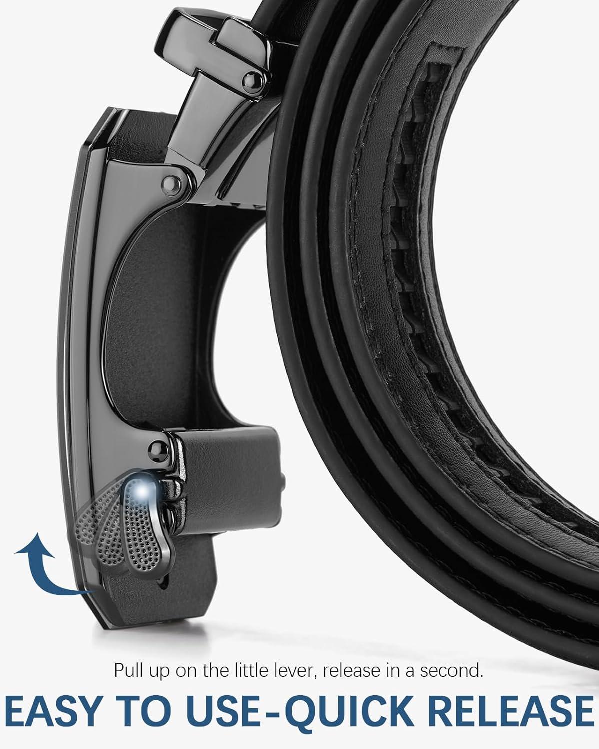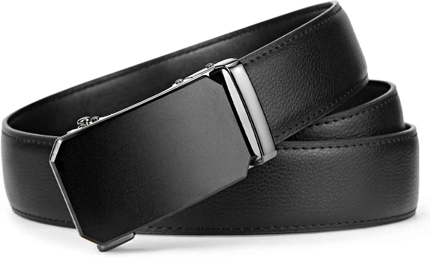 BOSTANTEN Mens Belt Leather Ratchet Belt For Men Dress and Casual with Adjustable Buckle, Trim to Fit(Frosted Pattern - Black)