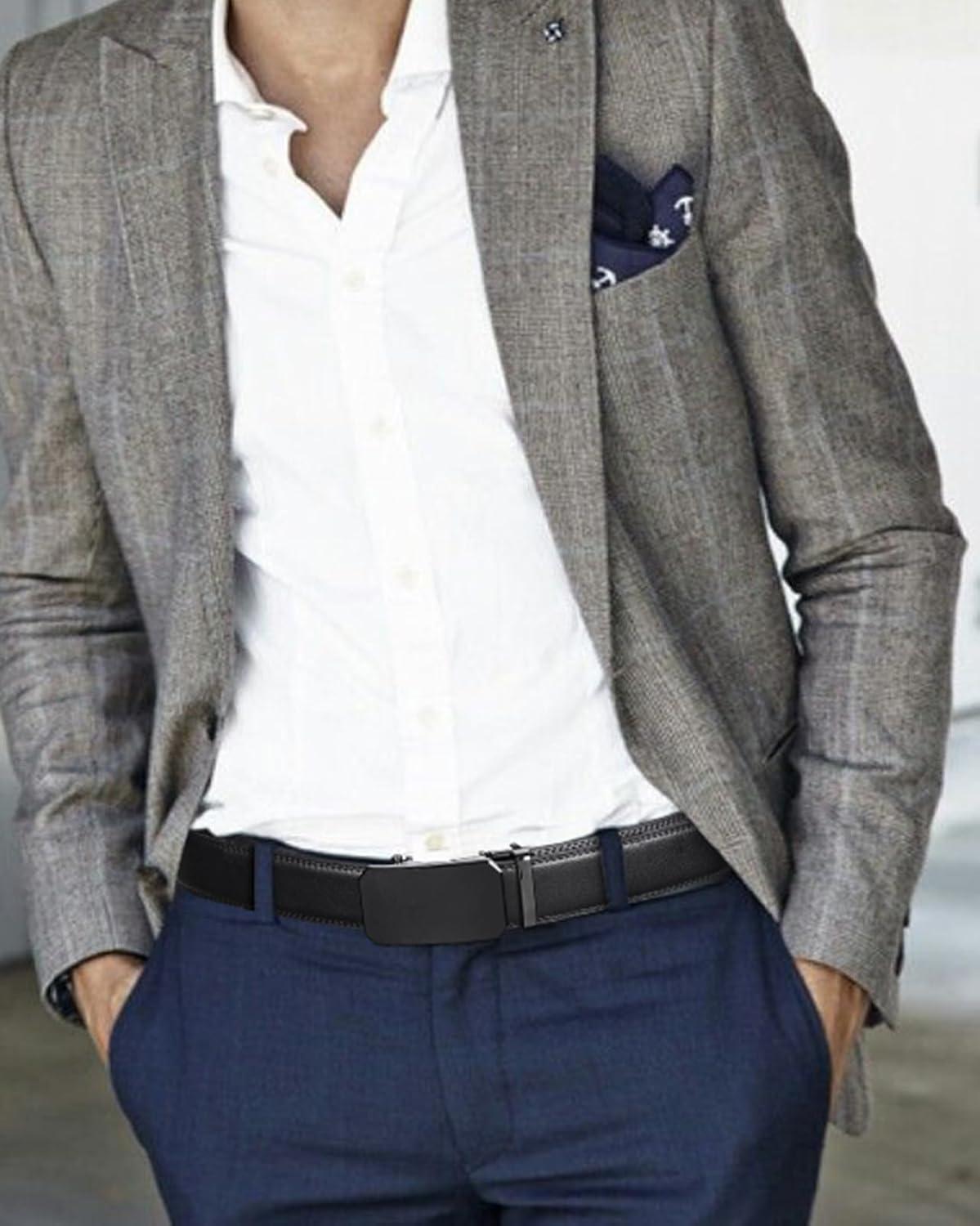 BOSTANTEN Mens Belt Leather Ratchet Belt For Men Dress and Casual with Adjustable Buckle, Trim to Fit(Frosted Pattern – Black)