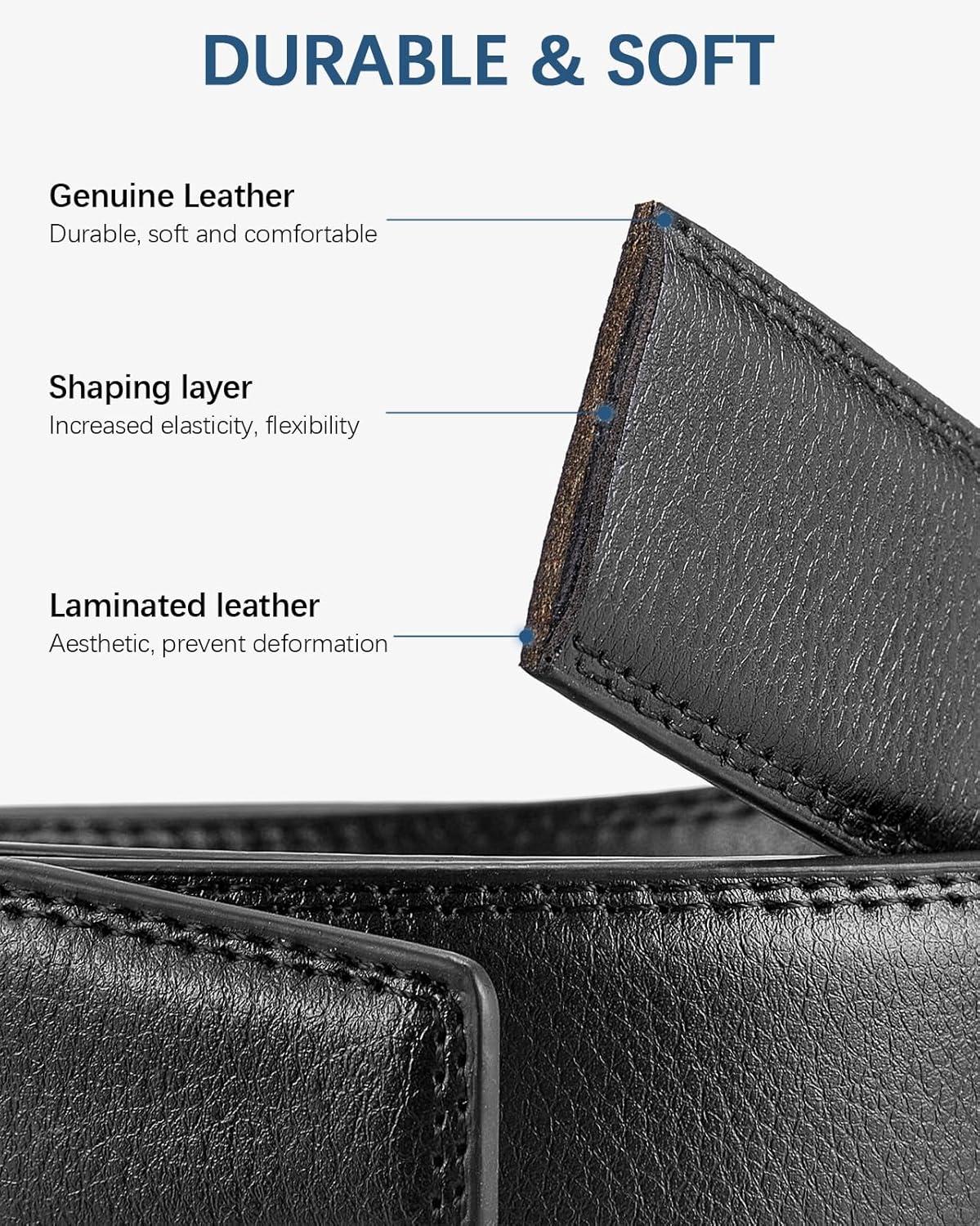 imageBOSTANTEN Mens Belt Leather Ratchet Belt For Men Dress and Casual with Adjustable Buckle Trim to FitFrosted Pattern  Black