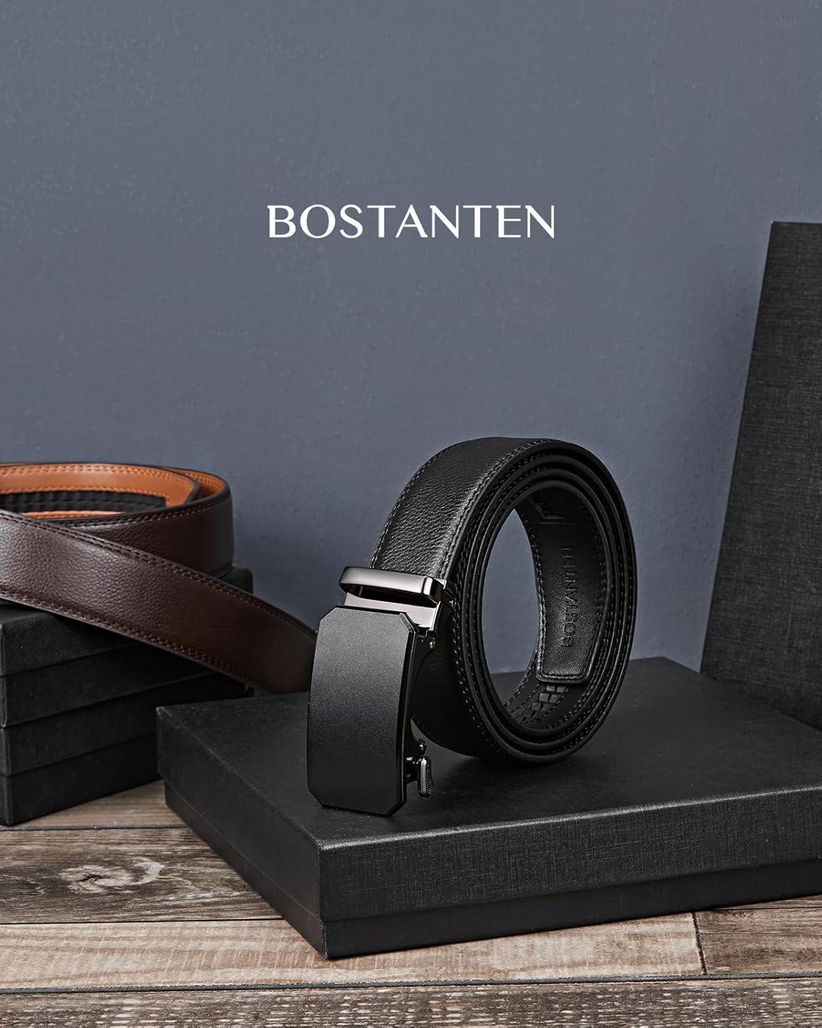 BOSTANTEN Mens Belt Leather Ratchet Belt For Men Dress and Casual with Adjustable Buckle, Trim to Fit(024 – Bostanten&dark Brown)