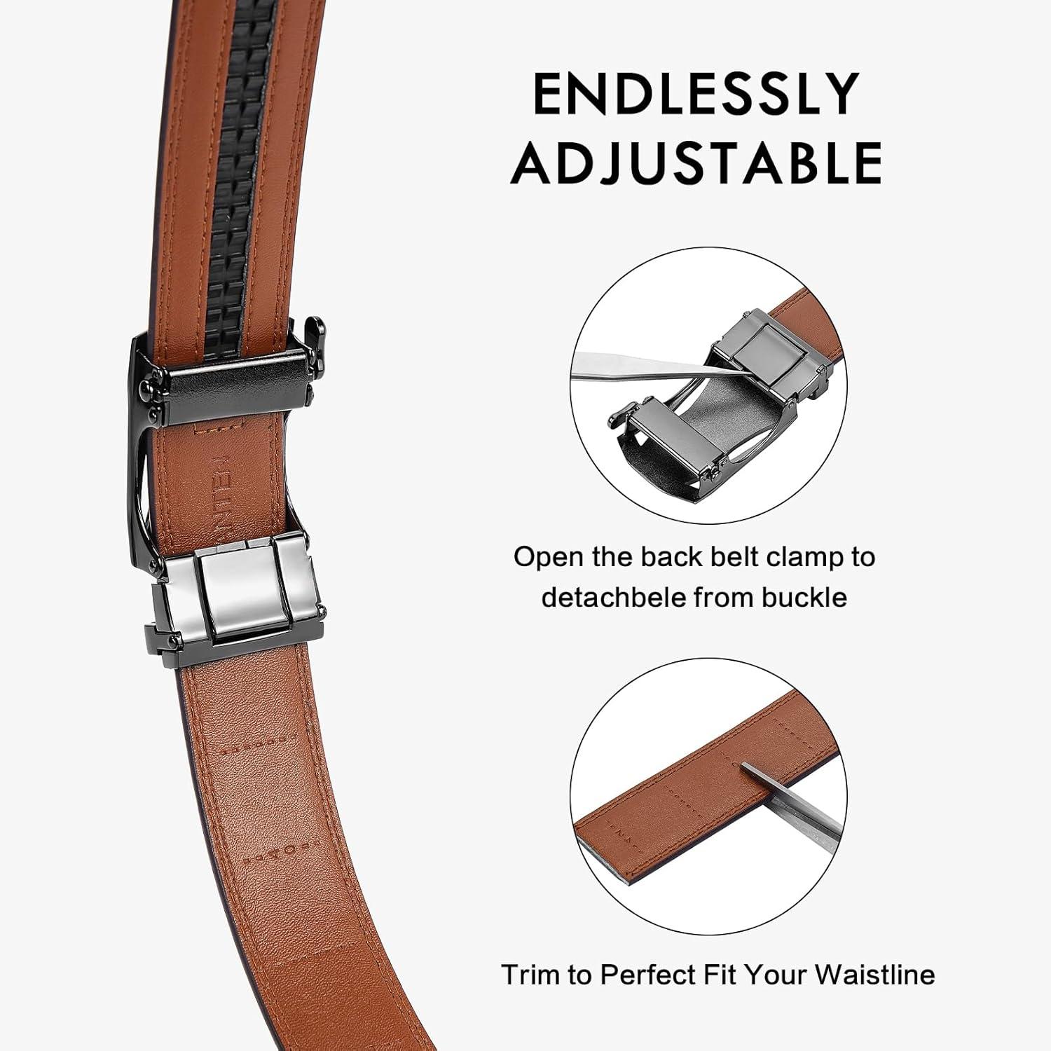 BOSTANTEN Mens Belt Leather Ratchet Belt For Men Dress and Casual with Adjustable Buckle, Trim to Fit(Frosted Pattern – Black)