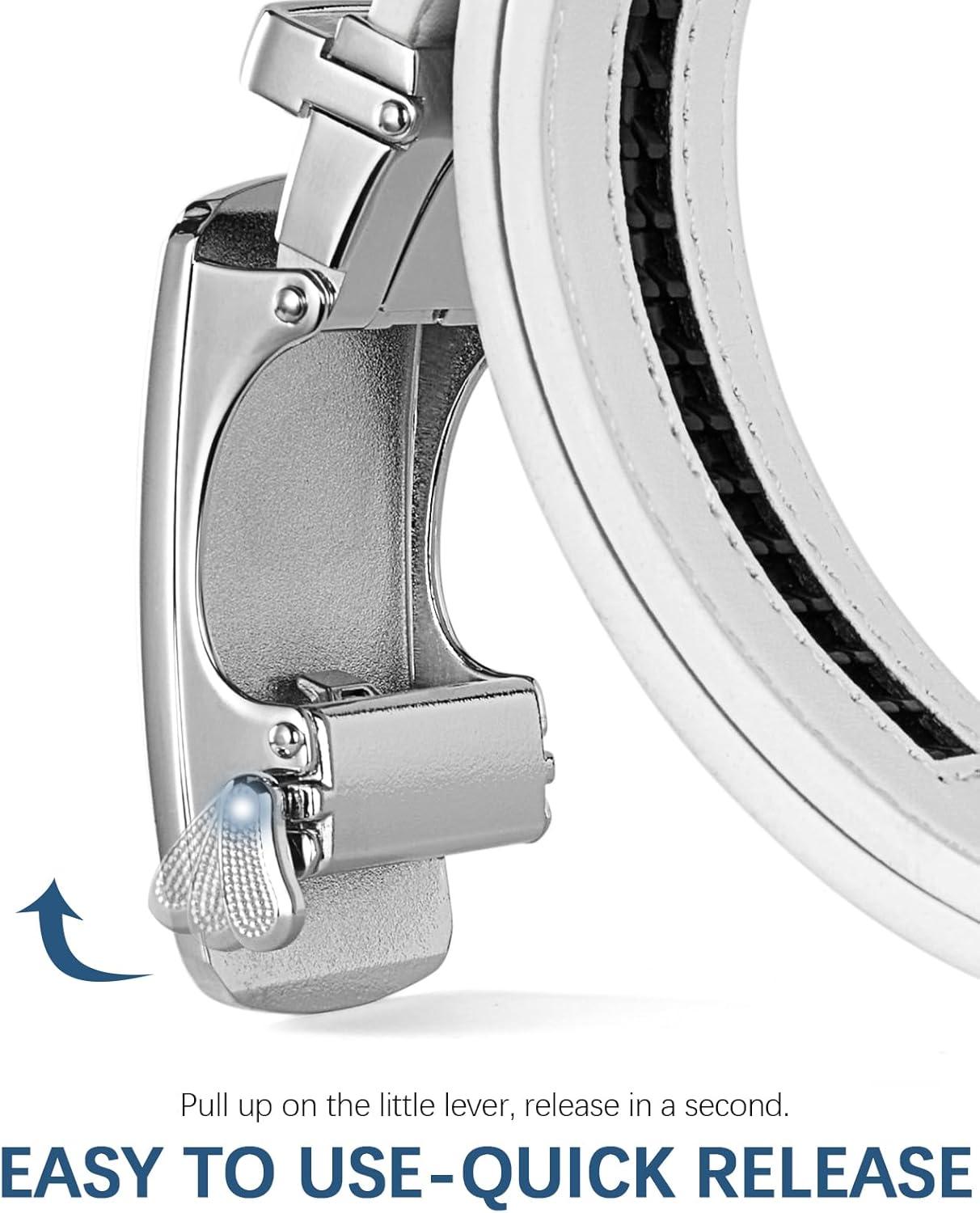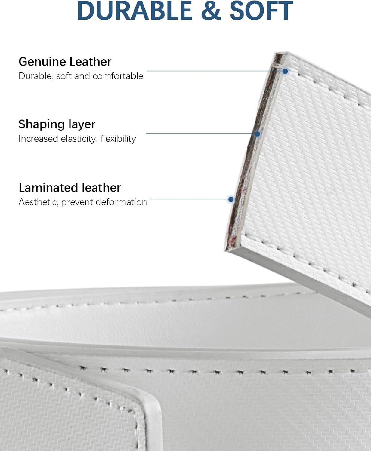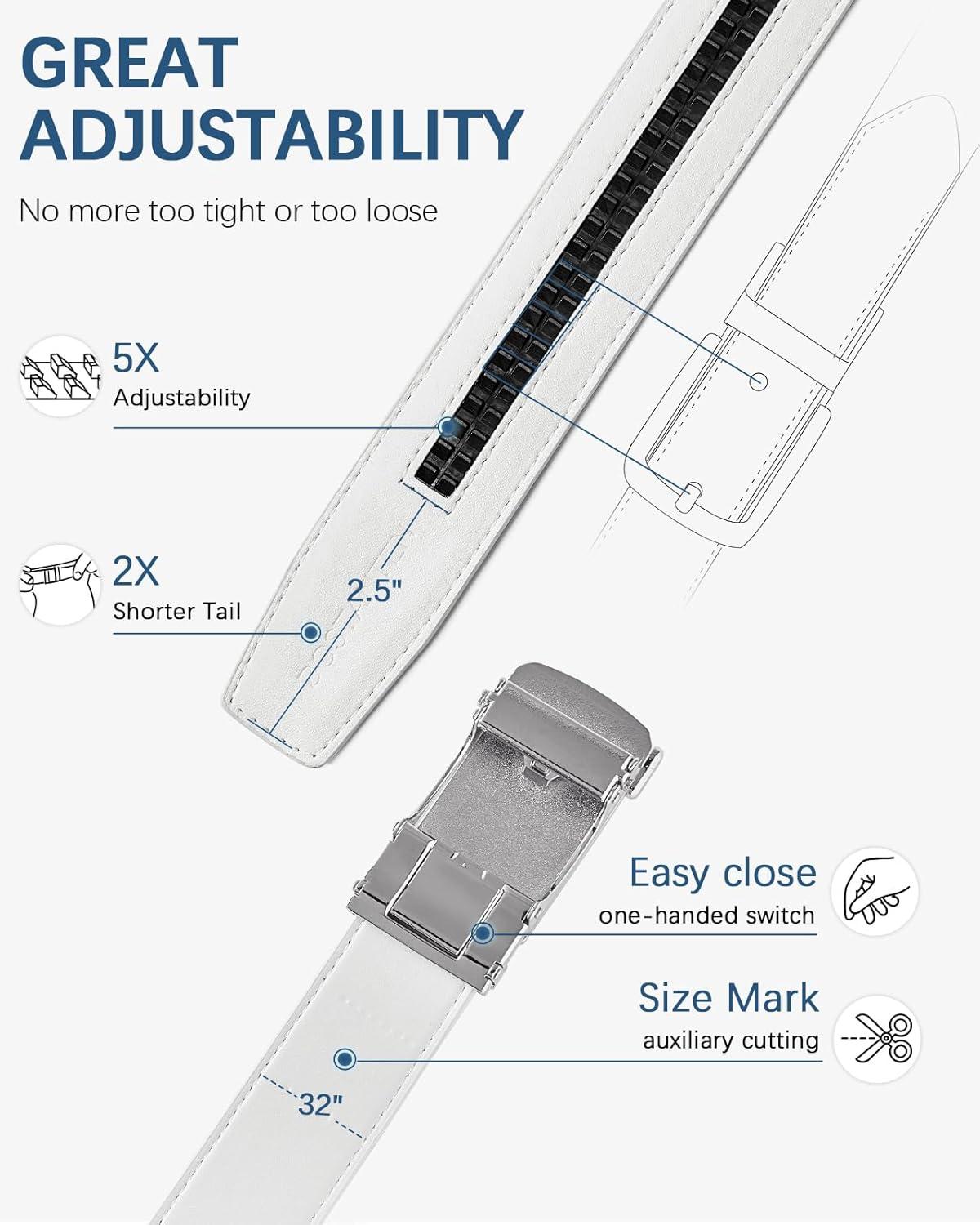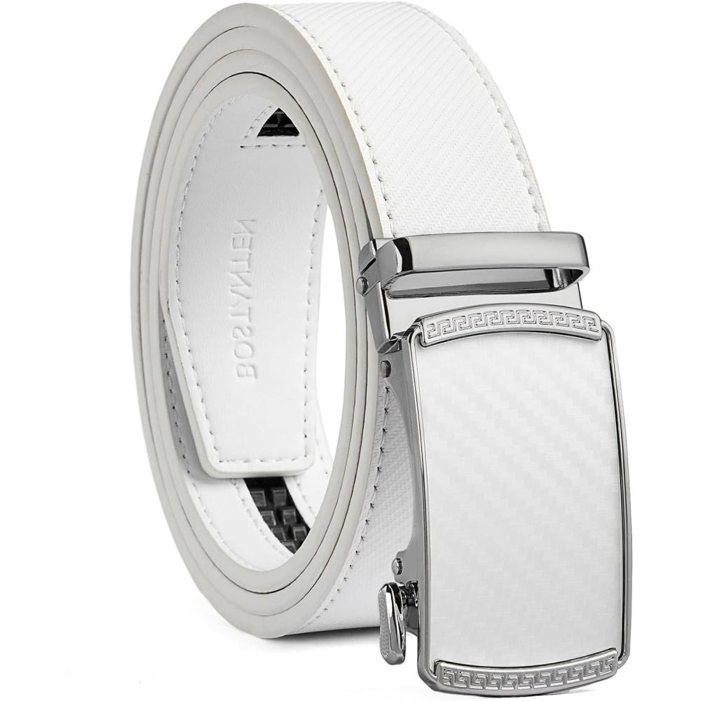 imageBOSTANTEN Mens Belt Ratchet Belts for Men Leather Dress Casual with Adjustable Buckle Cut for Fit004all White