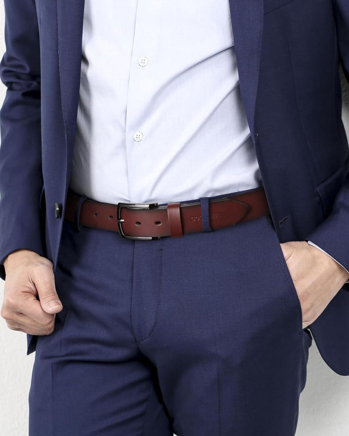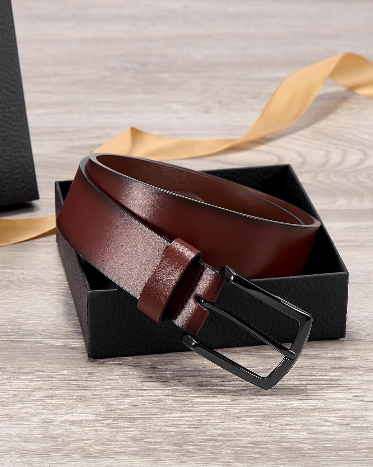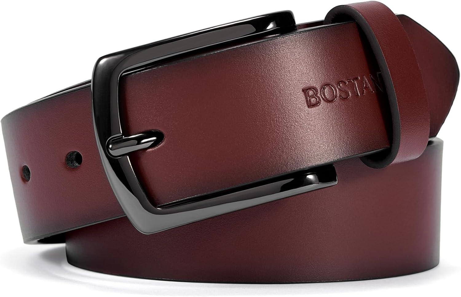 BOSTANTEN Mens Genuine Leather Belt Dress Casual Brown Belt for Men 1 3/8″ Belt for Work Business Golf Jeans with Gift Box(003-brown(grain Leather))