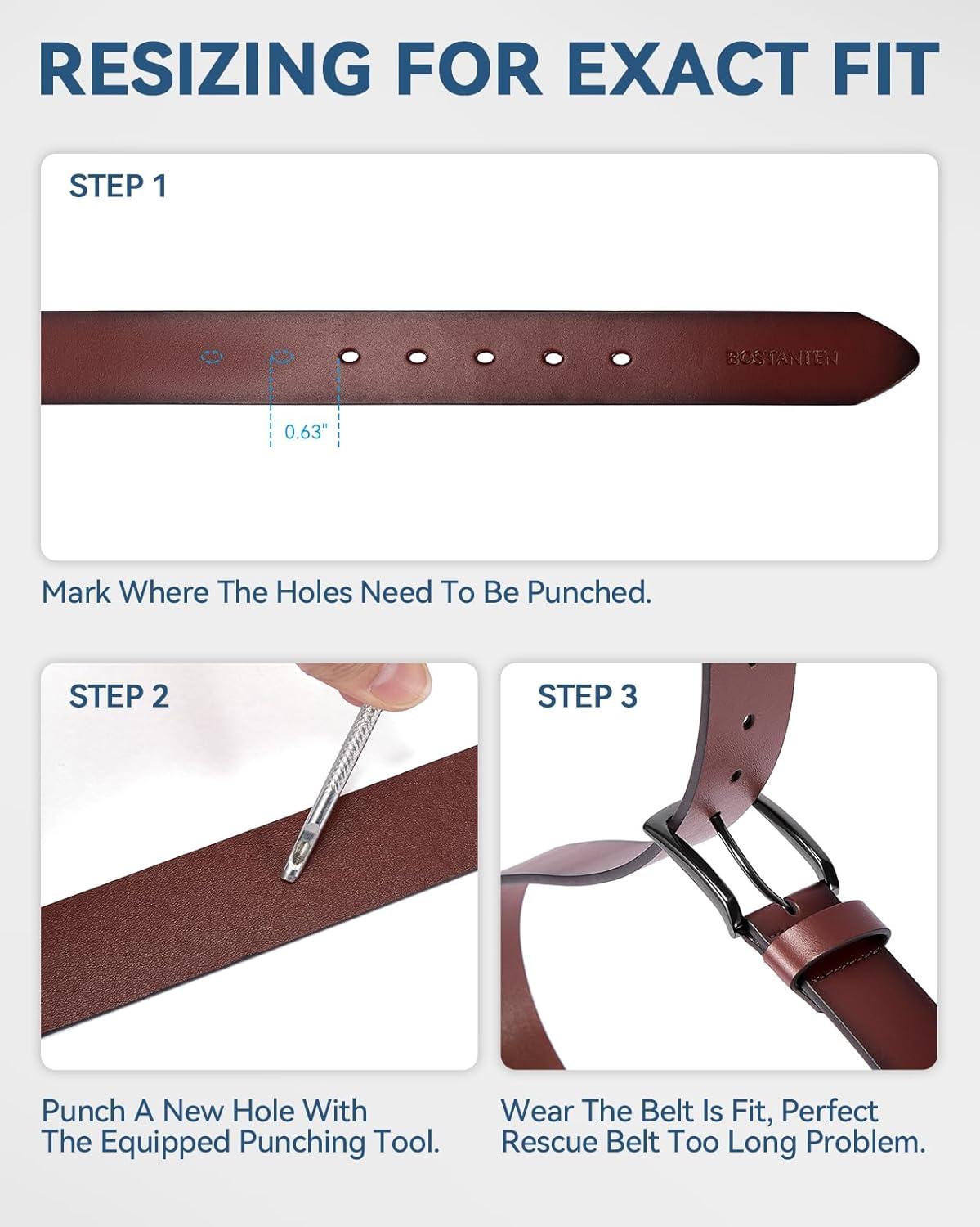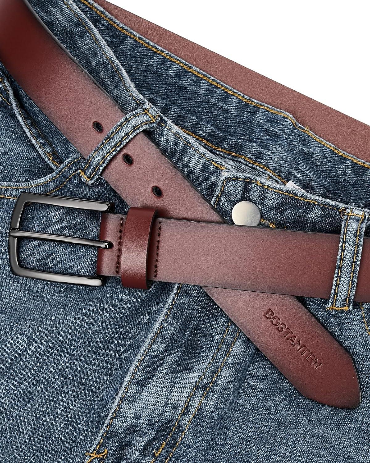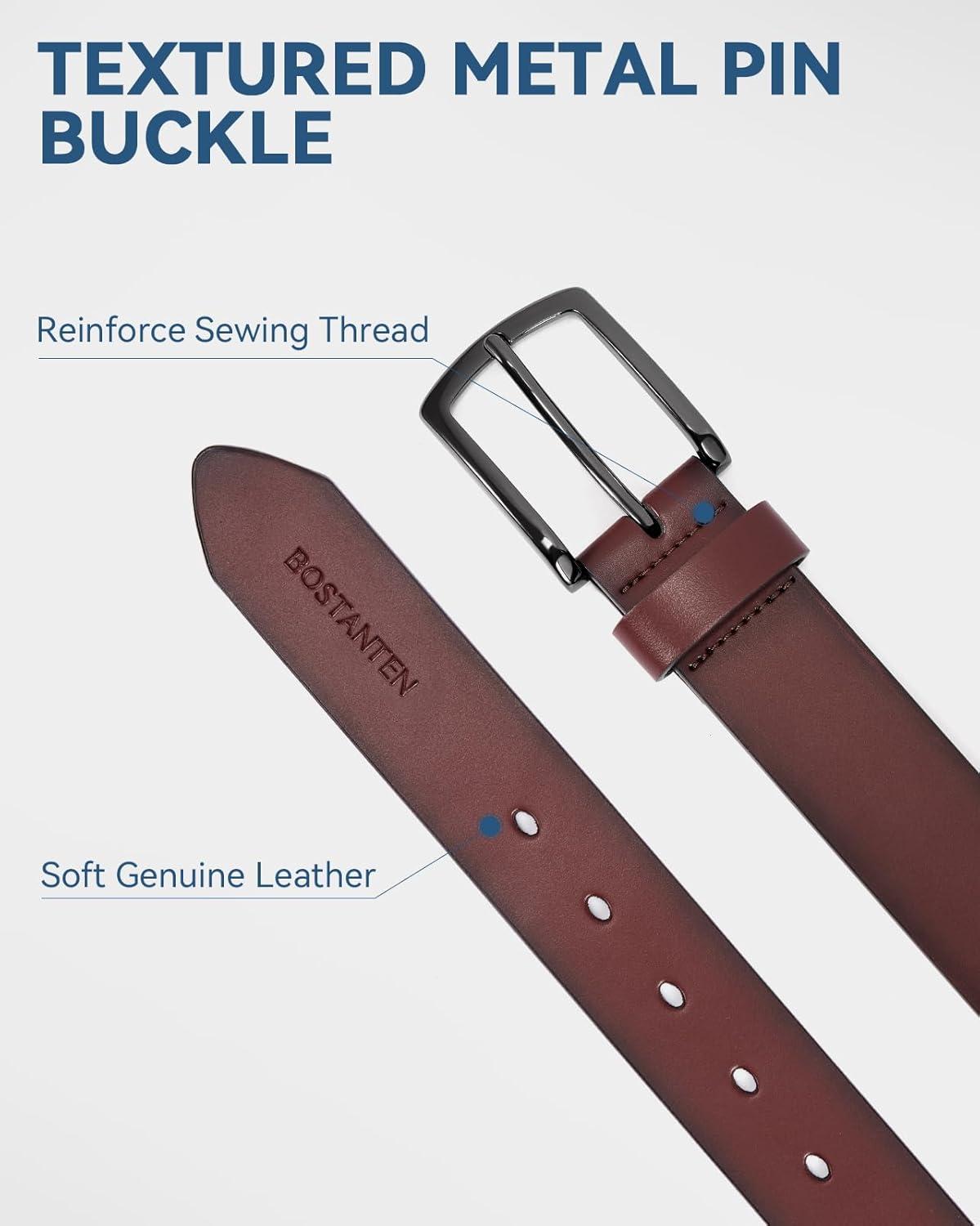 imageBOSTANTEN Mens Genuine Leather Belt Dress Casual Brown Belt for Men 1 38quot Belt for Work Business Golf Jeans with Gift Box004silverdark Brown
