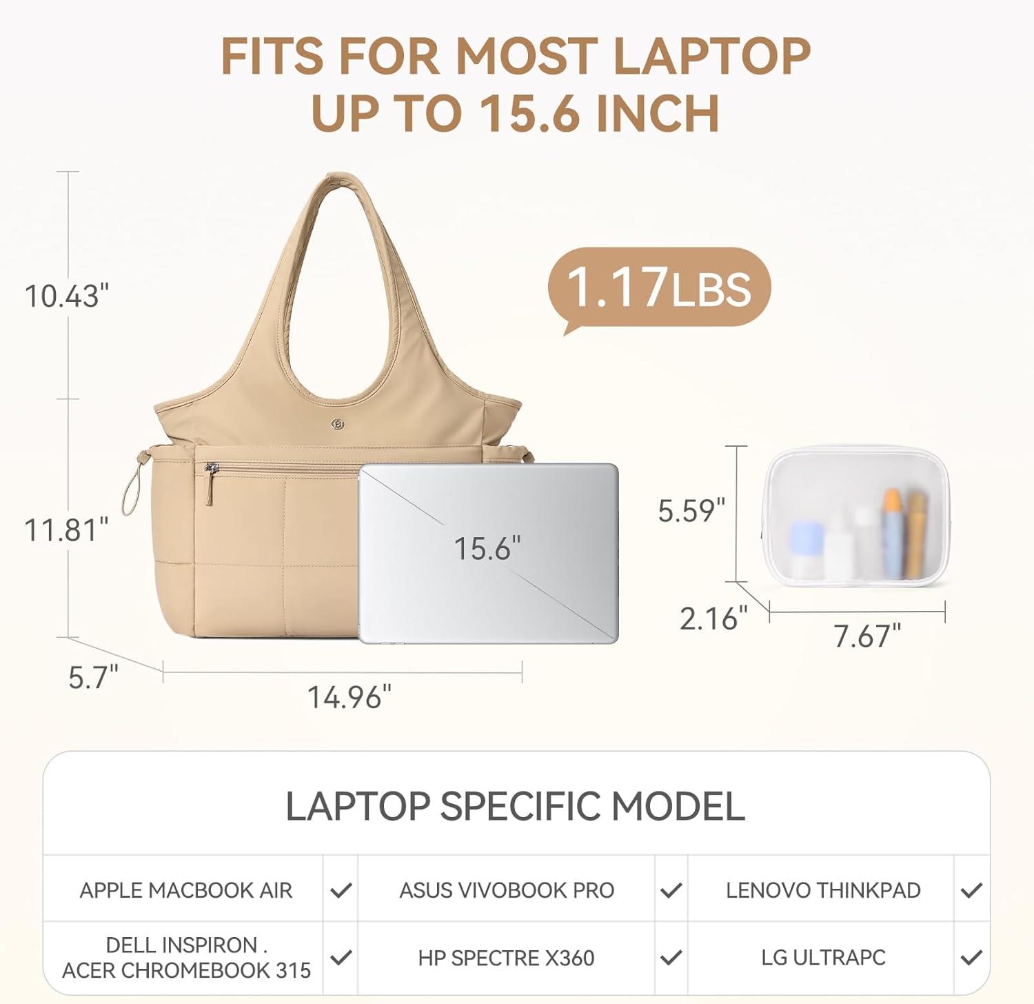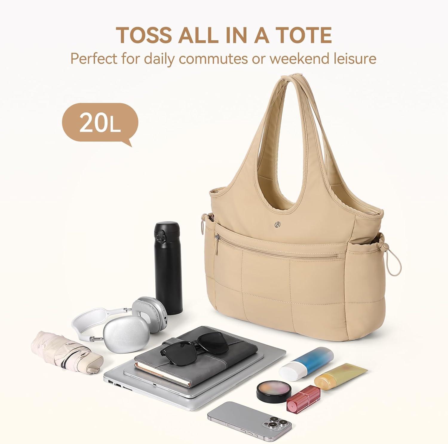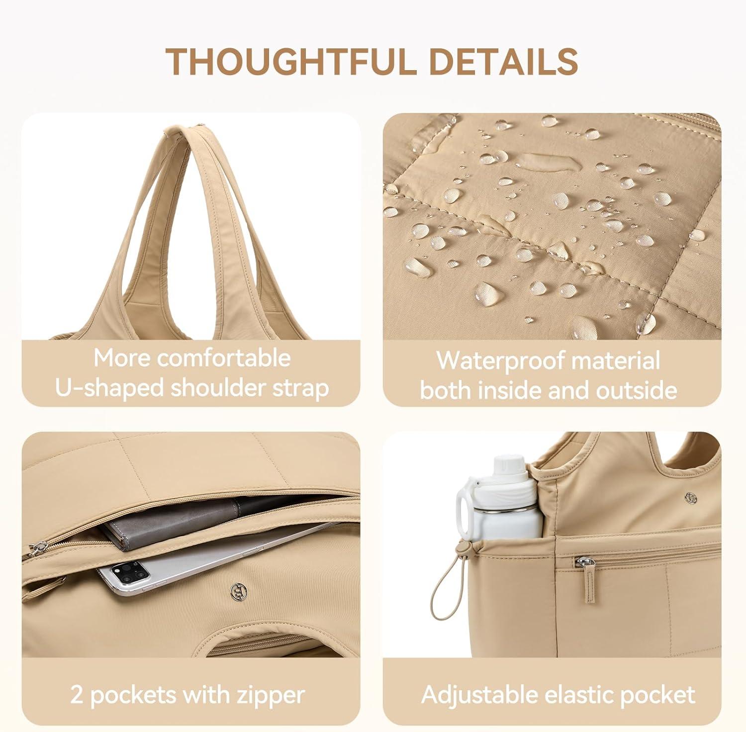 BOSTANTEN Puffer Tote Bag for Women Travel Tote Bag with Trolley Sleeve Lightweight Quilted Laptop Nurse Bag with Zipper(Khaki)