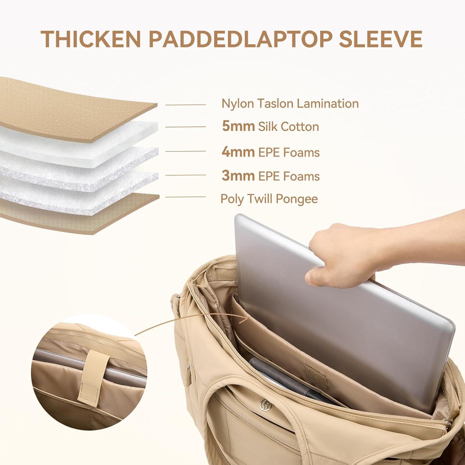 imageBOSTANTEN Puffer Tote Bag for Women Travel Tote Bag with Trolley Sleeve Lightweight Quilted Laptop Nurse Bag with ZipperKhaki