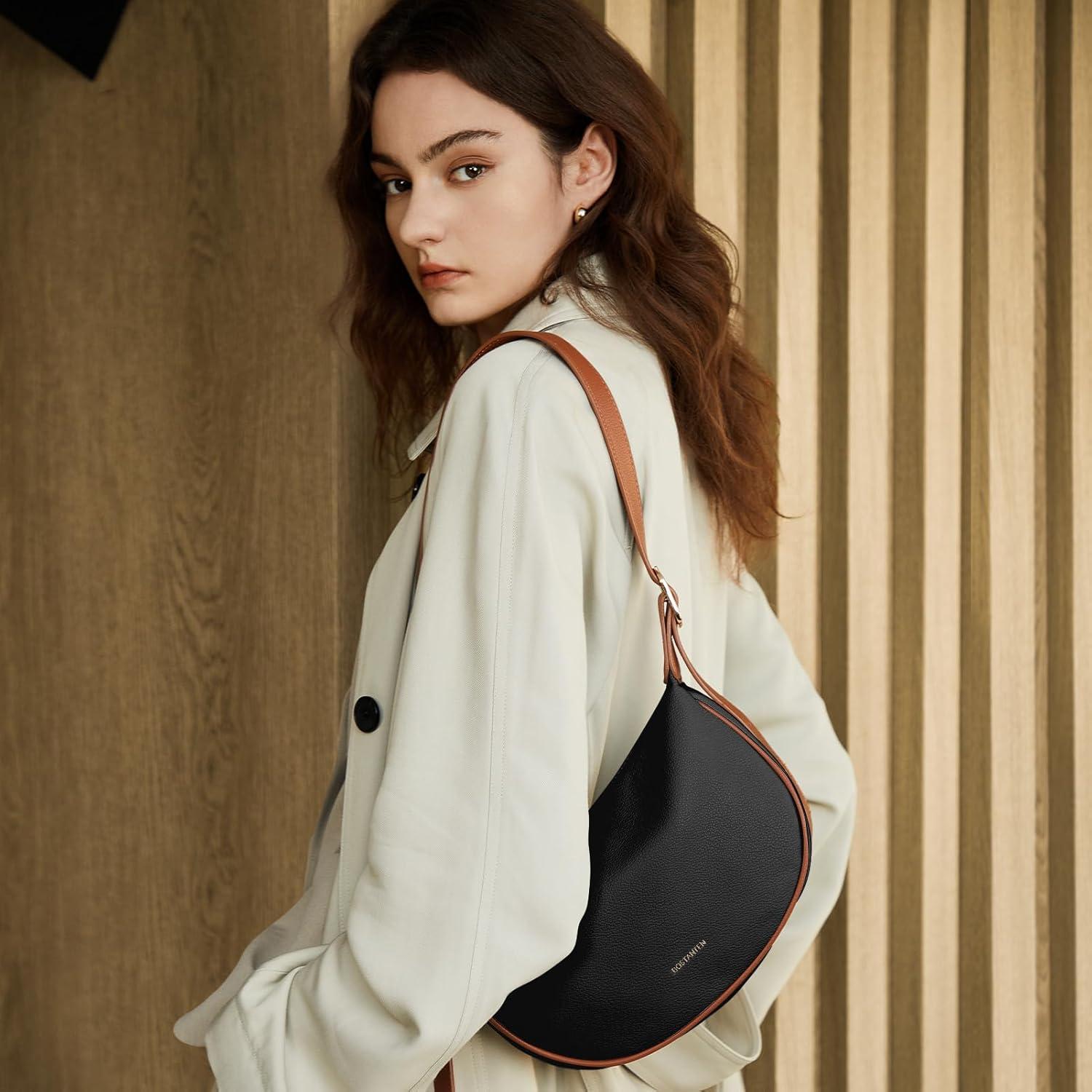 imageBOSTANTEN Purses for Women Small Crossbody Bags Crescent Shoulder Bag Hobo Handbag with Adjustable StrapBlack With Brown