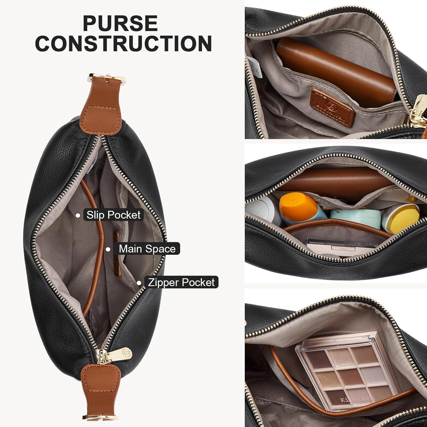 imageBOSTANTEN Purses for Women Small Crossbody Bags Crescent Shoulder Bag Hobo Handbag with Adjustable StrapLarge Black