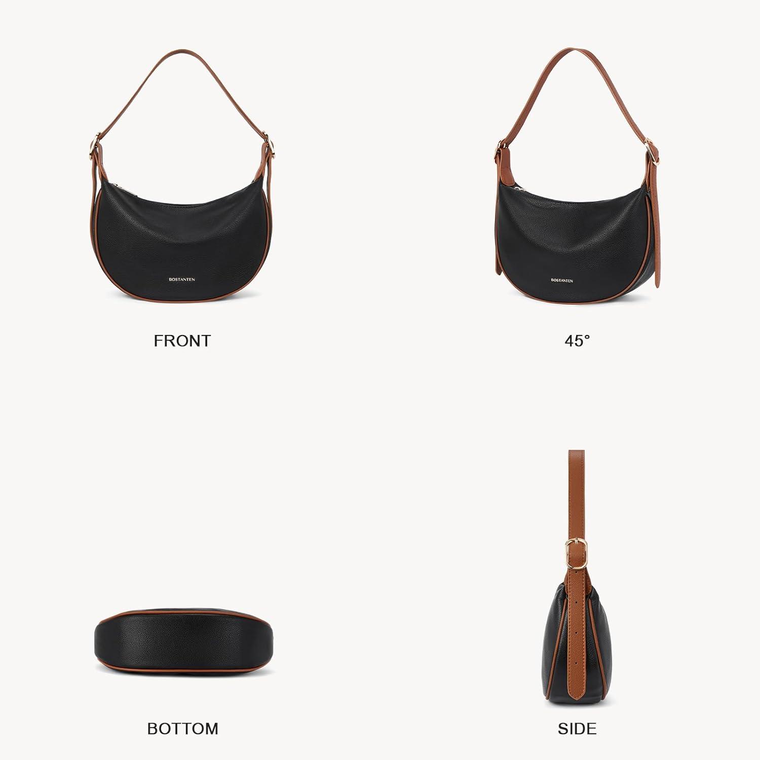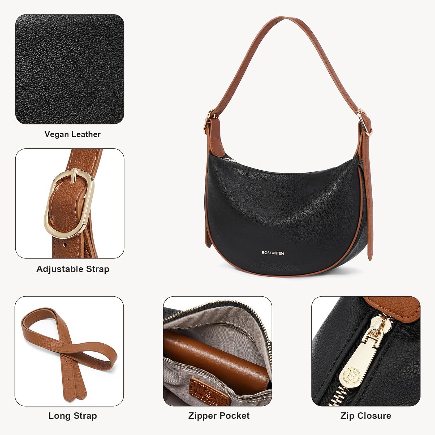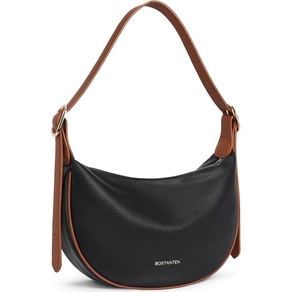 BOSTANTEN Purses for Women Small Crossbody Bags Crescent Shoulder Bag Hobo Handbag with Adjustable Strap(Black With Brown)