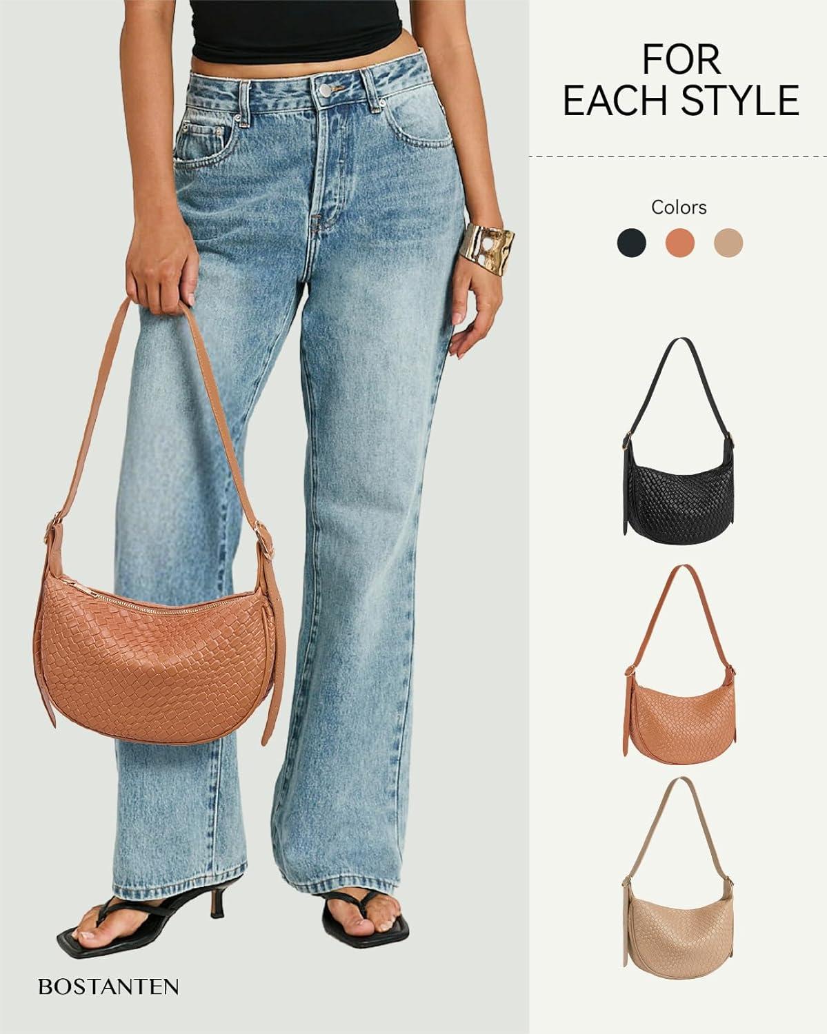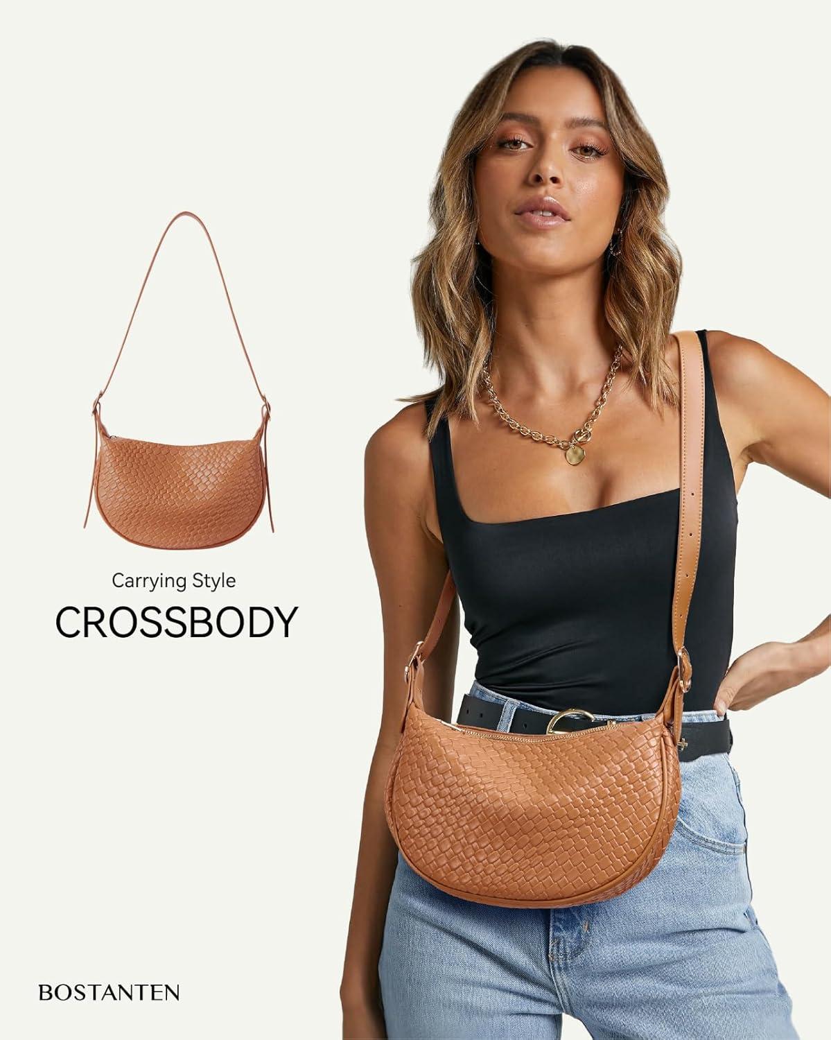 imageBOSTANTEN Purses for Women Small Crossbody Bags Crescent Shoulder Bag Hobo Handbag with Adjustable StrapSmall Brown
