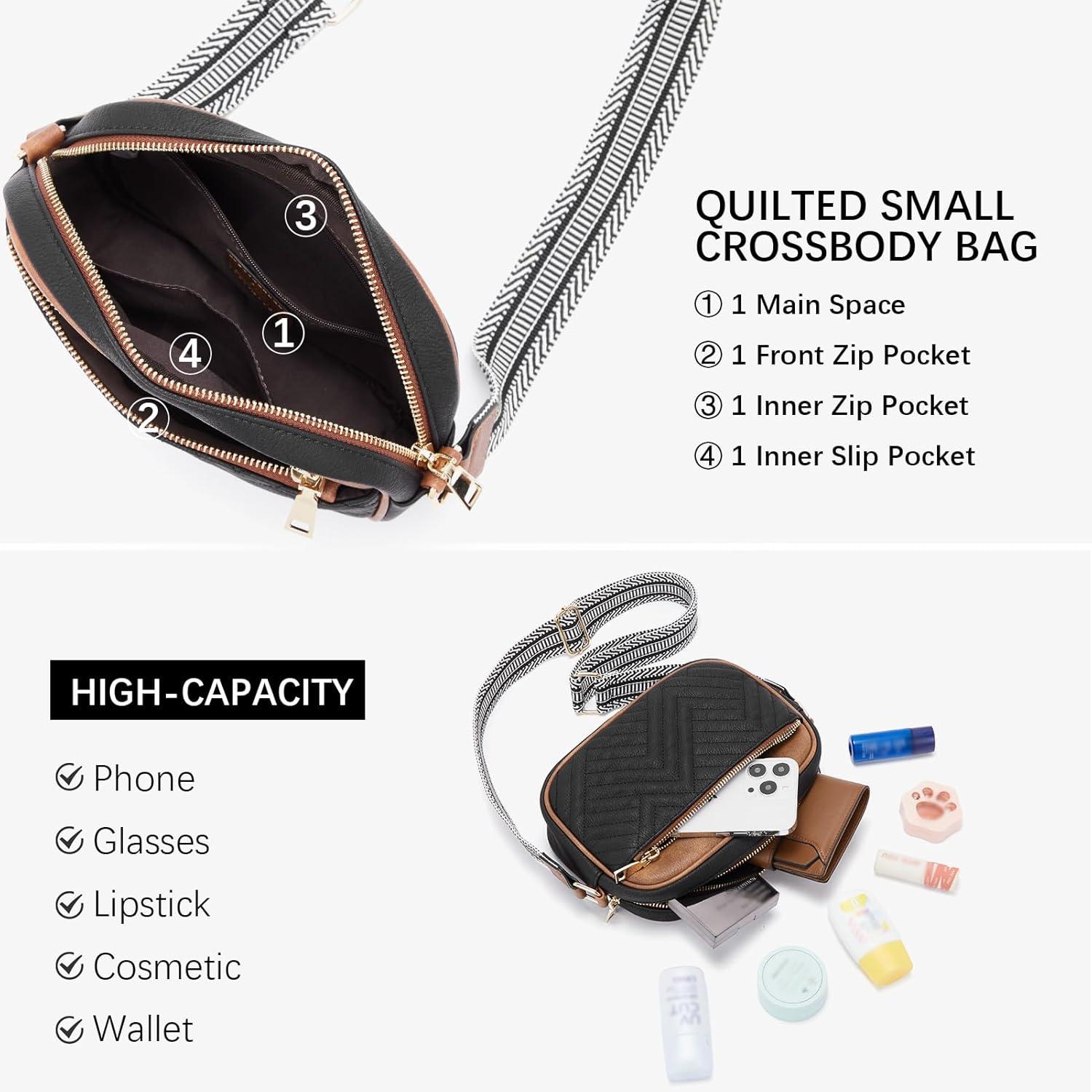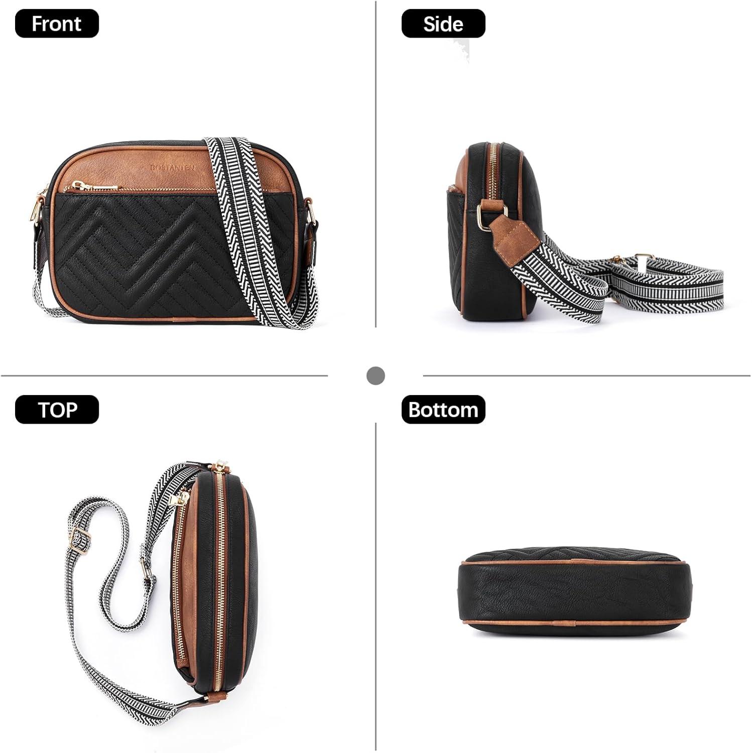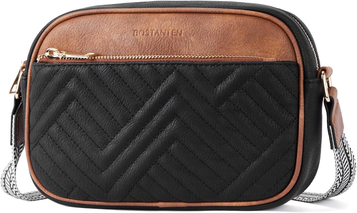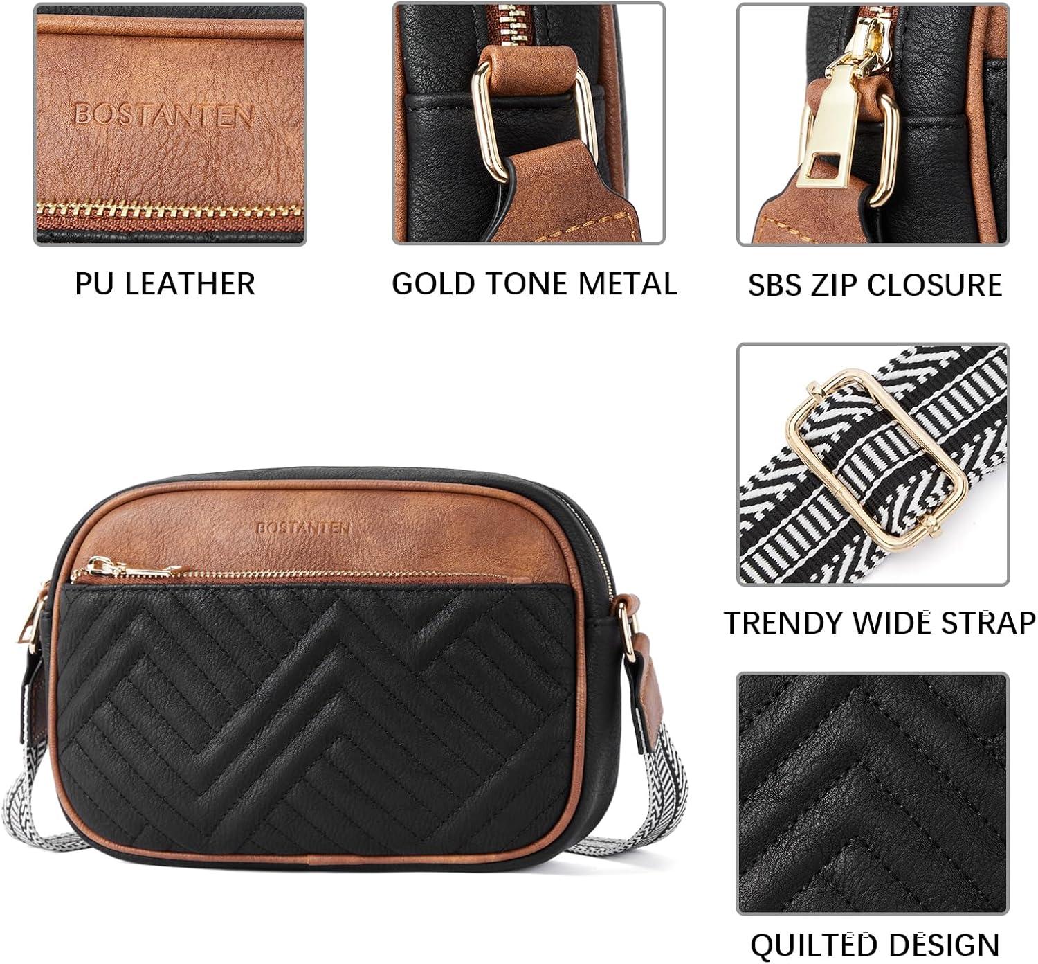 BOSTANTEN Quilted Crossbody Bags for Women Vegan Leather Purses Small Shoulder Handbags with Wide Strap(Black&brown)