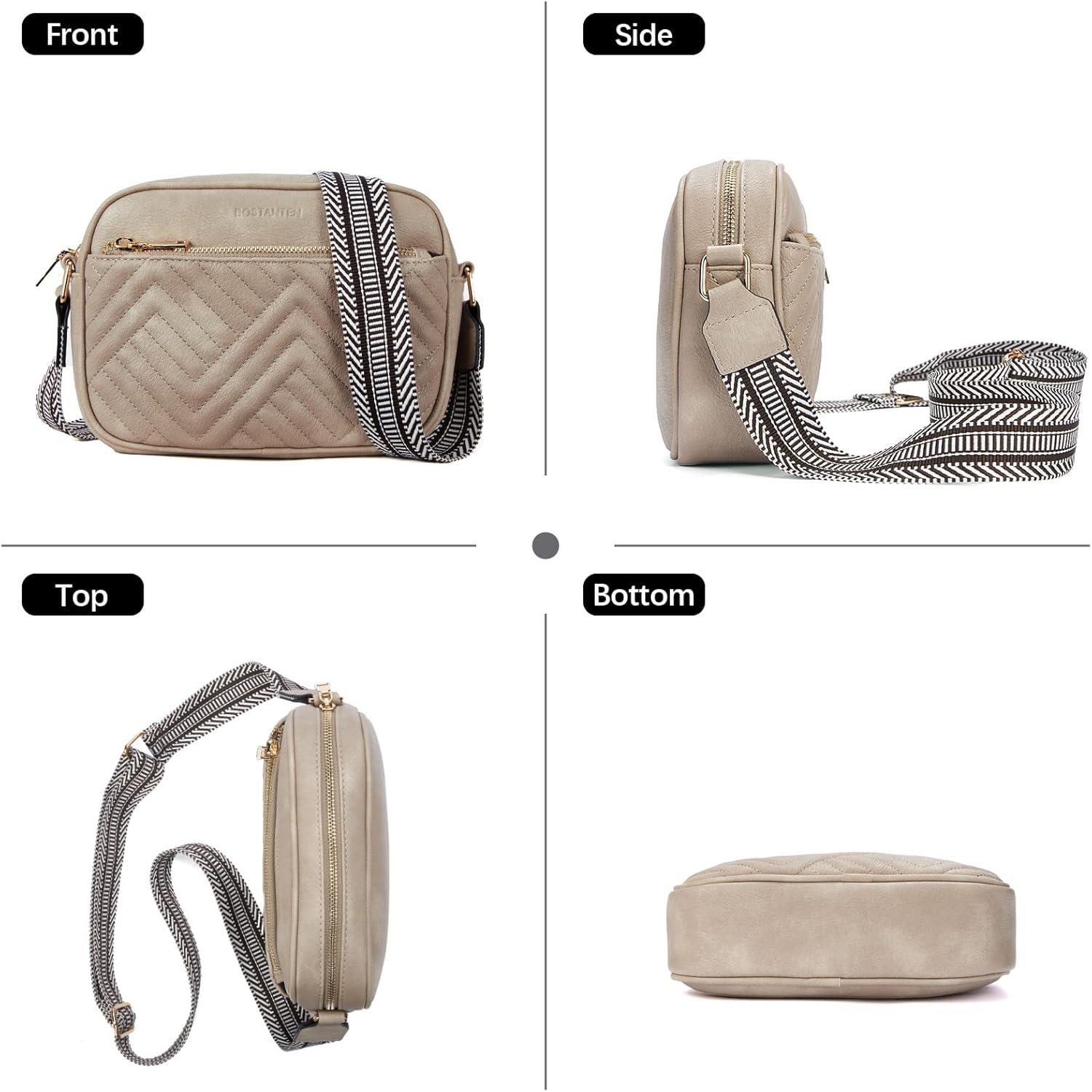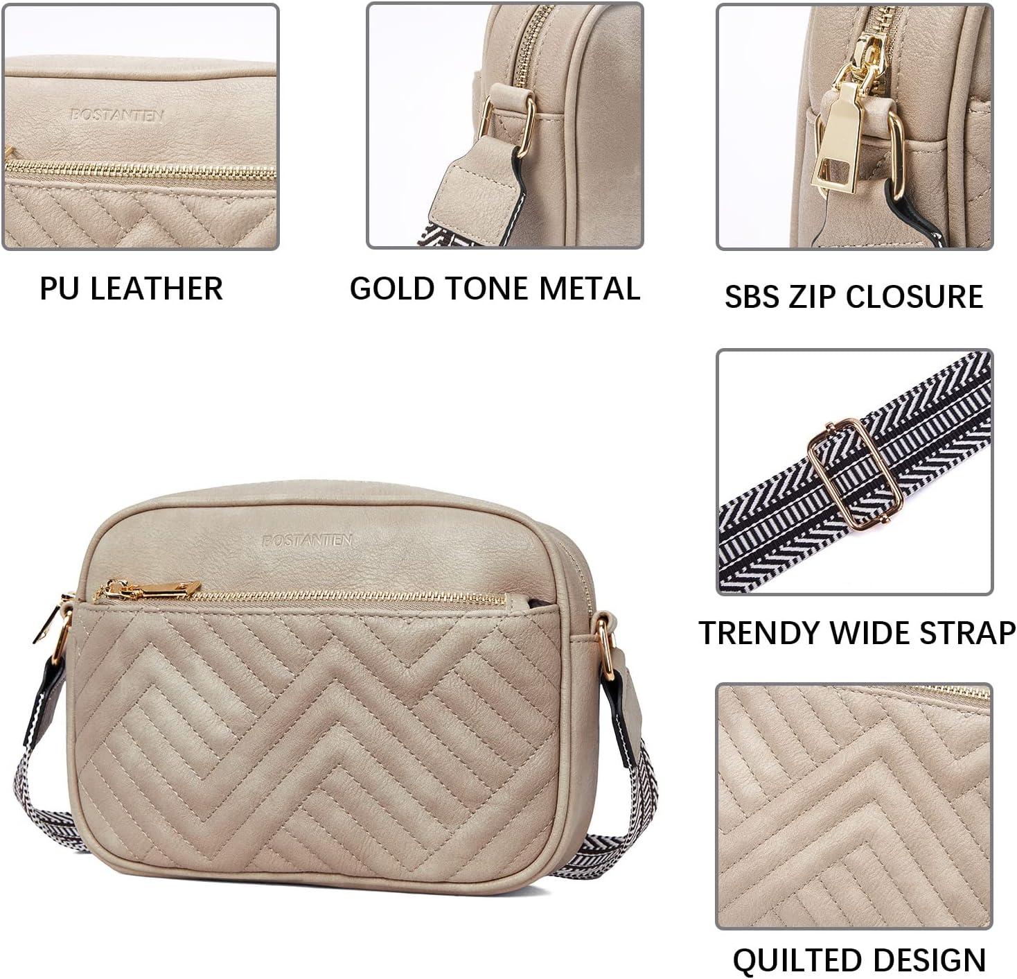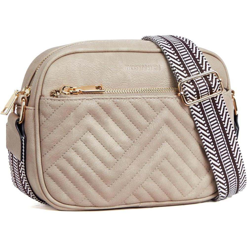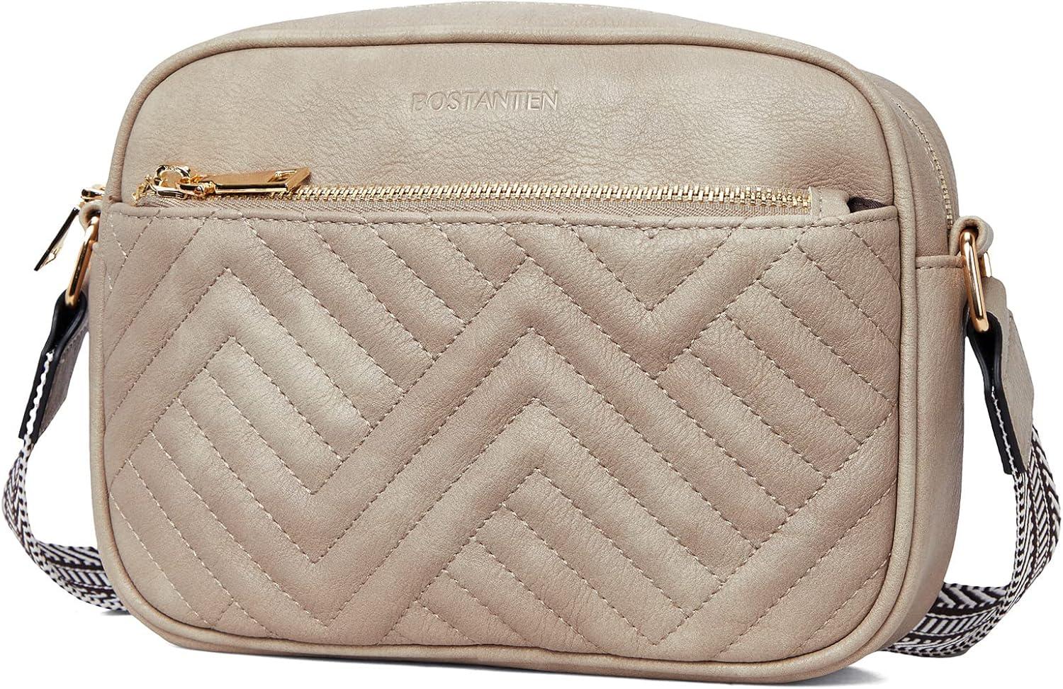 BOSTANTEN Quilted Crossbody Bags for Women Vegan Leather Purses Small Shoulder Handbags with Wide Strap(Grey)