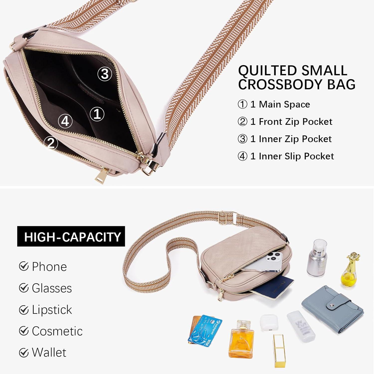 BOSTANTEN Quilted Crossbody Bags for Women Vegan Leather Purses Small Shoulder Handbags with Wide Strap(Pink)