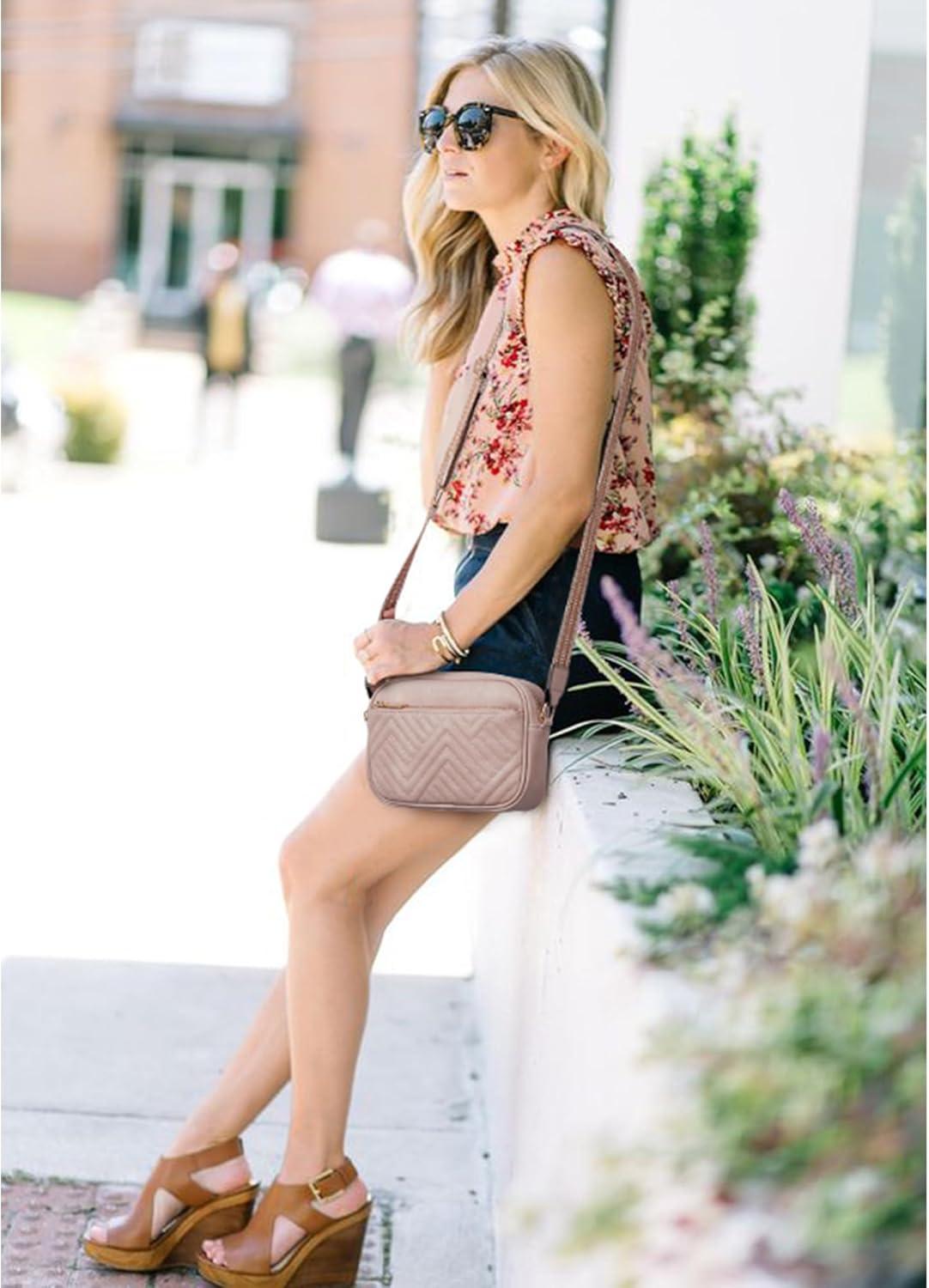 imageBOSTANTEN Quilted Crossbody Bags for Women Vegan Leather Purses Small Shoulder Handbags with Wide StrapPink