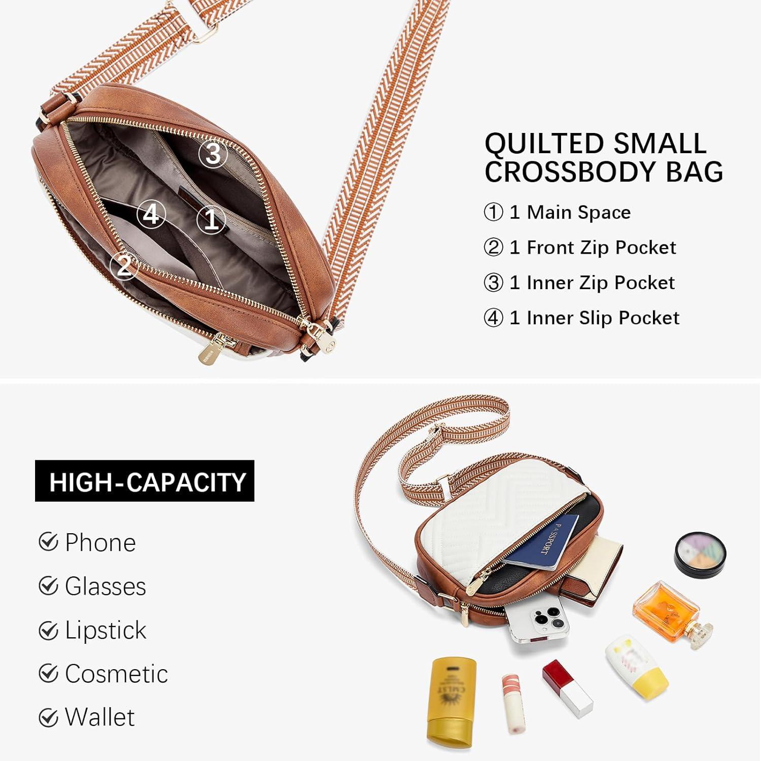 imageBOSTANTEN Quilted Crossbody Bags for Women Vegan Leather Purses Small Shoulder Handbags with Wide StrapZ01plush Beige With Brown