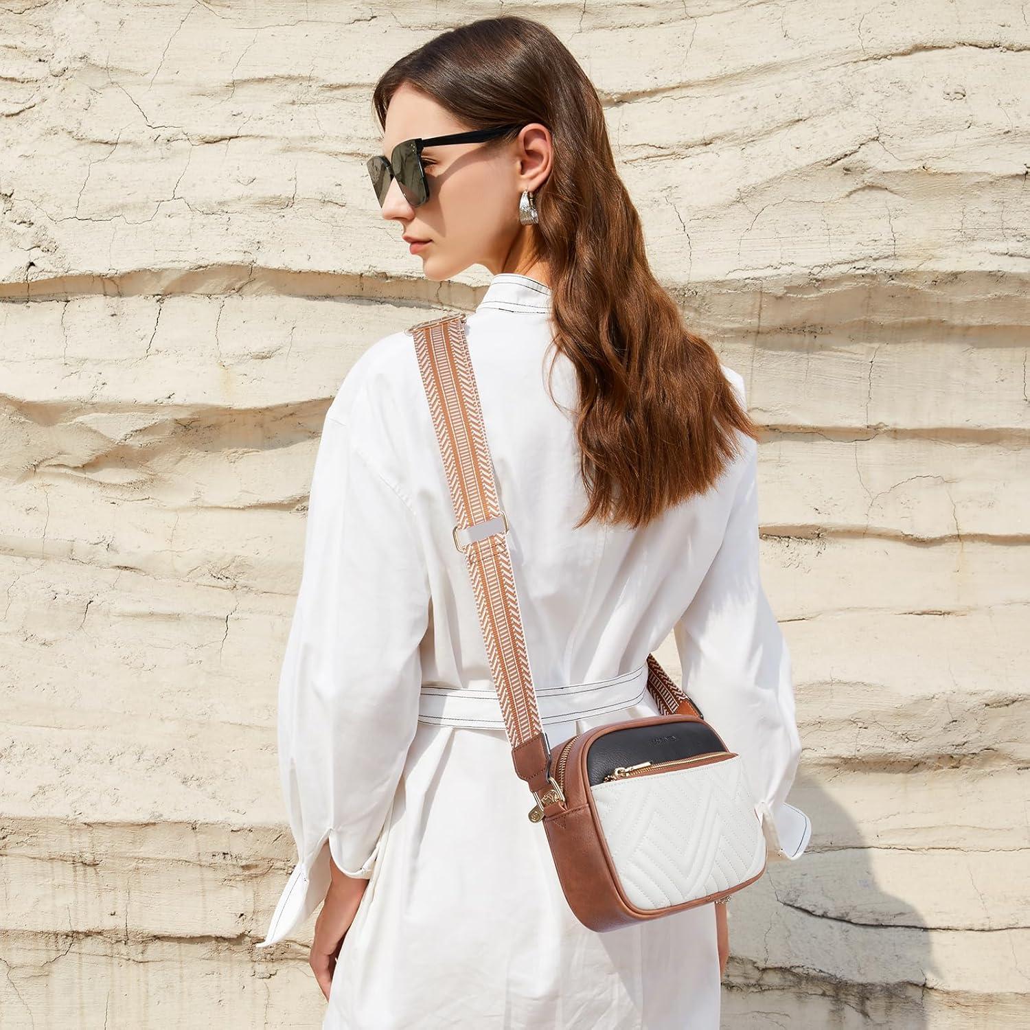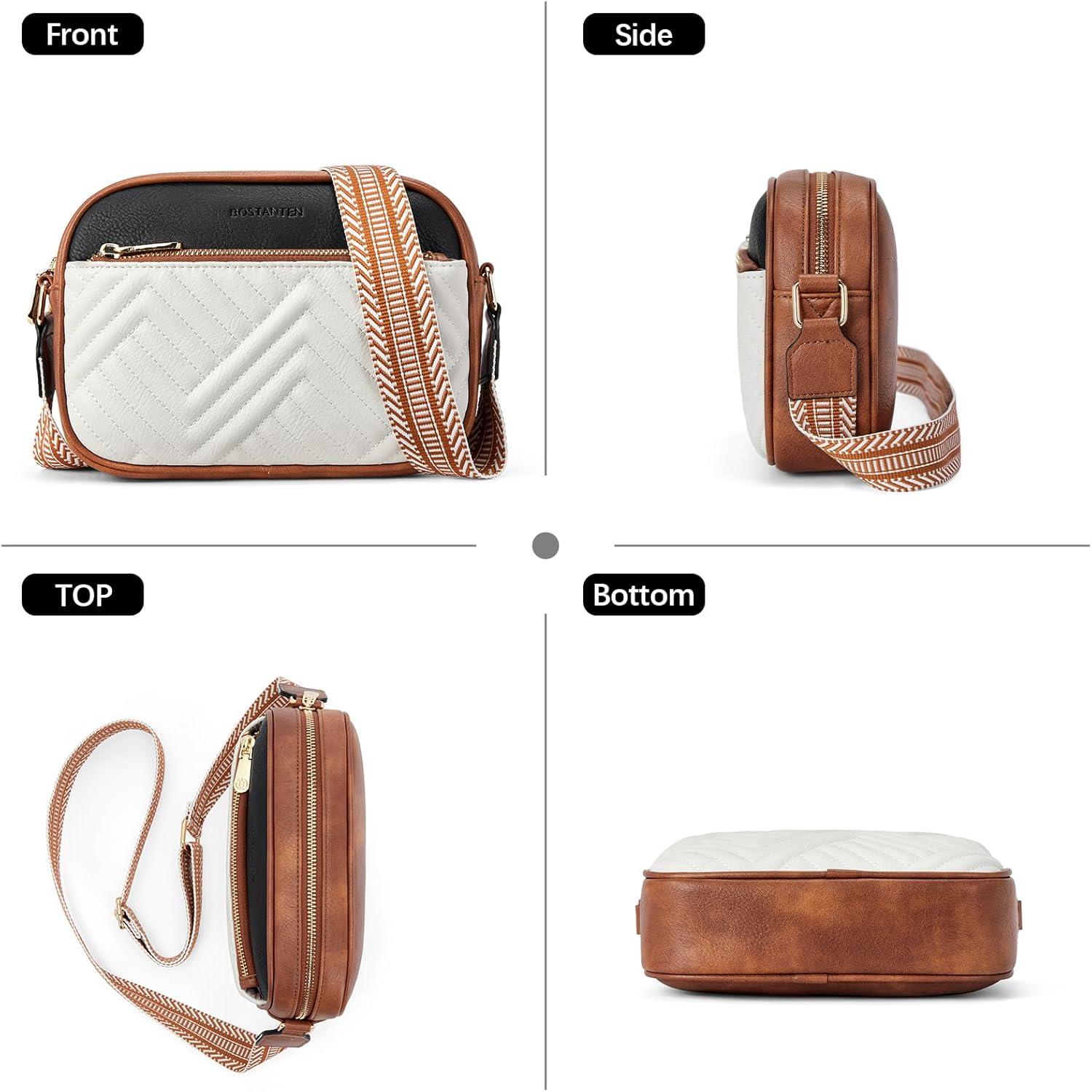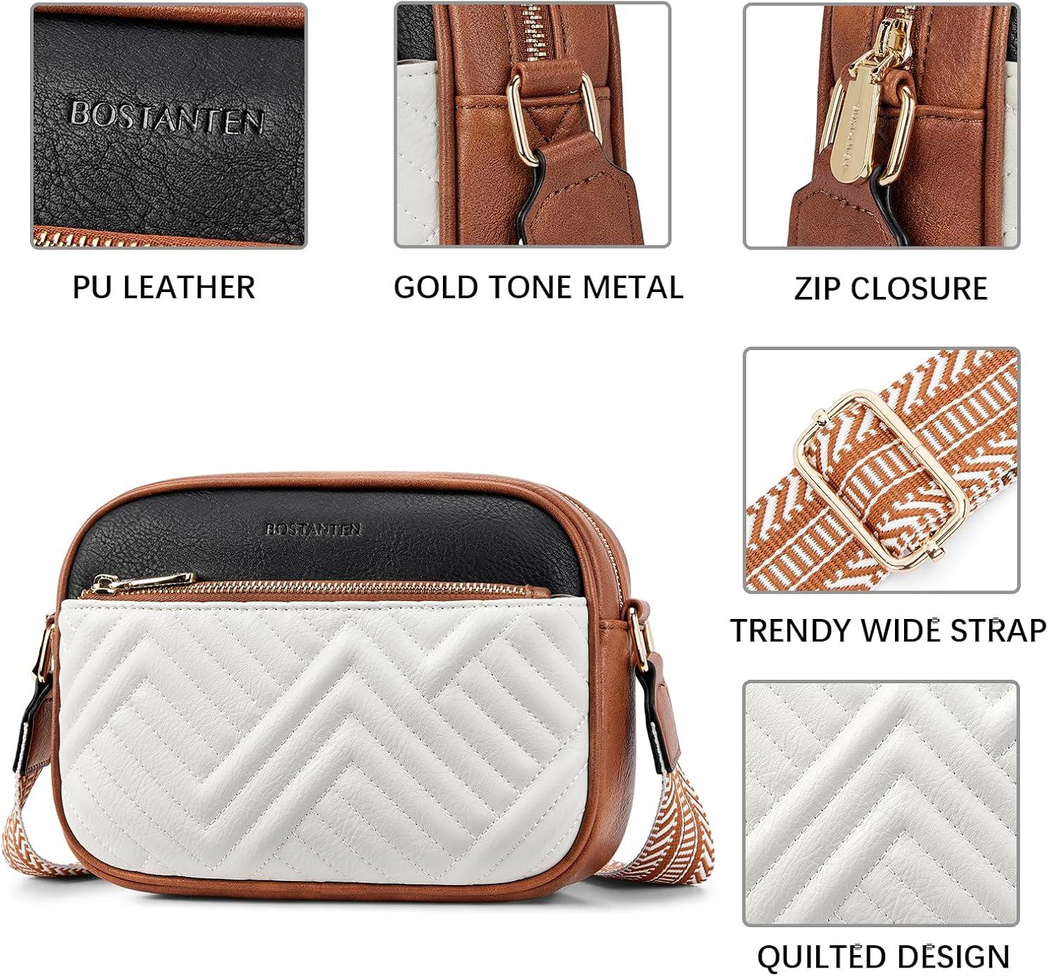 BOSTANTEN Quilted Crossbody Bags for Women Vegan Leather Purses Small Shoulder Handbags with Wide Strap(Q-beige With Black With Brown)