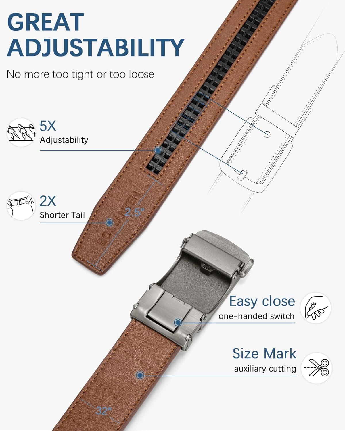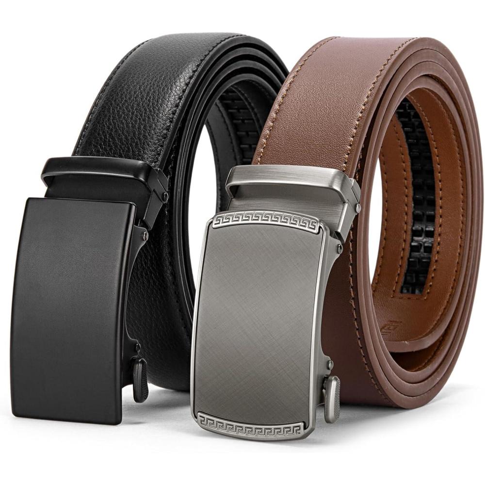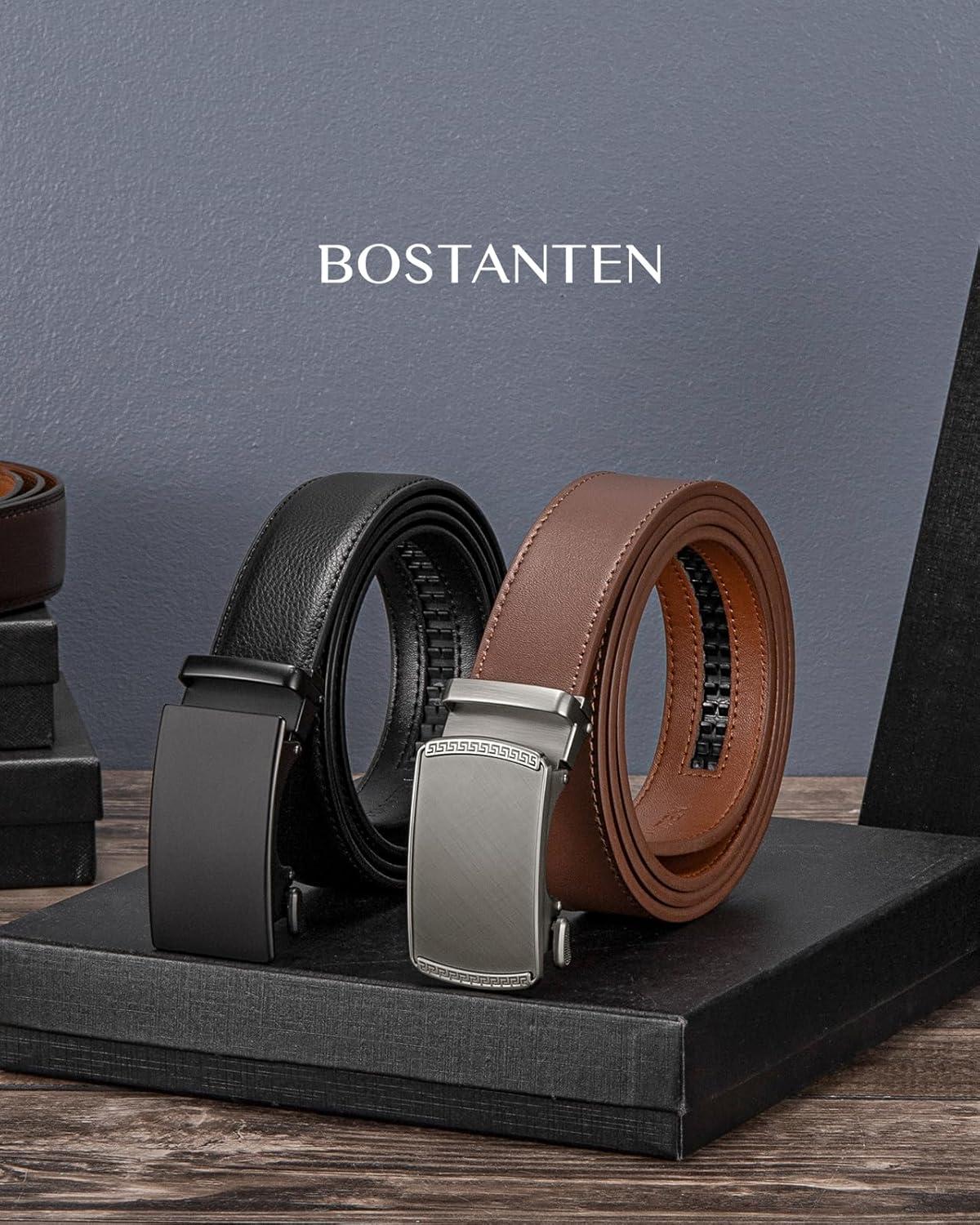BOSTANTEN Ratchet Leather Belt For Men 2 Pack Dress and Casual with Adjustable Buckle, Trim to Fit(010-black and Brown)