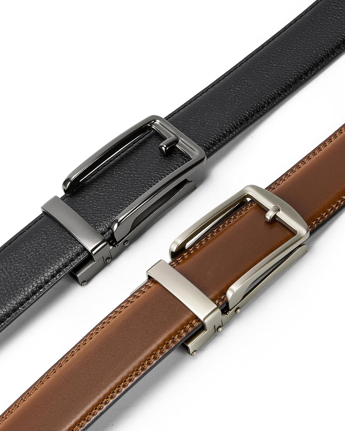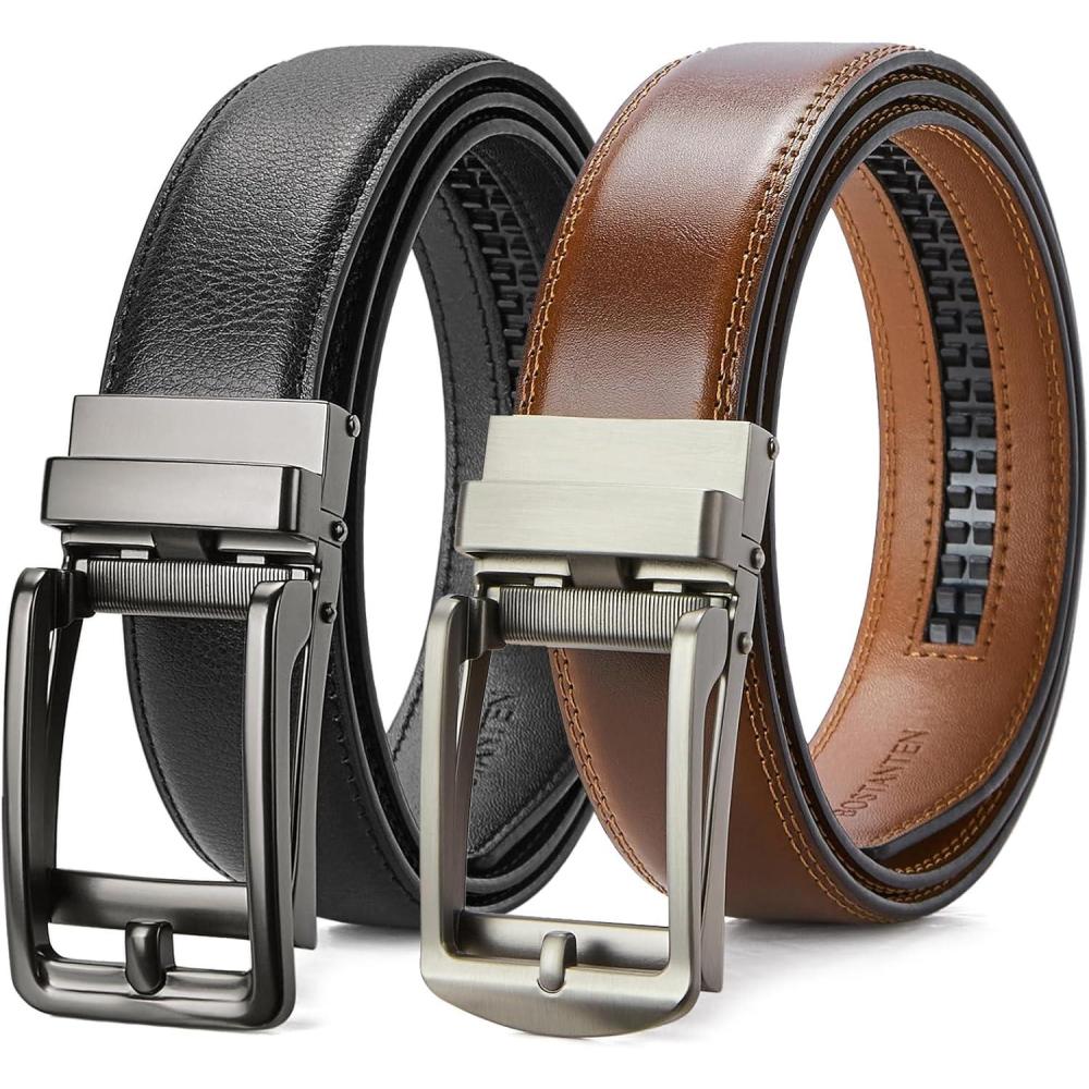 BOSTANTEN Ratchet Leather Belt For Men 2 Pack Dress and Casual with Adjustable Buckle, Trim to Fit(011-black and Brown)