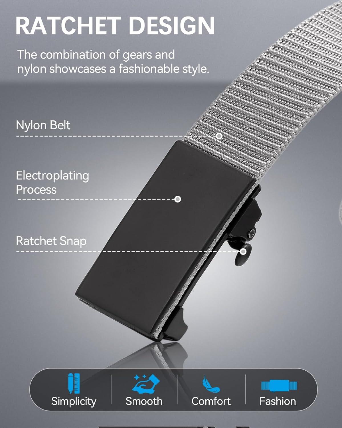 BOSTANTEN Ratchet Web Belt Men, Nylon Golf Adjustable Work Men's Belt with Casual Pants(002-black & Grey)
