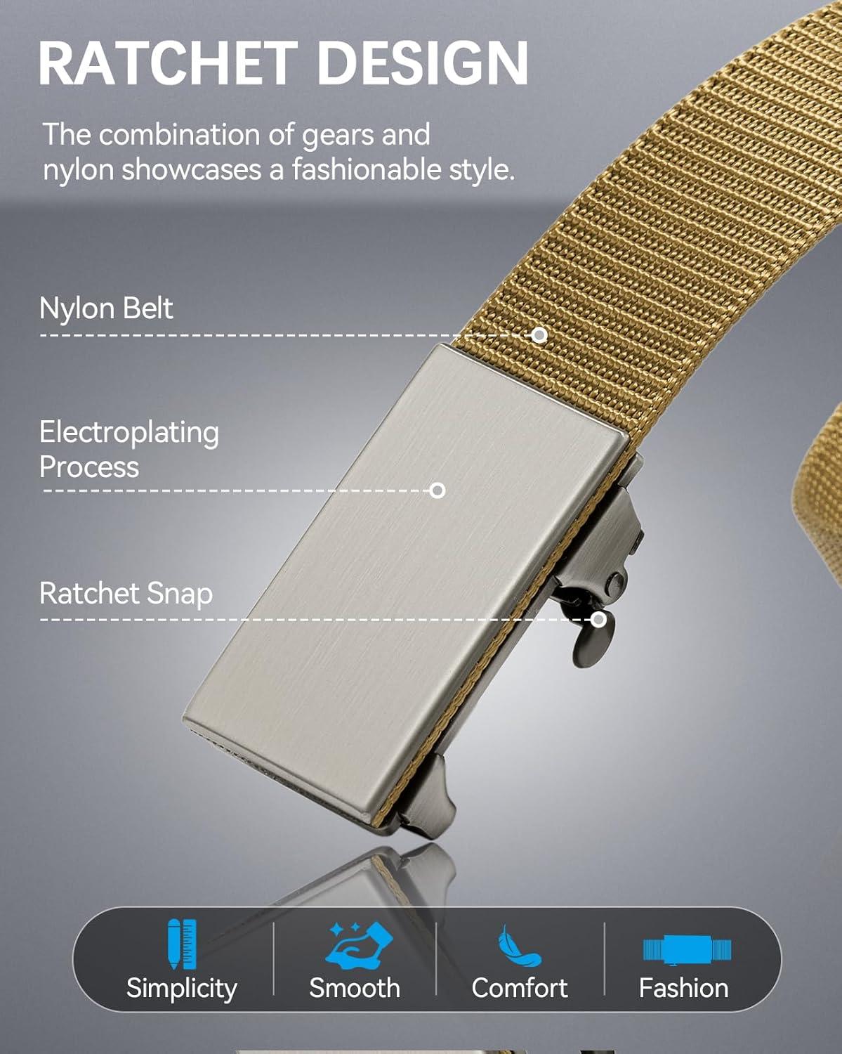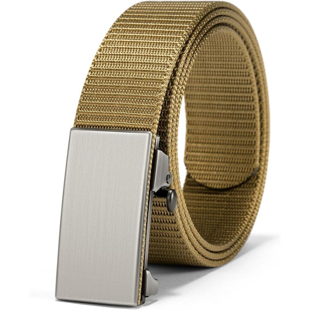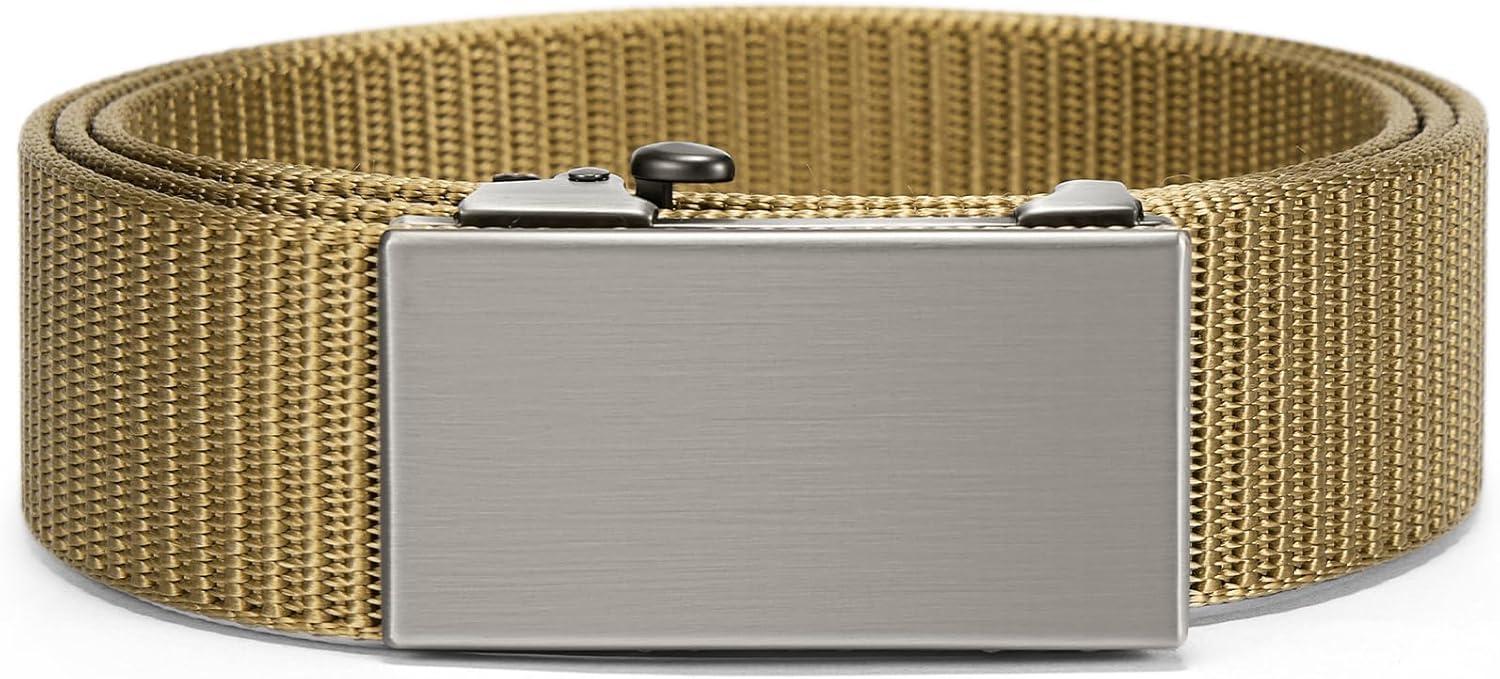 BOSTANTEN Ratchet Web Belt Men, Nylon Golf Adjustable Work Men's Belt with Casual Pants(006-gun & Yellow)