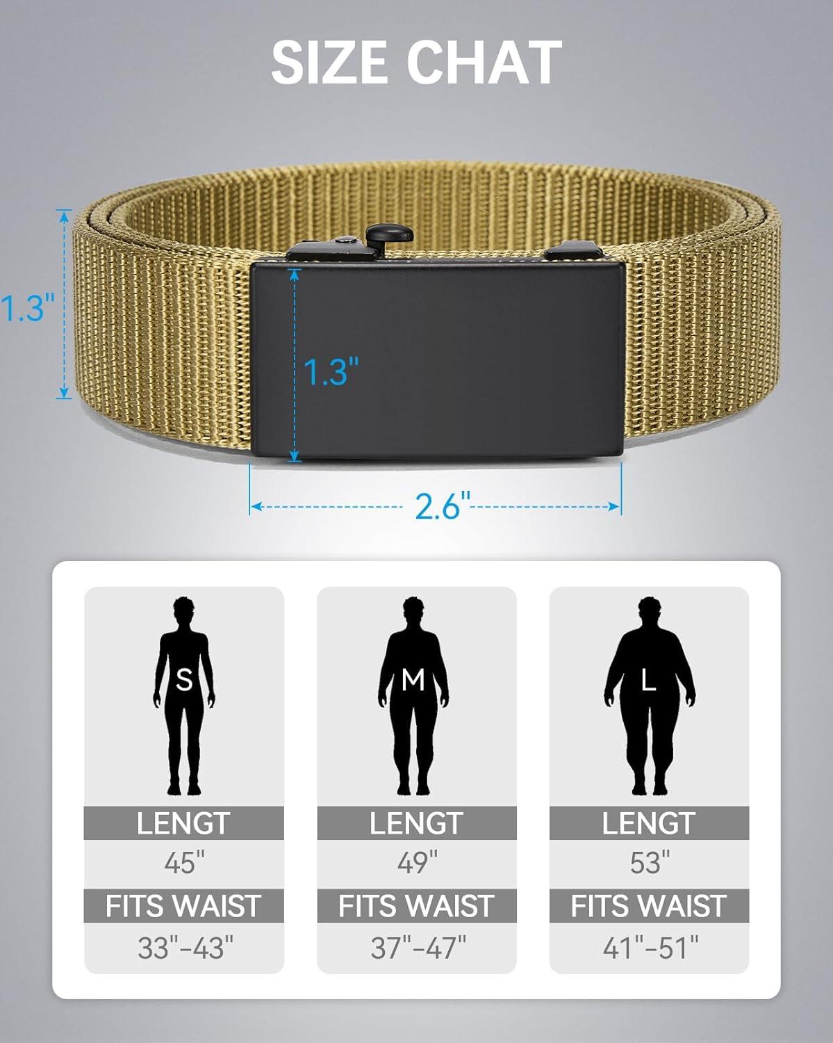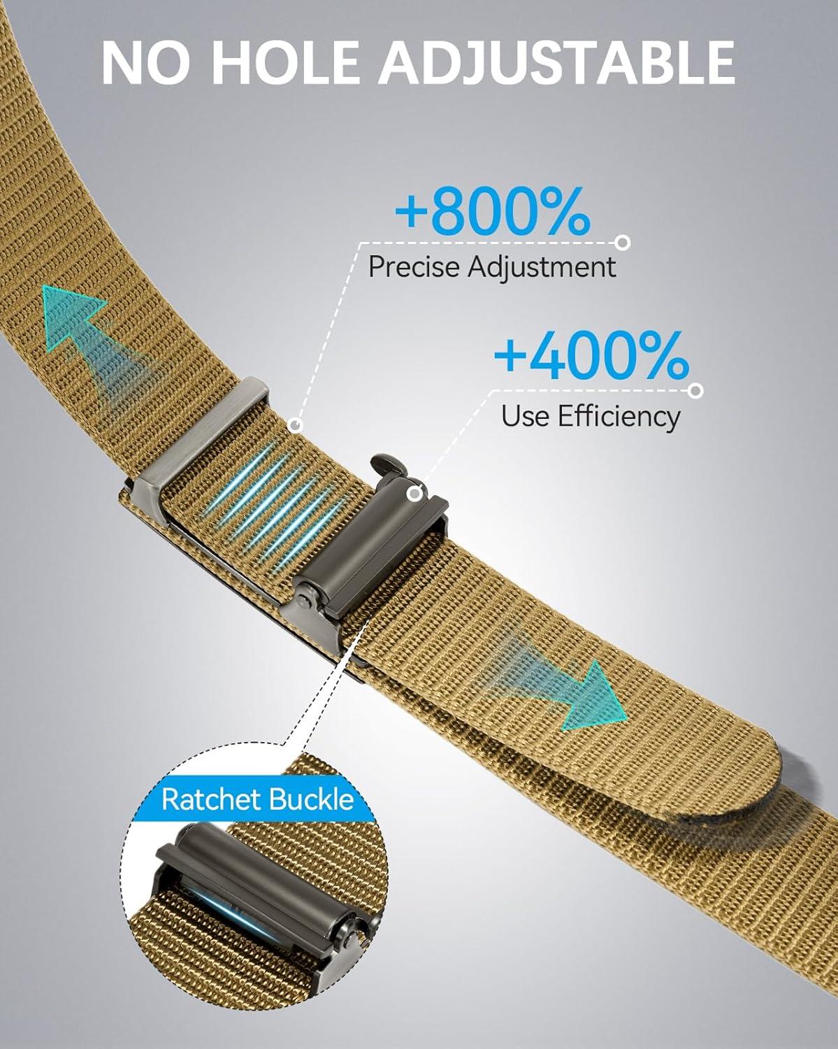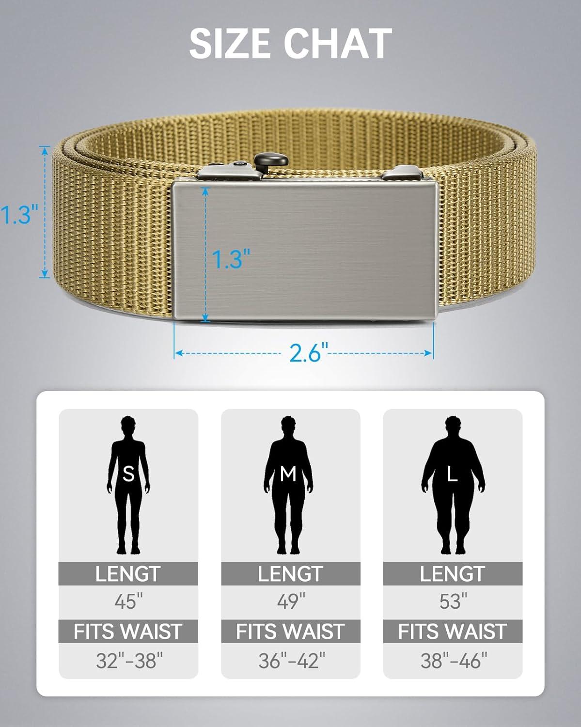 BOSTANTEN Ratchet Web Belt Men, Nylon Golf Adjustable Work Men's Belt with Casual Pants(006-gun & Yellow)