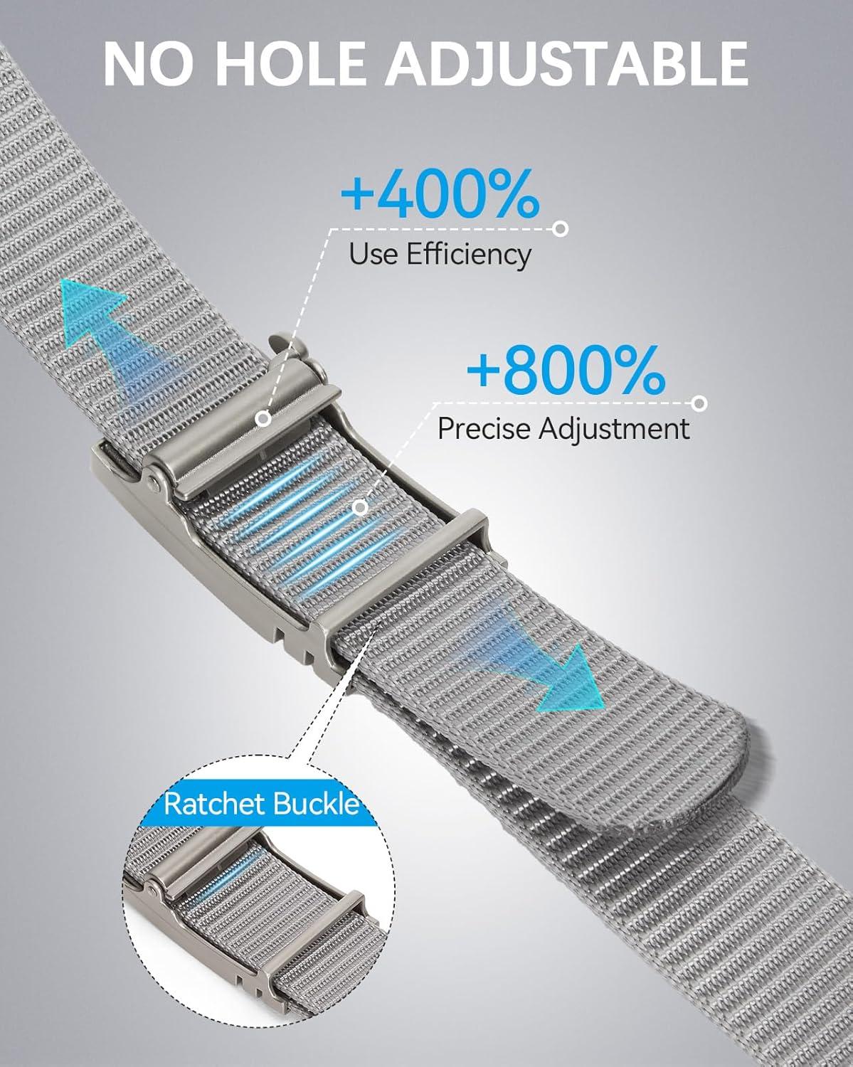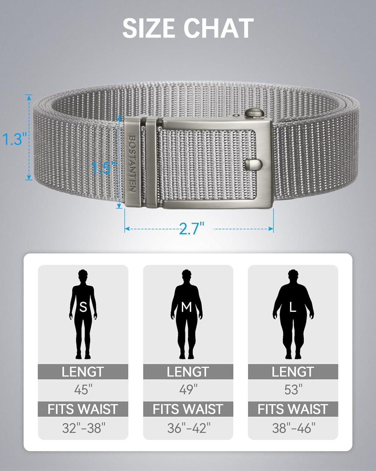 BOSTANTEN Ratchet Web Belt Men, Nylon Golf Adjustable Work Men's Belt with Casual Pants(010-hollow Gun+gray)