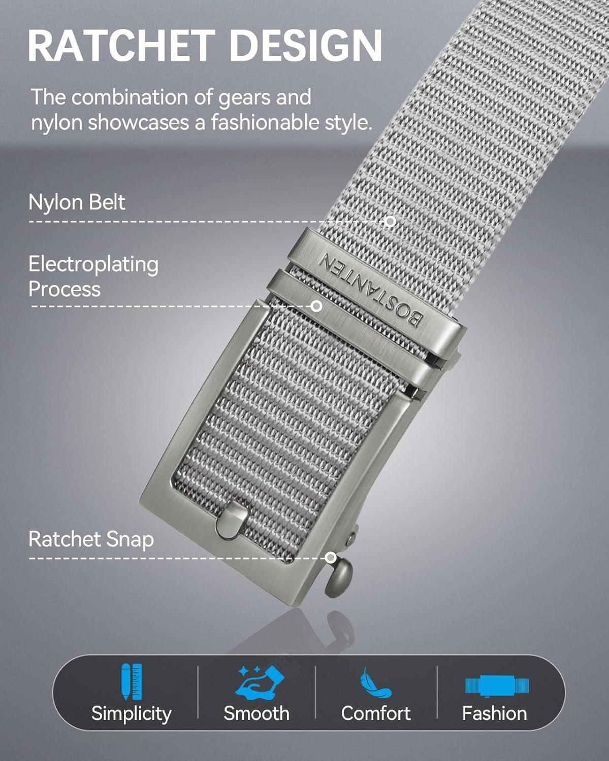 imageBOSTANTEN Ratchet Web Belt Men Nylon Golf Adjustable Work Mens Belt with Casual Pants010hollow Gungray