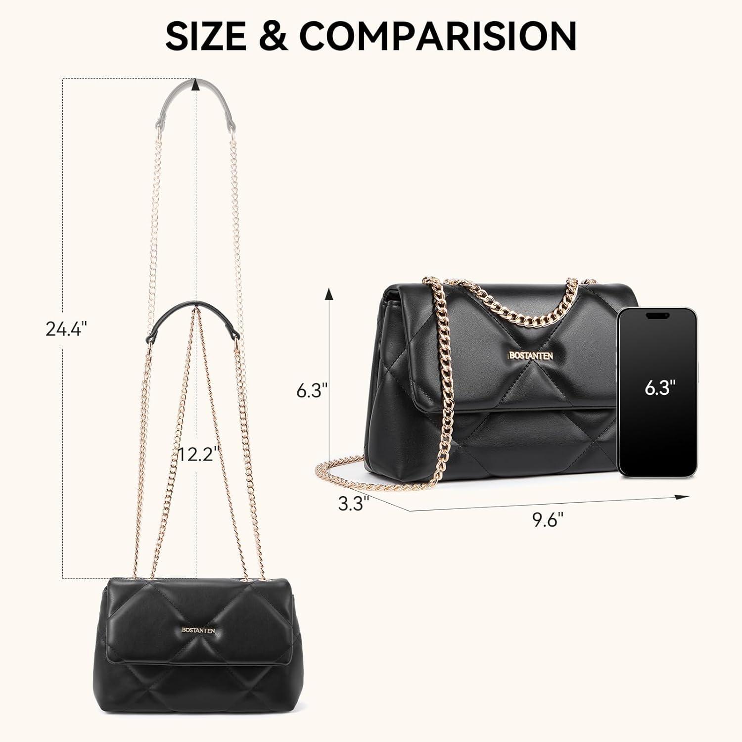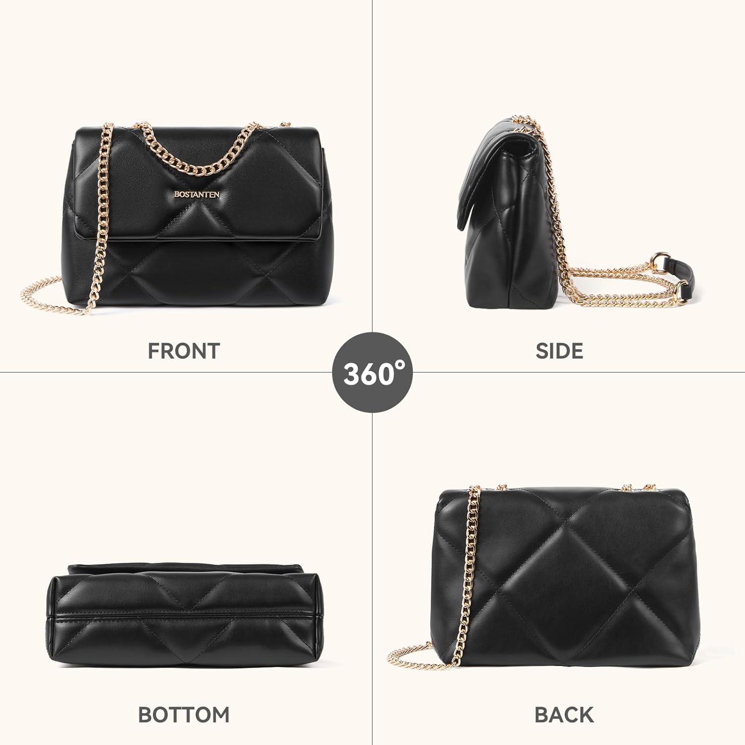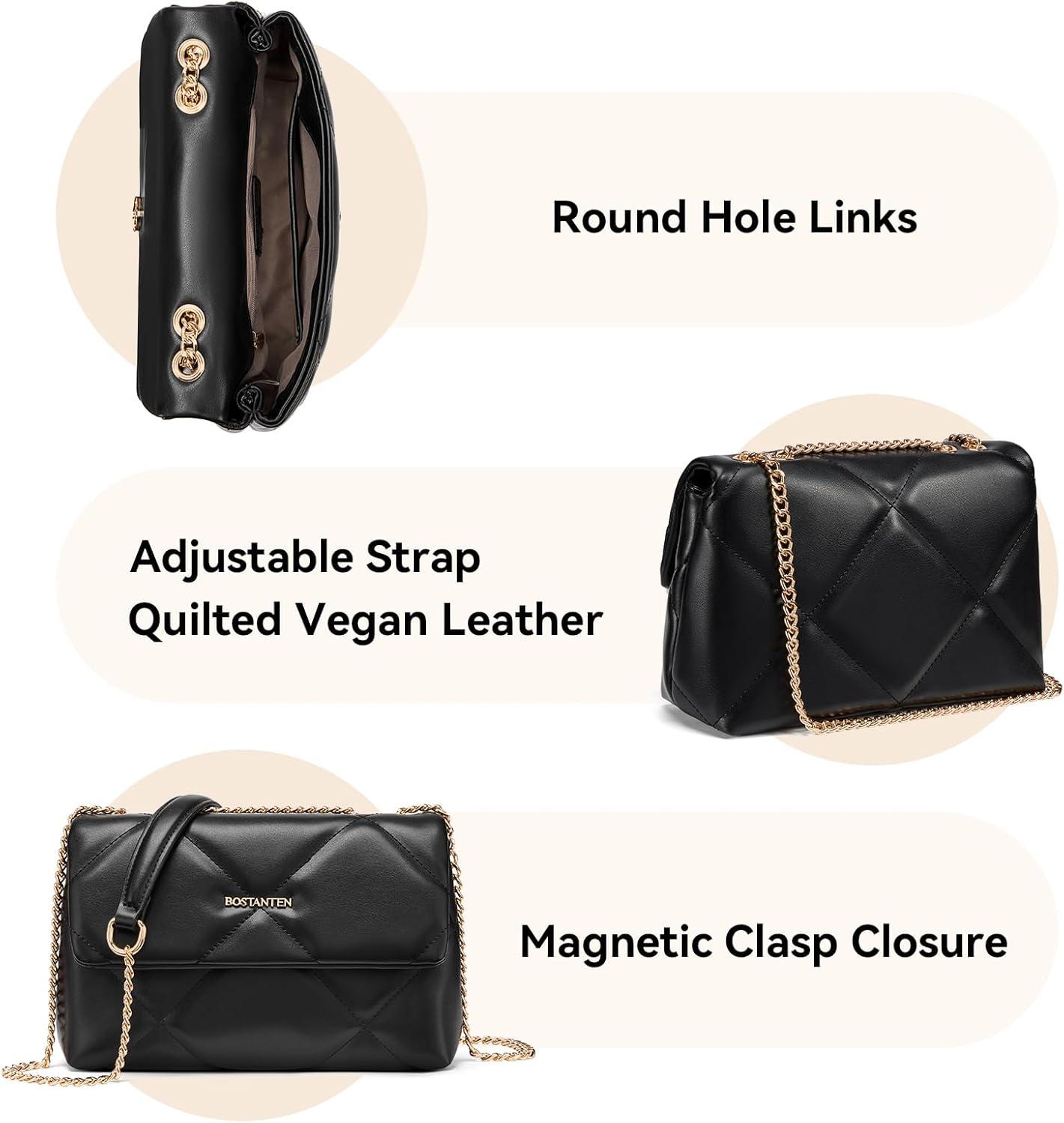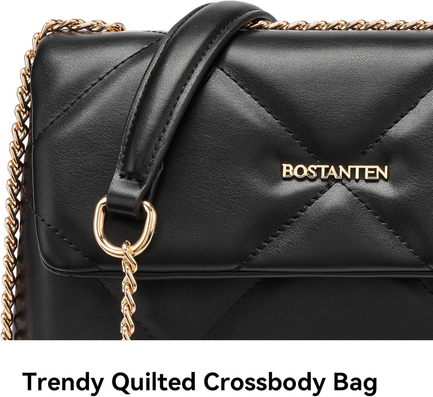 BOSTANTEN Shoulder Bag for Women Small Purse Vegan Leather Quilted Crossbody Bags With Chain Trendy Ladies Handbags(Black)