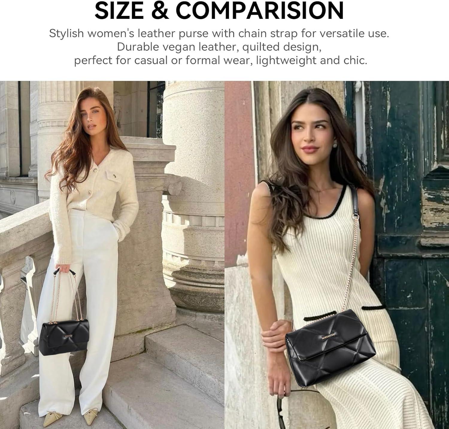 imageBOSTANTEN Shoulder Bag for Women Small Purse Vegan Leather Quilted Crossbody Bags With Chain Trendy Ladies HandbagsBlack